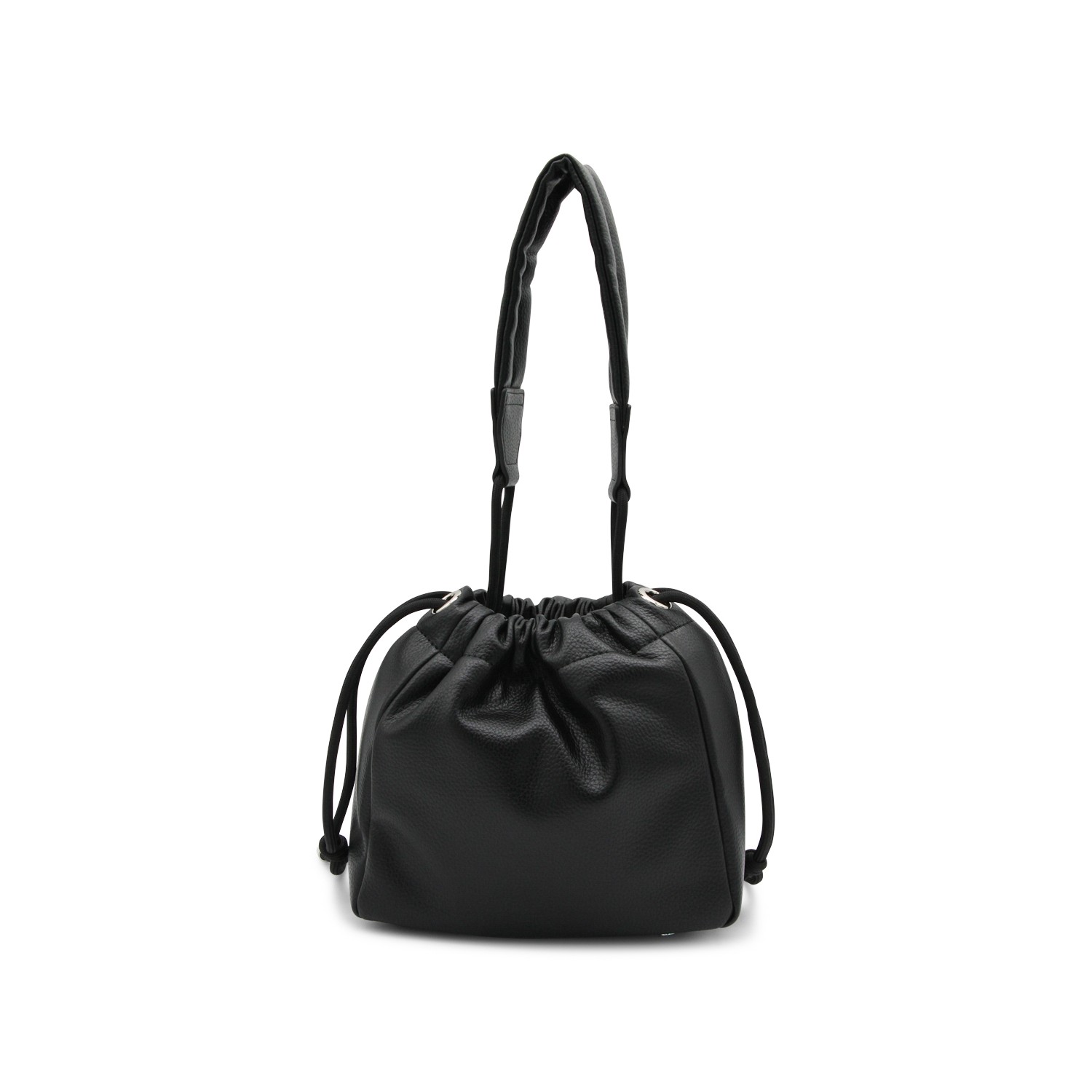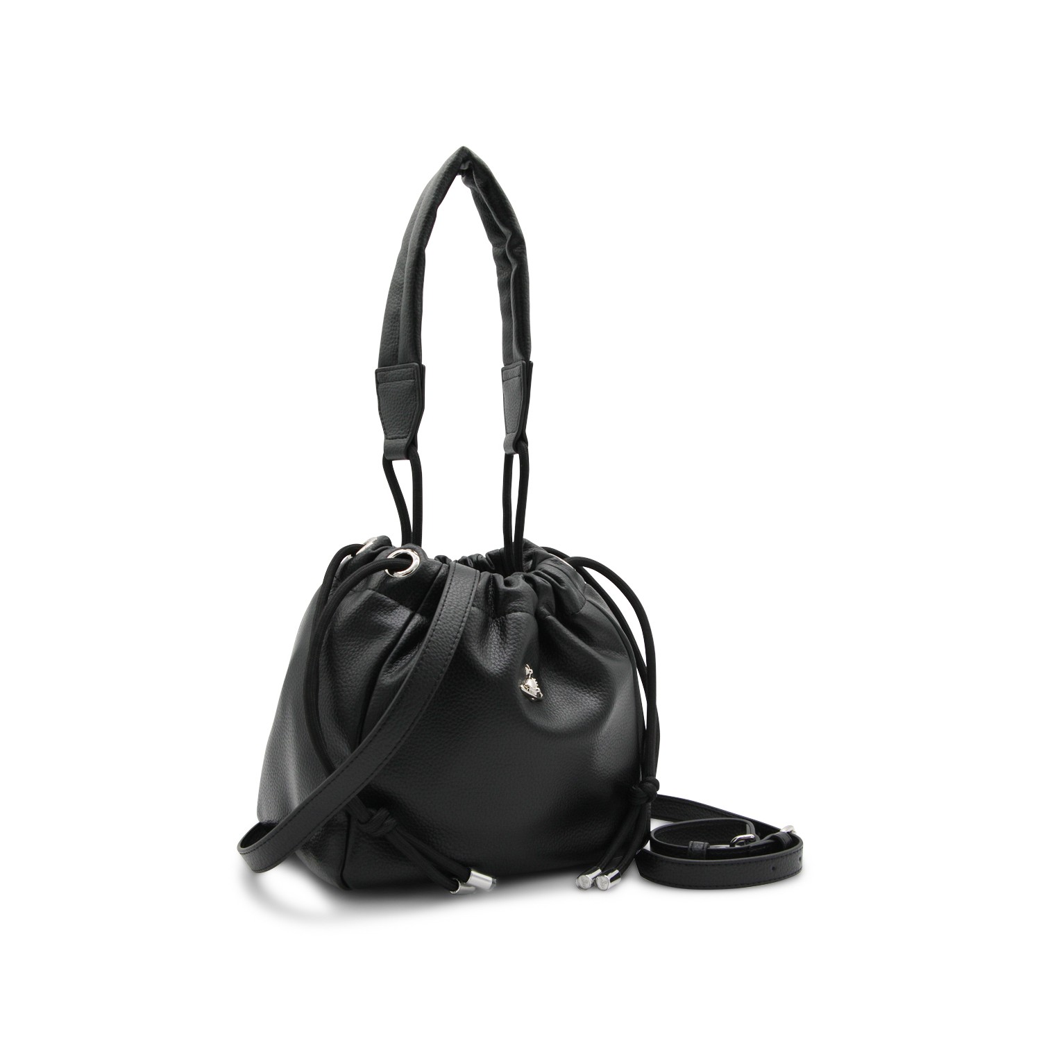 Black satchel from Vivienne Westwood featuring top handle, lace fastening, main compartment and frontal silver tone logo.
