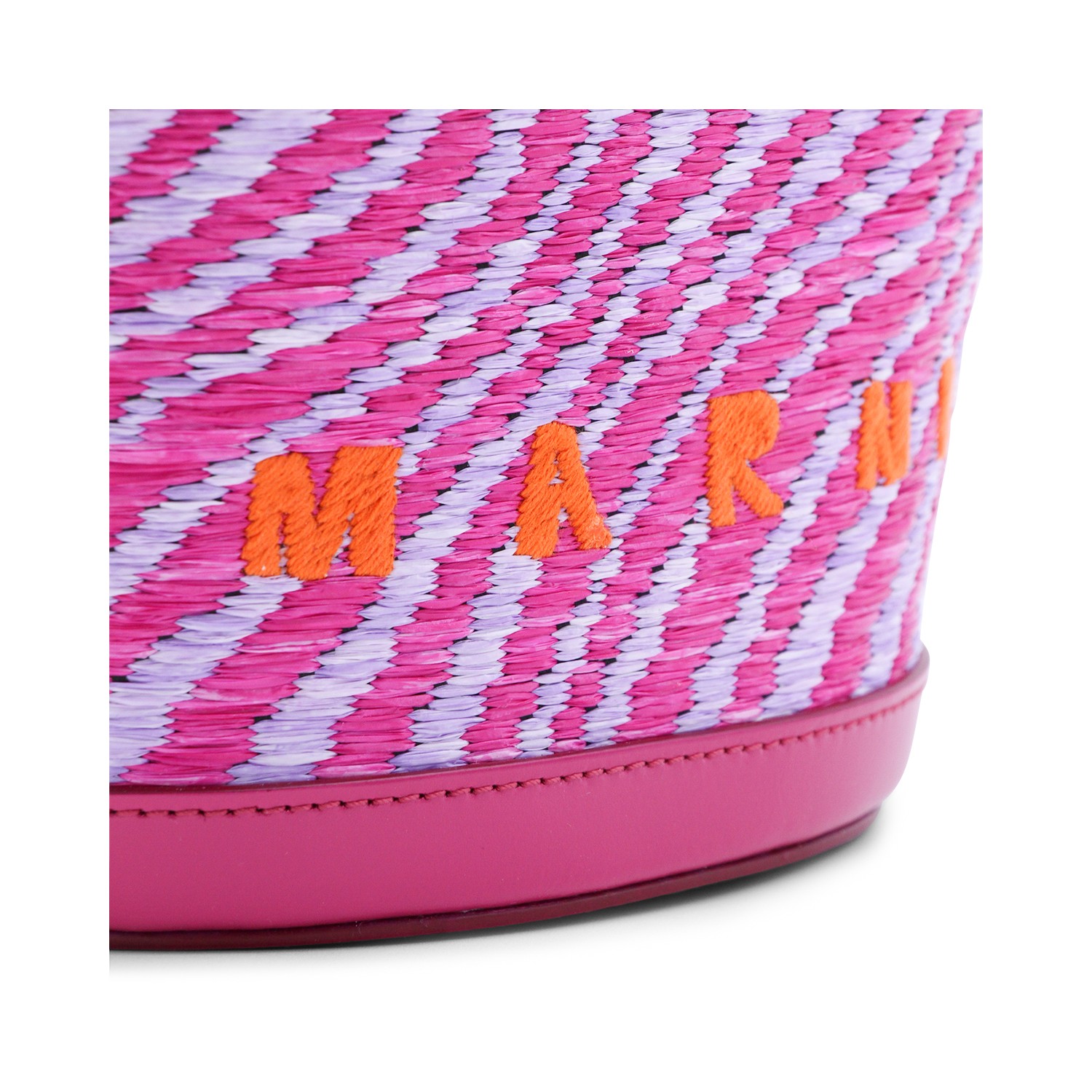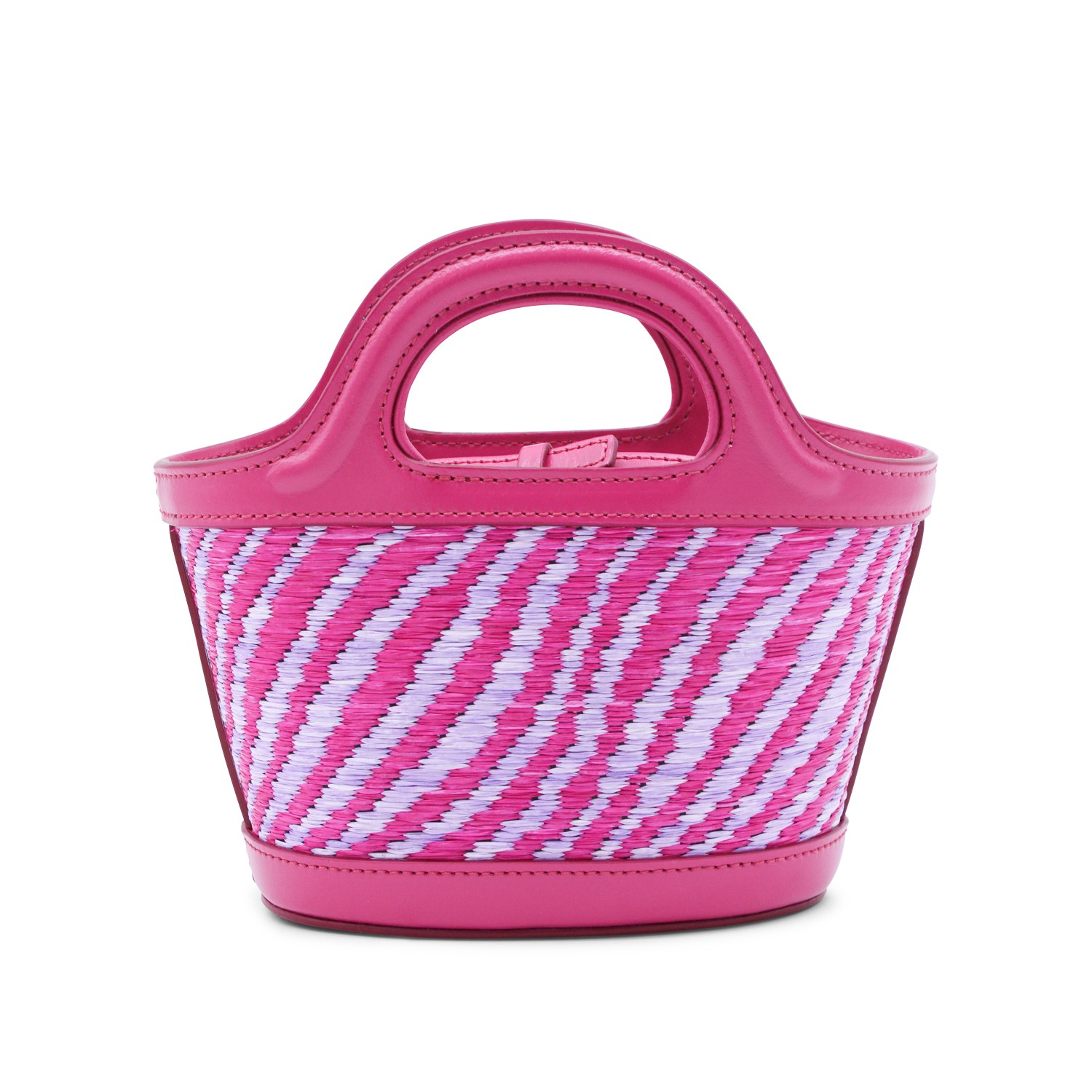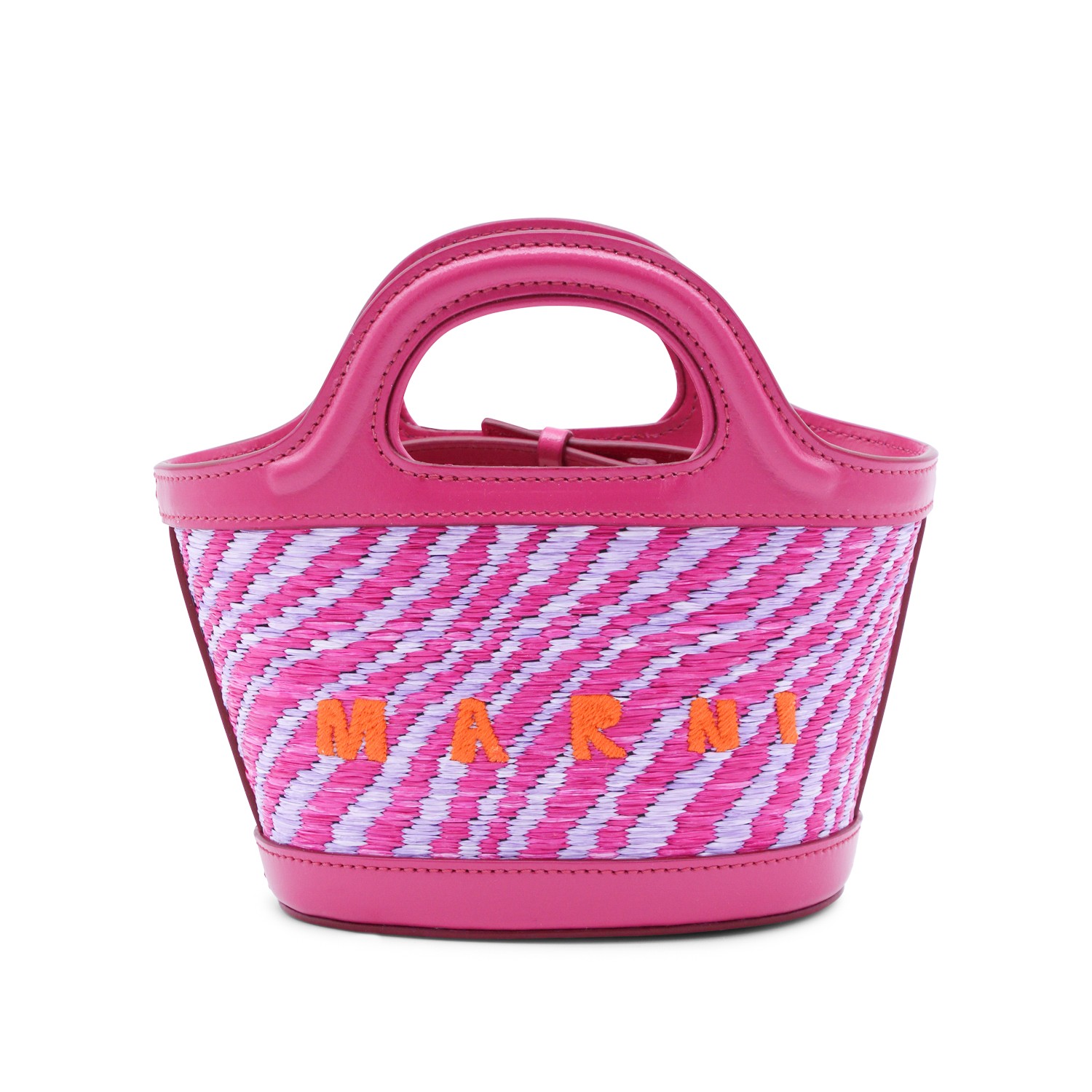 Pink satchel from Marni featuring rigid top handles, raffia design, snap button closure, adjustable and removable shoulder strap, logo and main compartment.