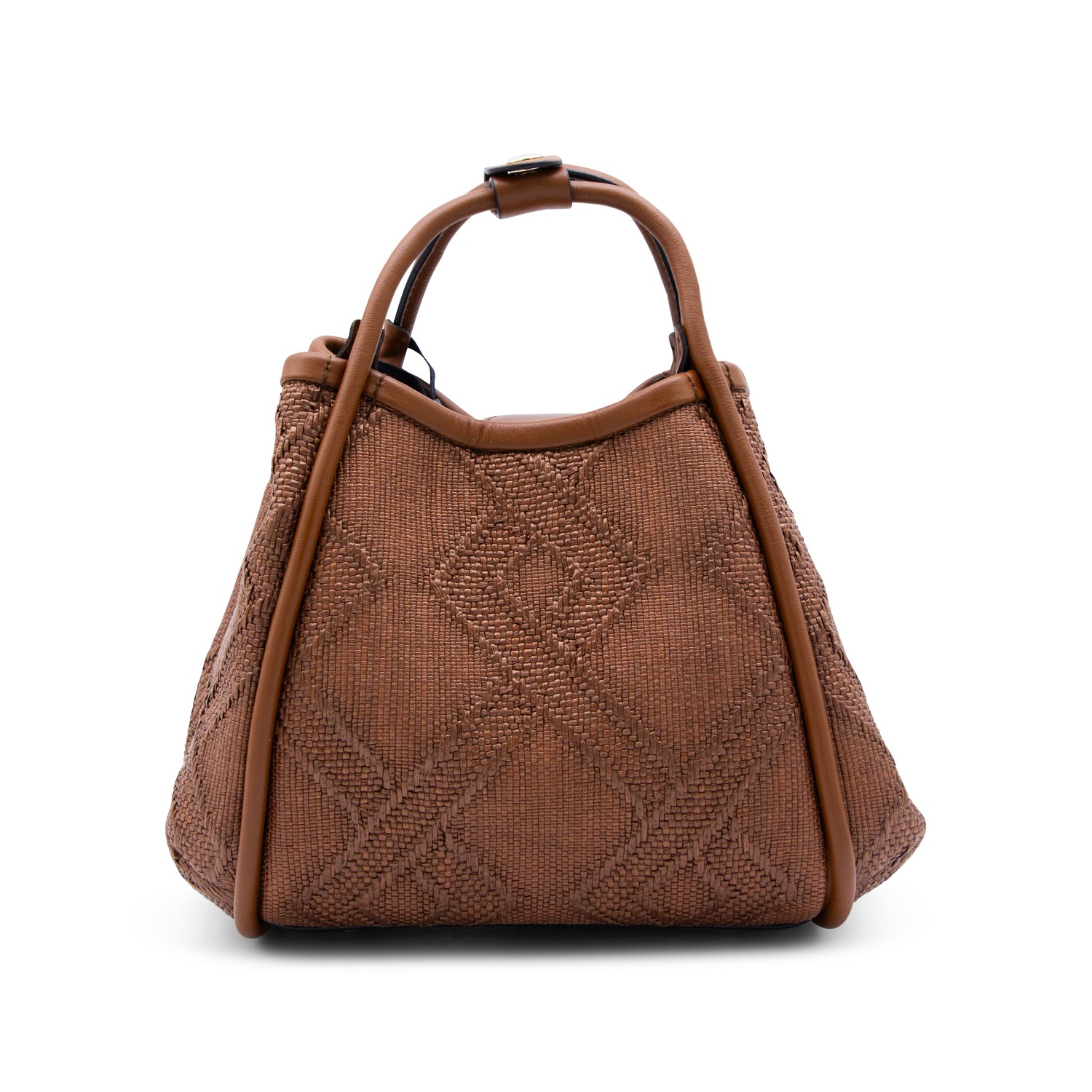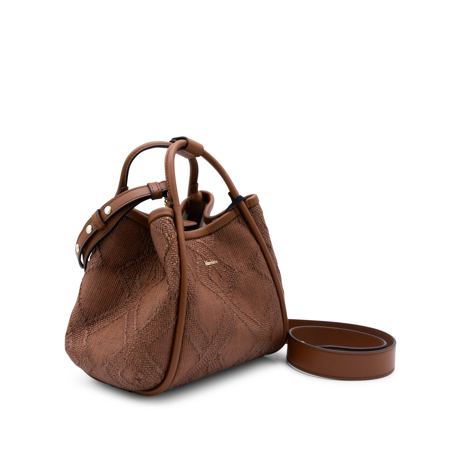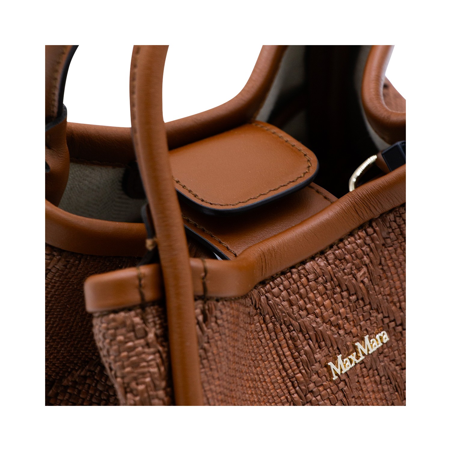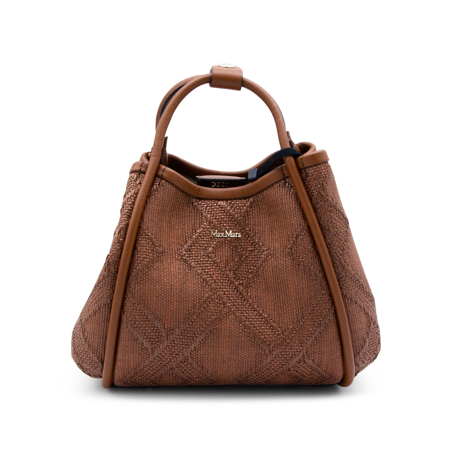 Brown satchel from Max Mara featuring top handle, upper fastening, frontal logo and pockets.