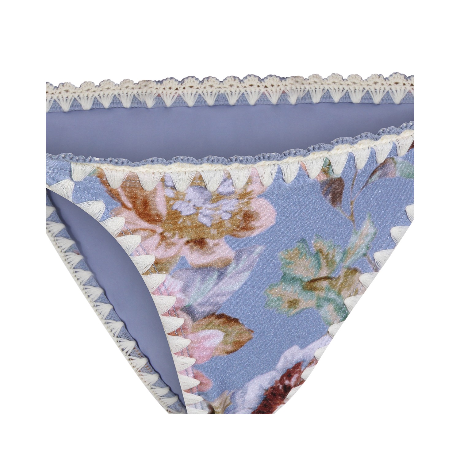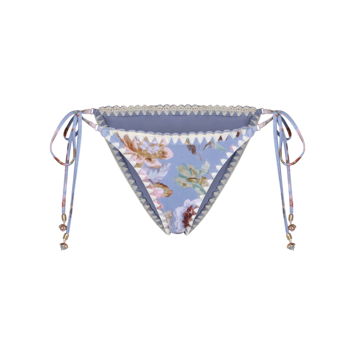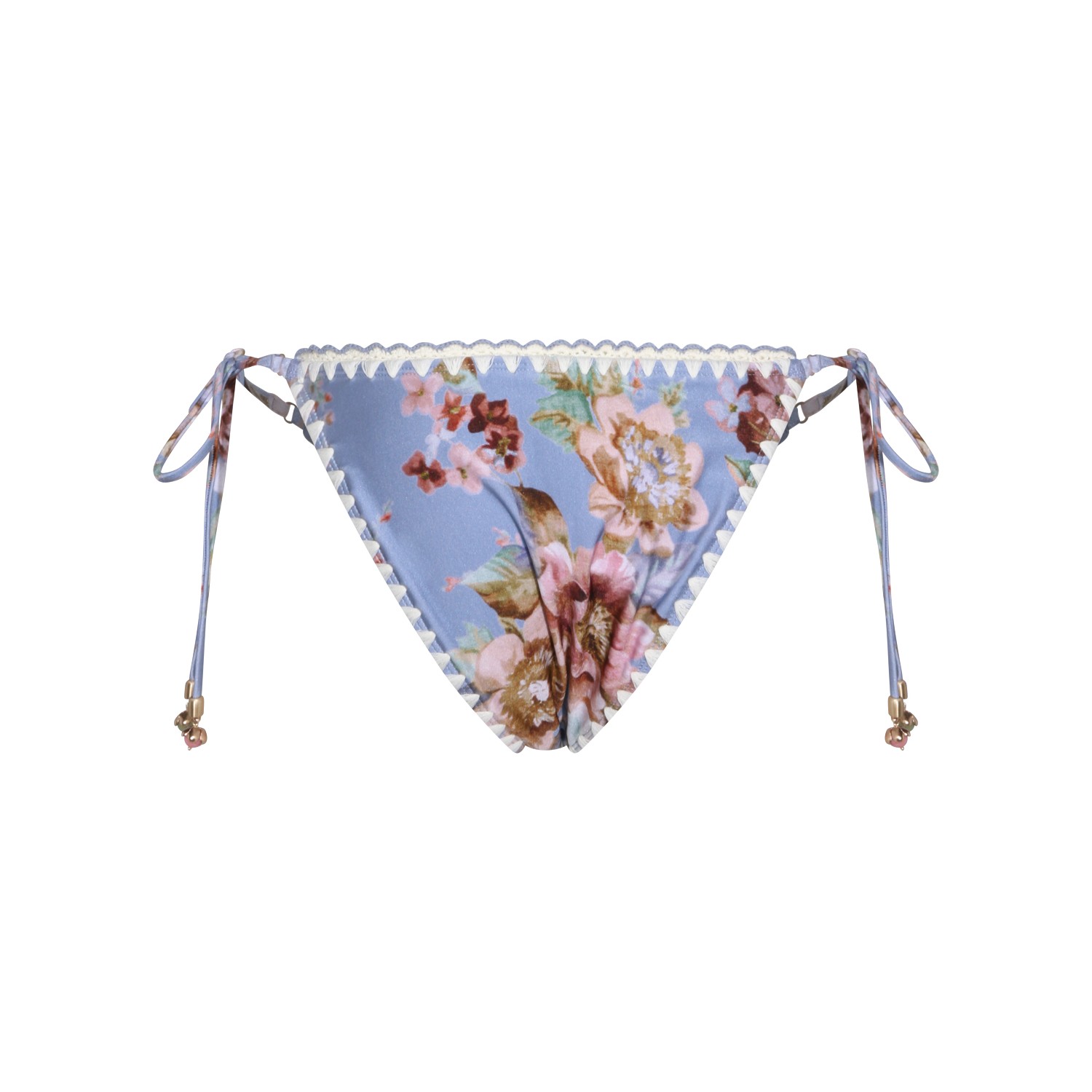 Light blue slip beachwear from Zimmermann featuring lateral drawstrings and flowers prints.