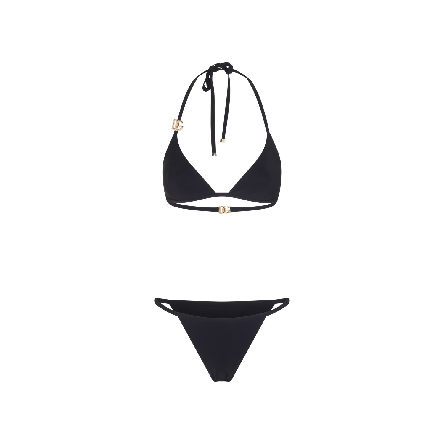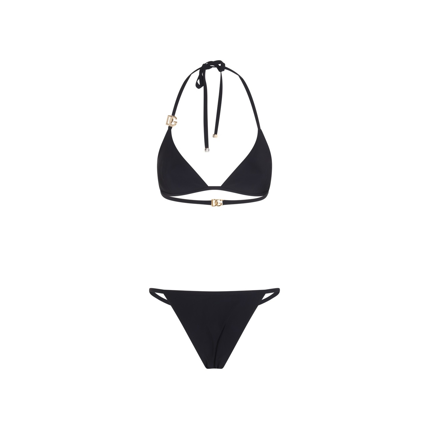 Black beachwear from Dolce&Gabbana featuring two pieces, gold tone hardware and laces.
