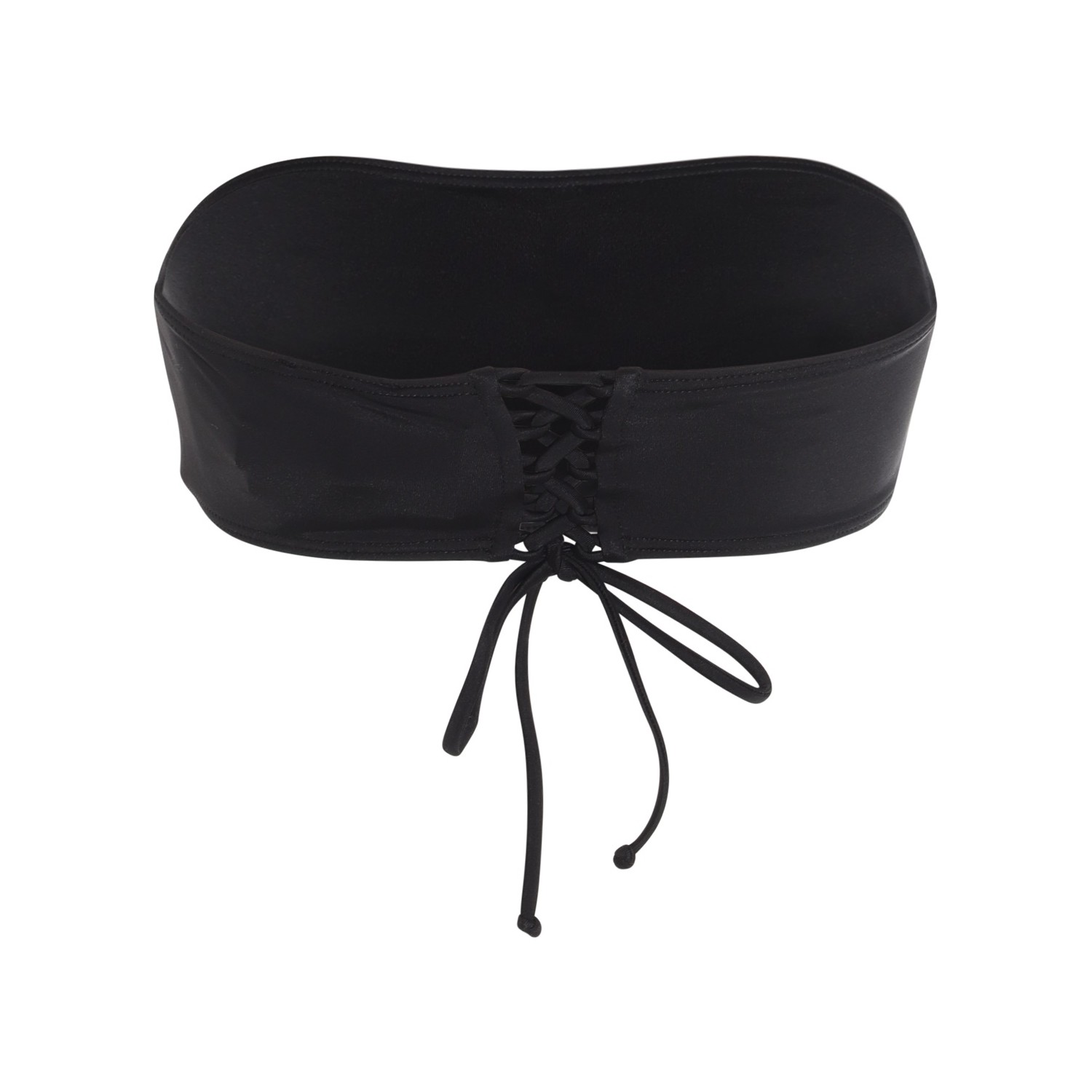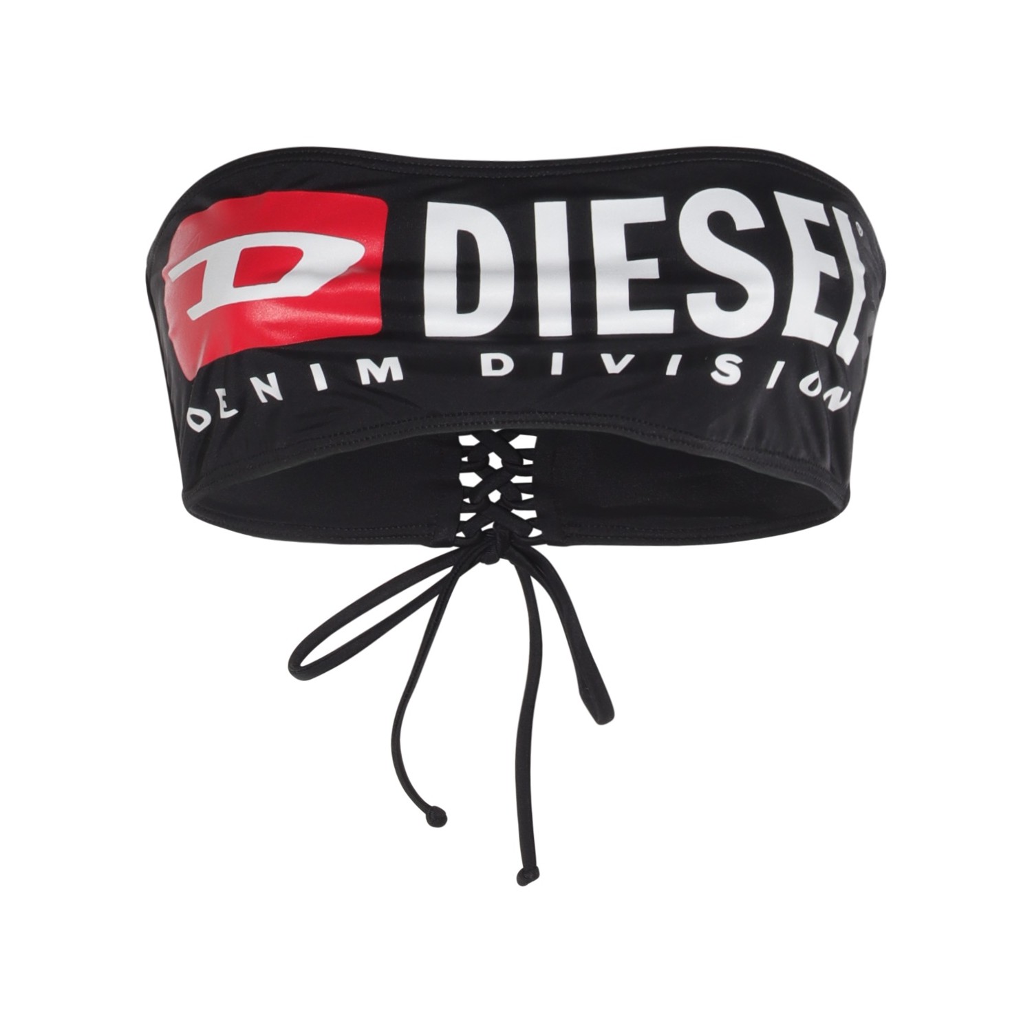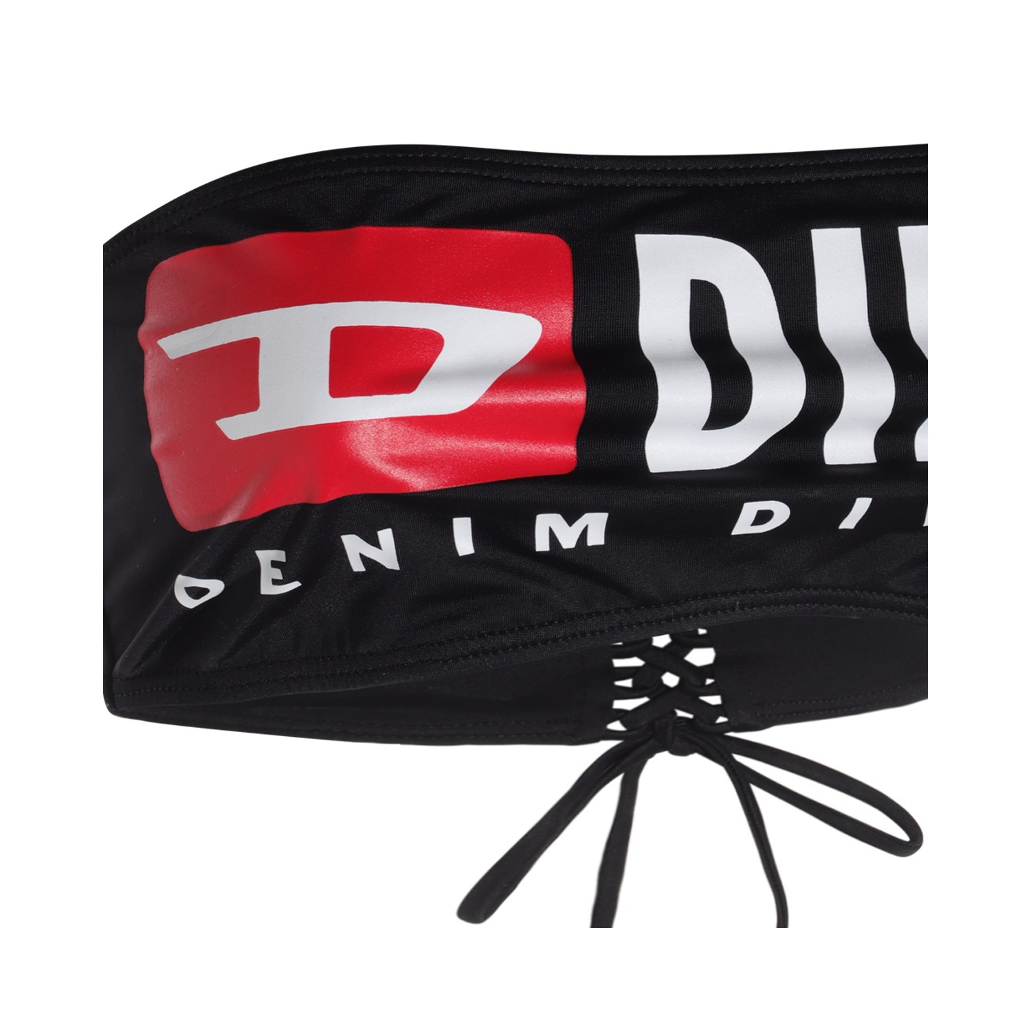Black beachwear from Diesel featuring strapless, back lace up fastening and frontal logo stamp.