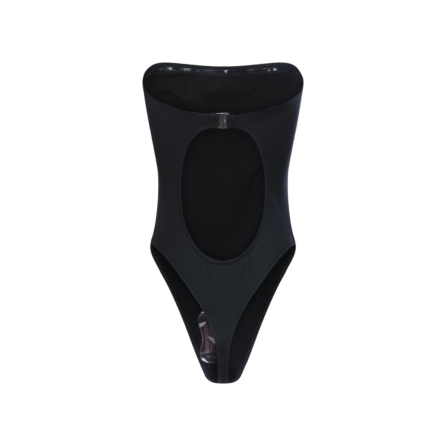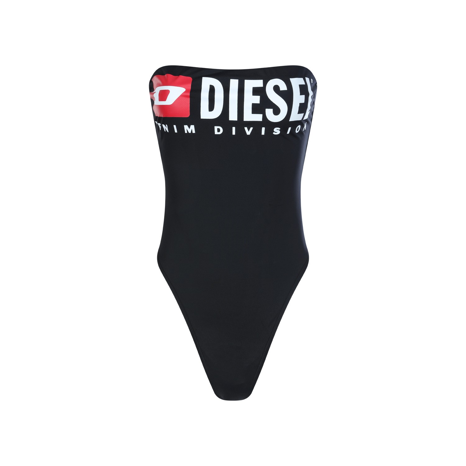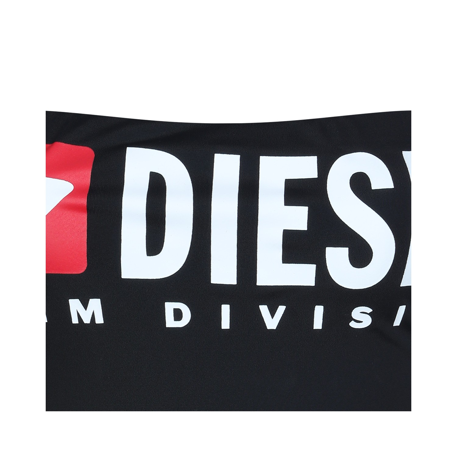 Black beachwear from Diesel featuring sleeveless and frontal logo.