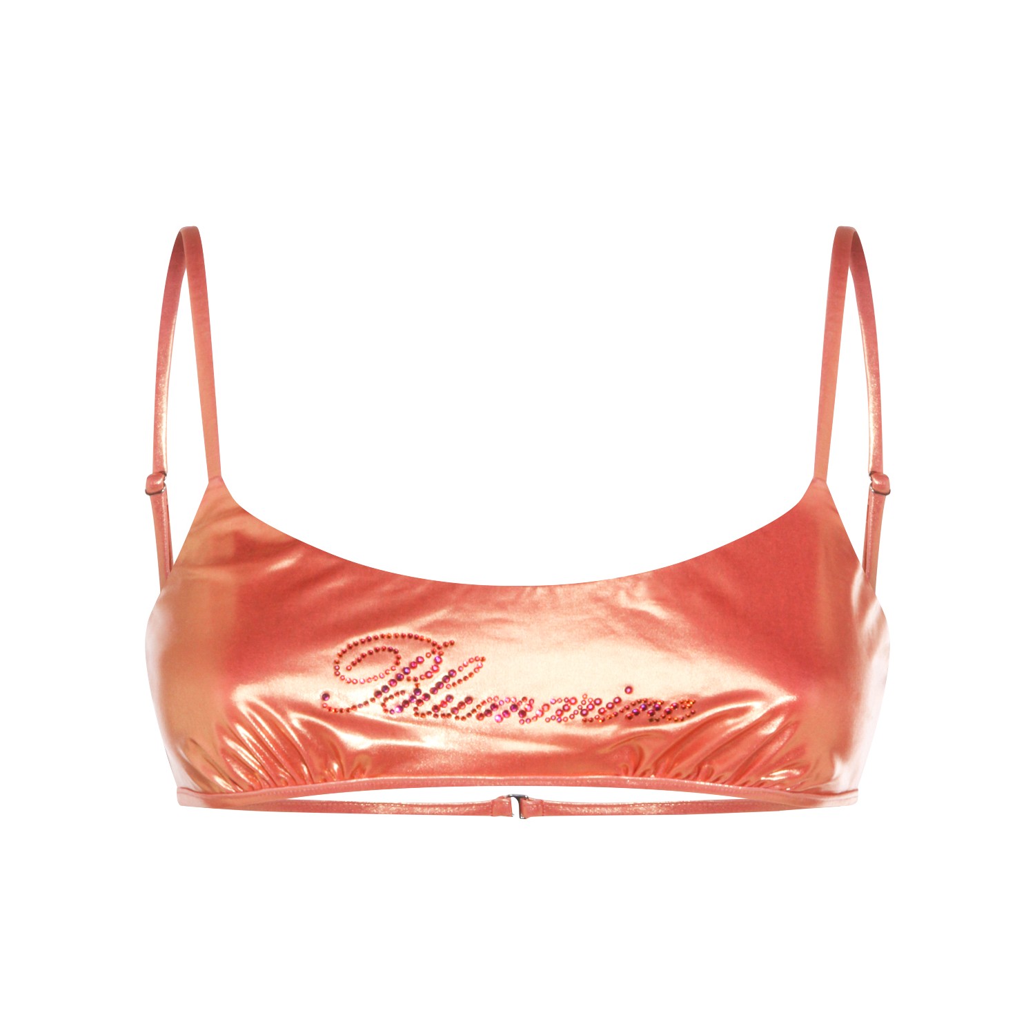 Orange top beachwear from Blumarine featuring round neckline, adjustable straps, back fastening and stitched logo.