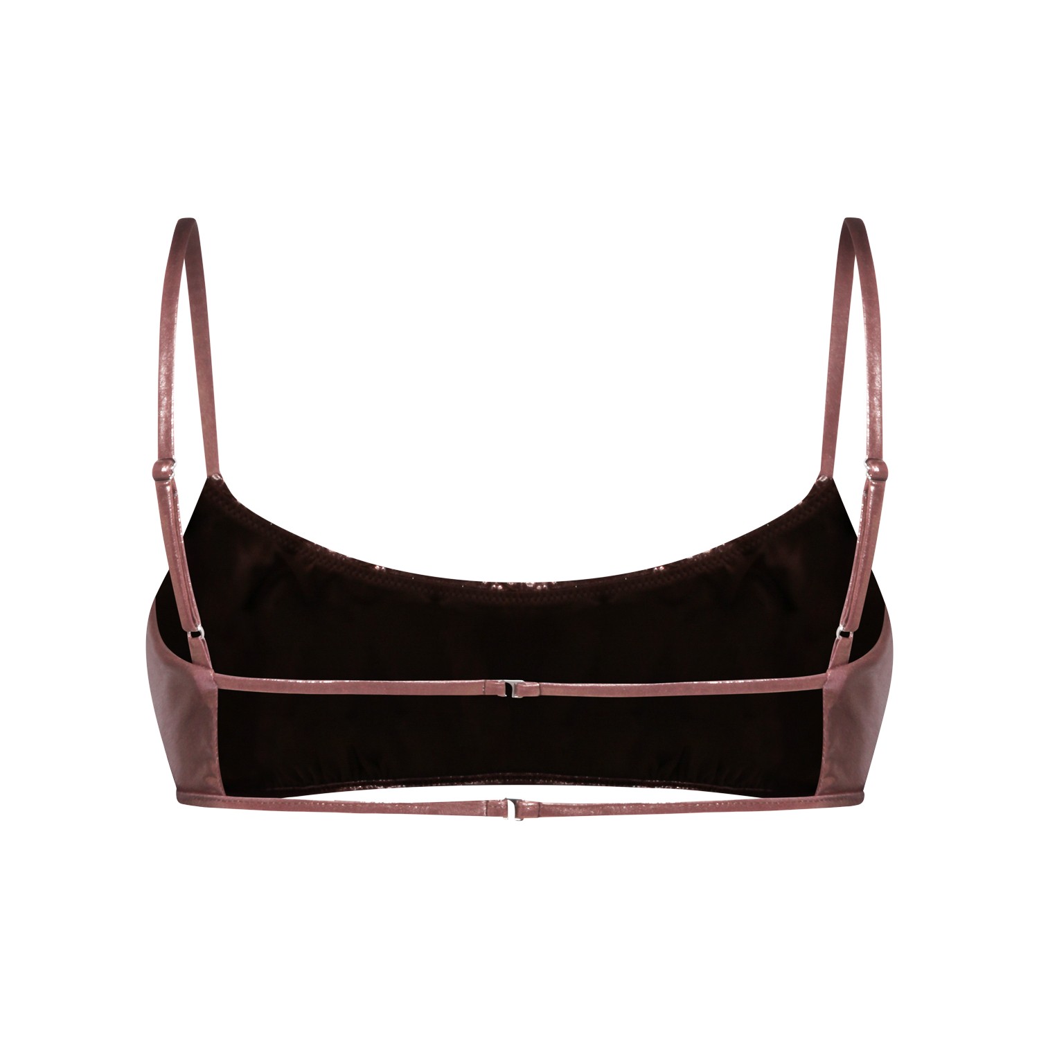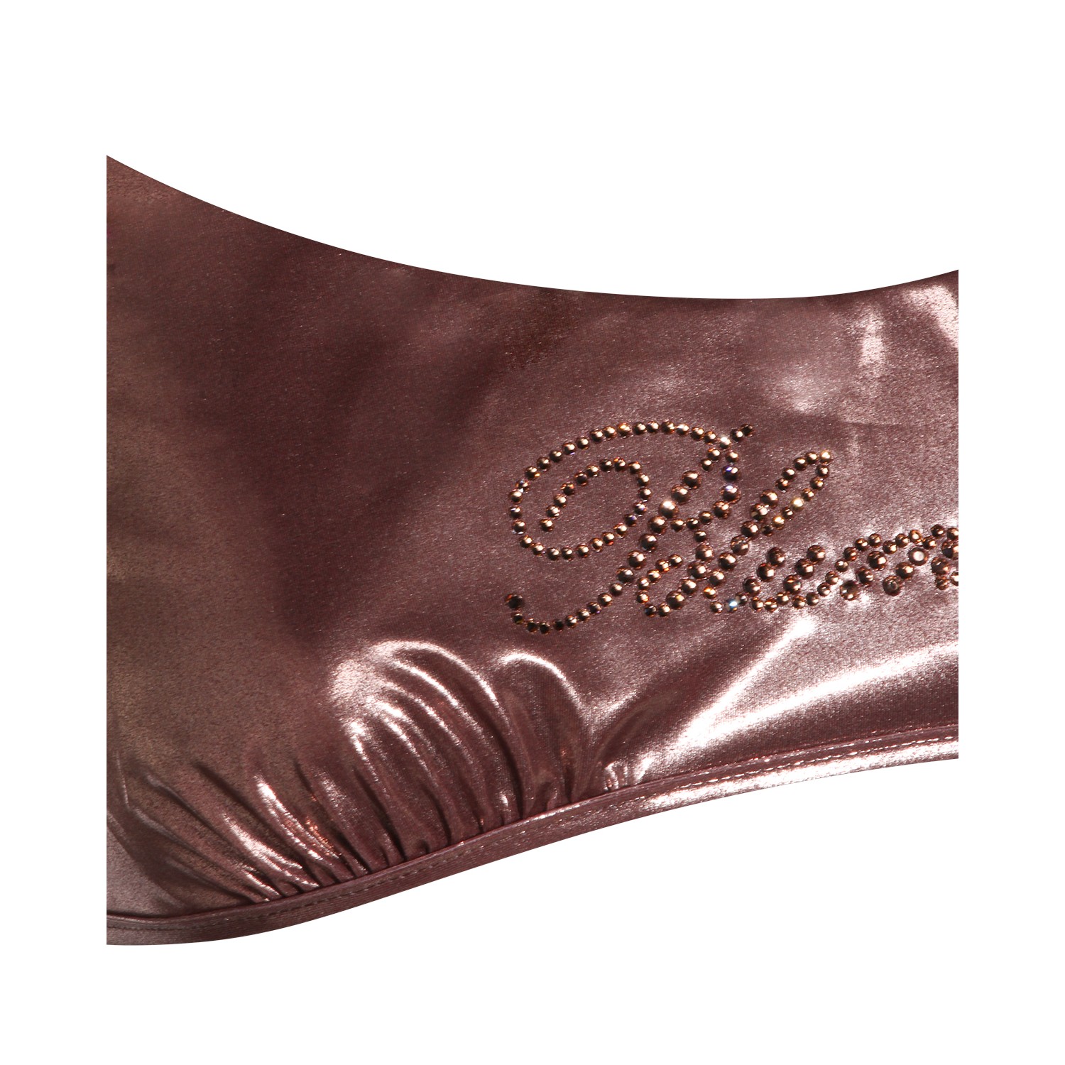 Brown top beachwear from Blumarine featuring round neckline, adjustable straps, back fastening and stitched logo.