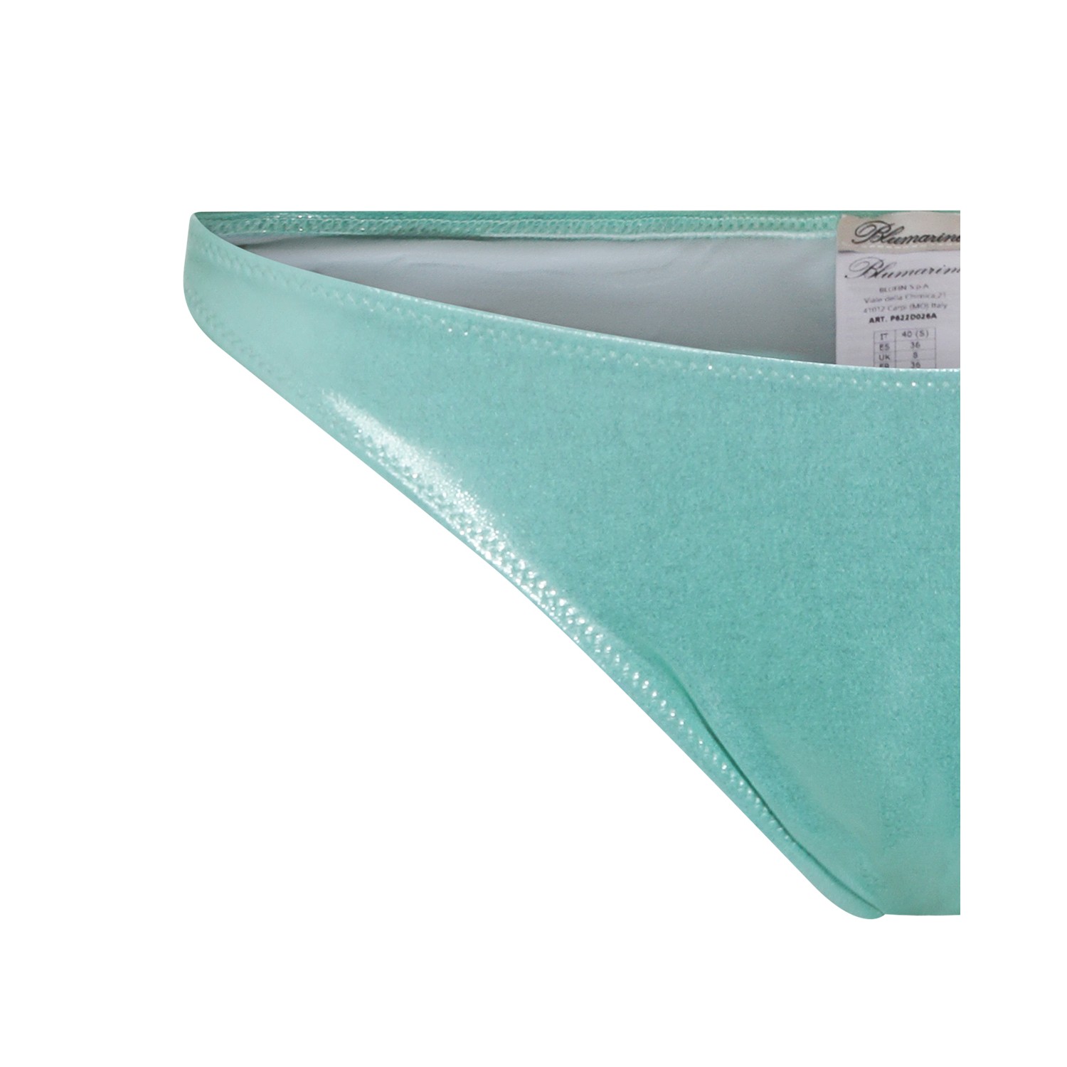 Green slip beachwear from Blumarine featuring back glittering logo.