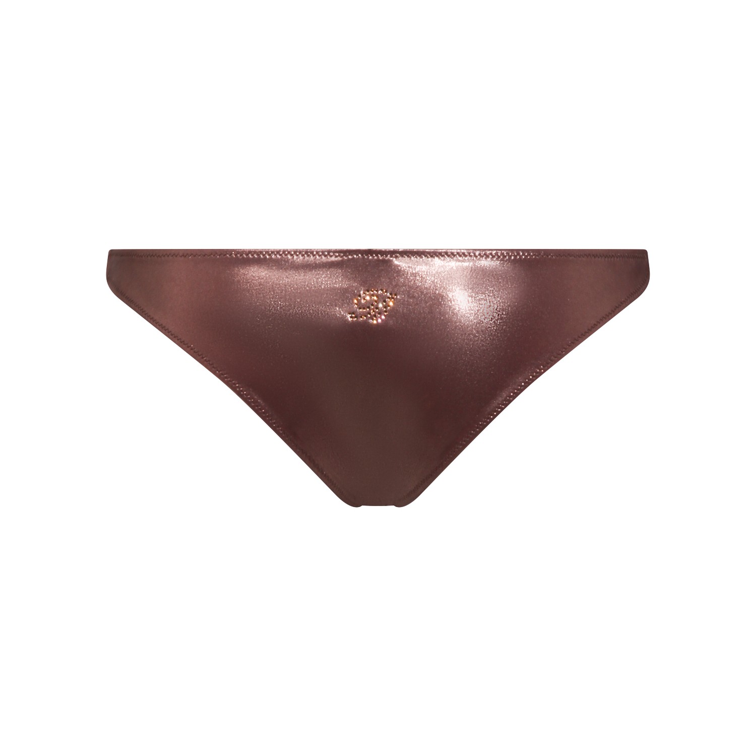 Brown slip beachwear from Blumarine featuring back glittering logo.