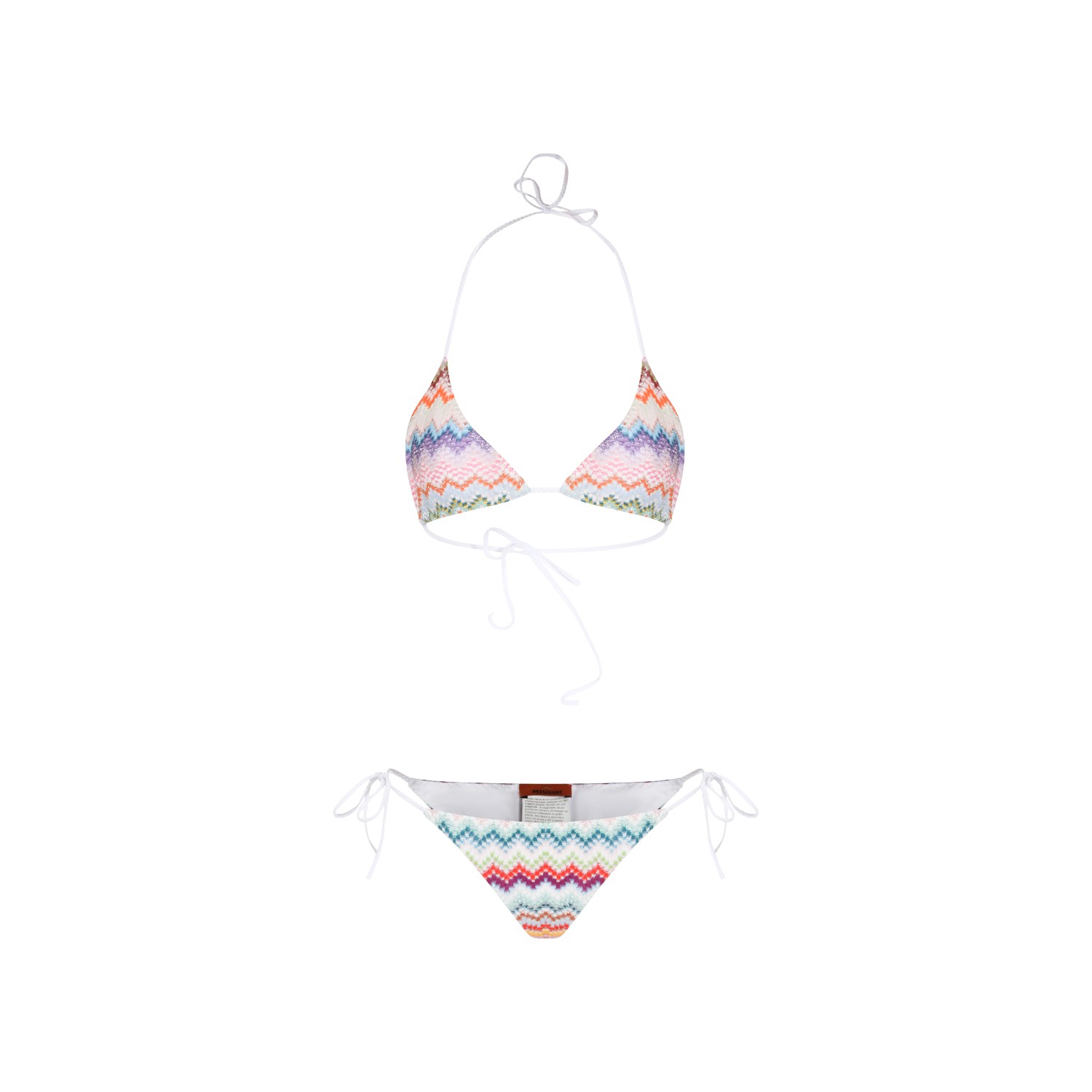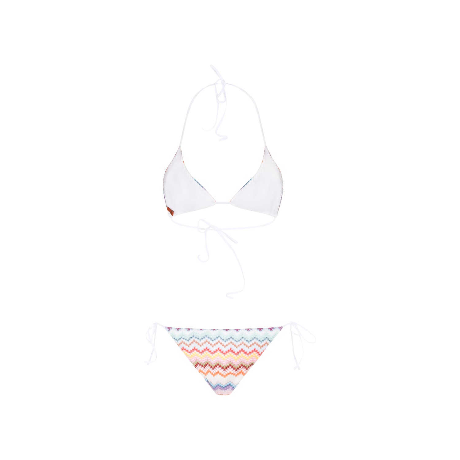 Multicolor viscose beachwear from Missoni featuring two pieces, drawstrings fastening, logo patch and all over pattern.