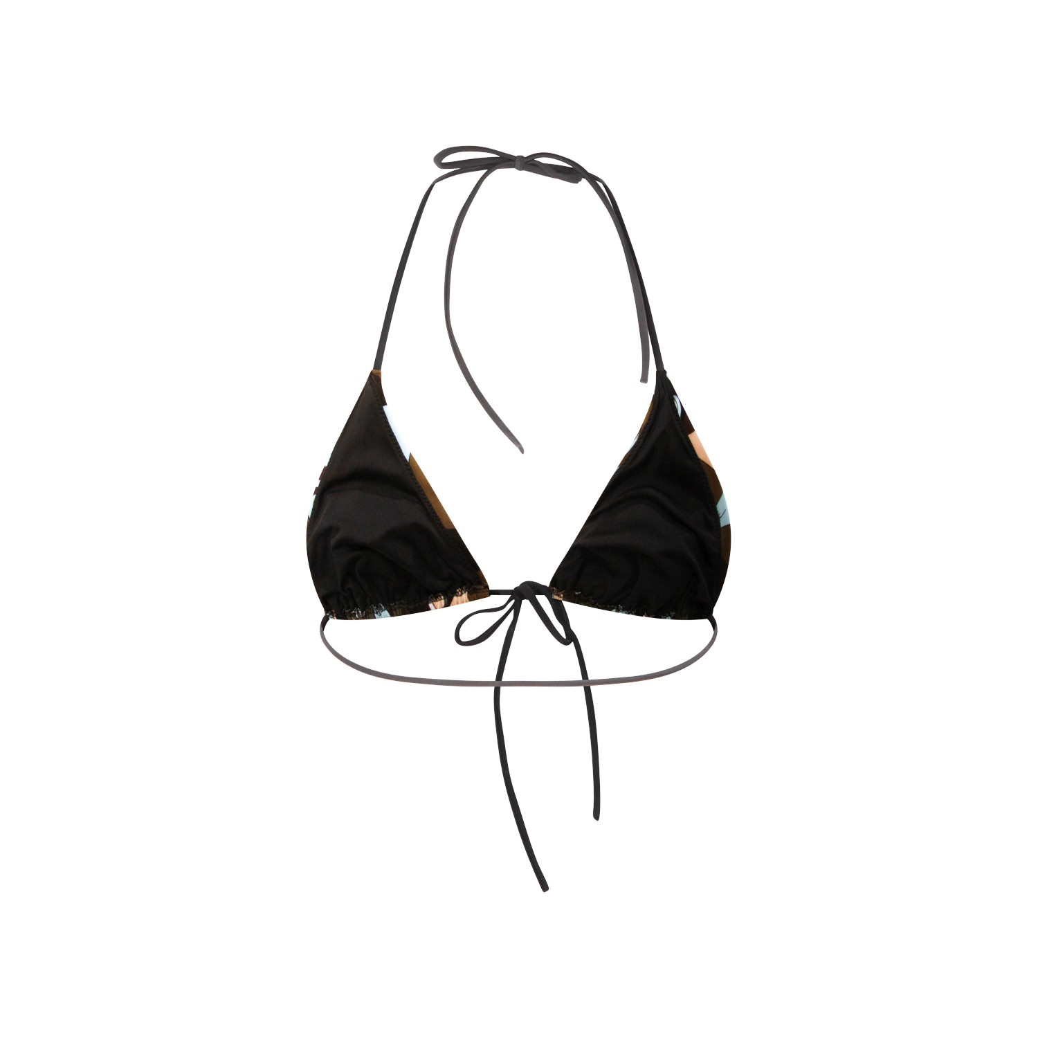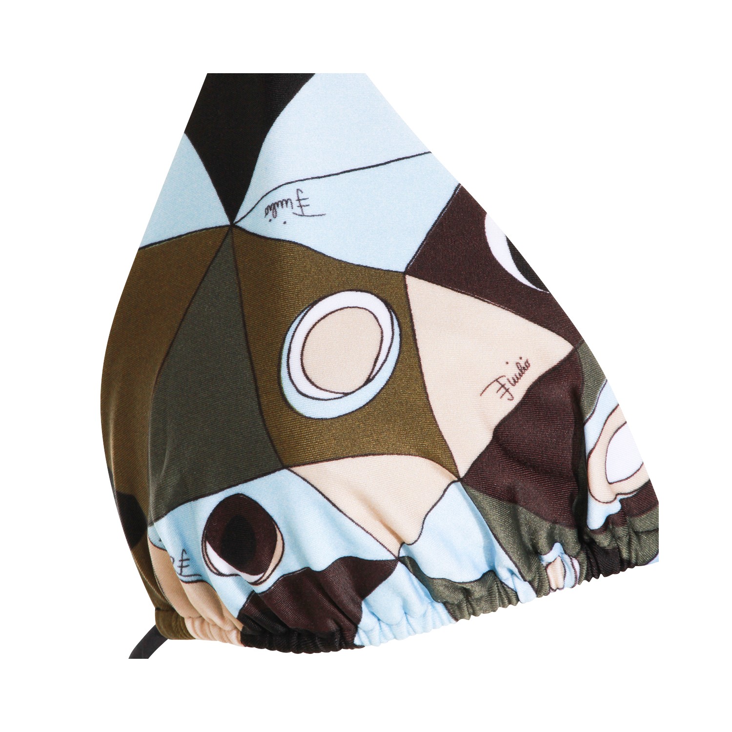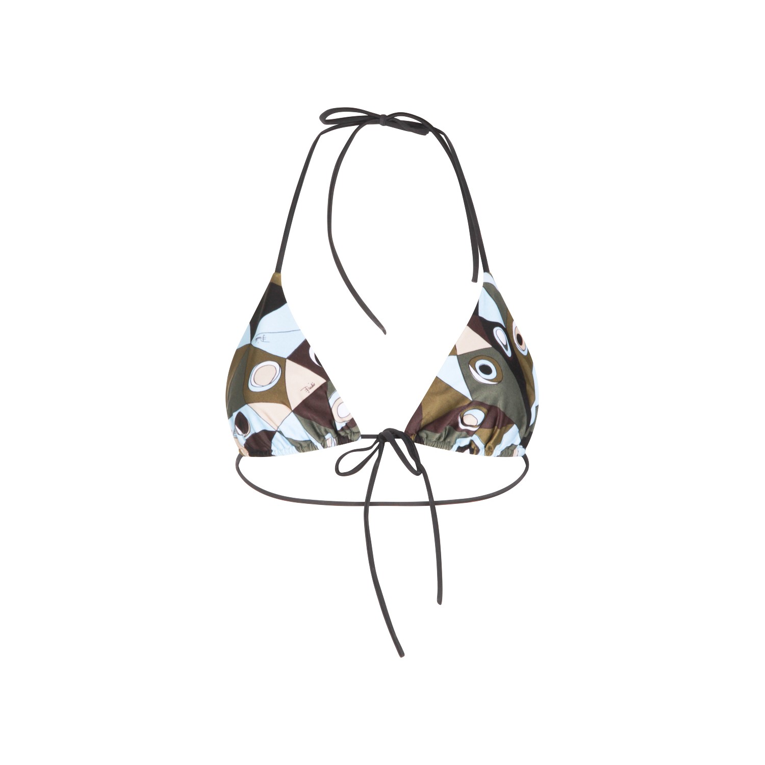 Khaki blue top beachwear from Emilio Pucci featuring triangle line, all over multicolor print and thin adjustable straps.