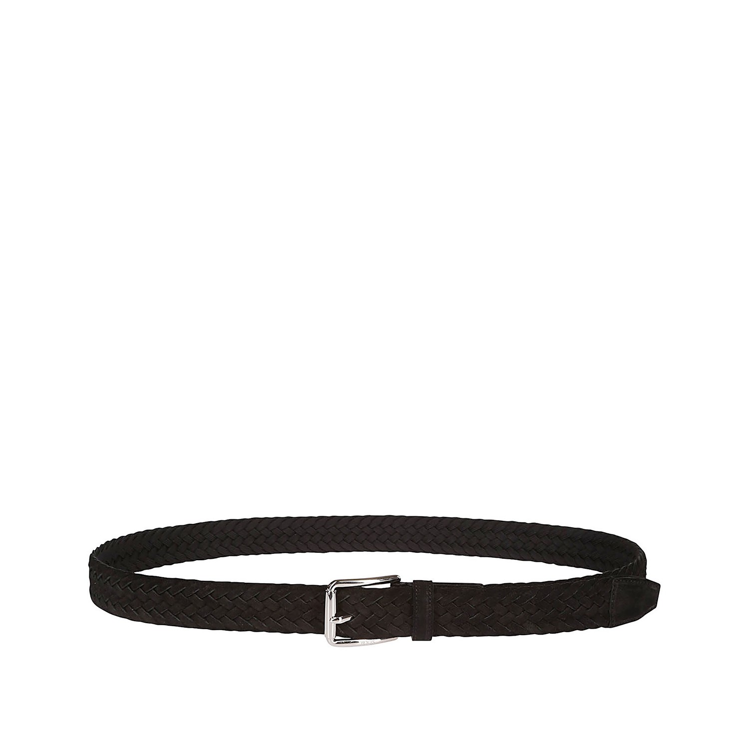 Black suede belt from Tod's featuring a woven design, adjustable fit and silver-tone buckle fastening.