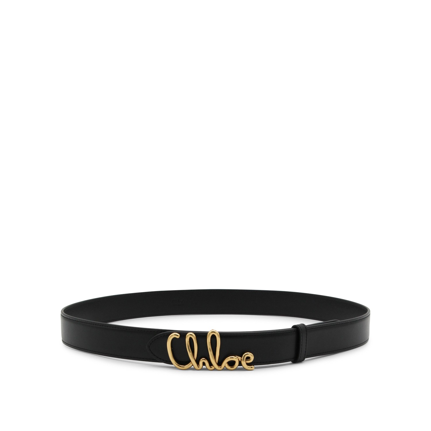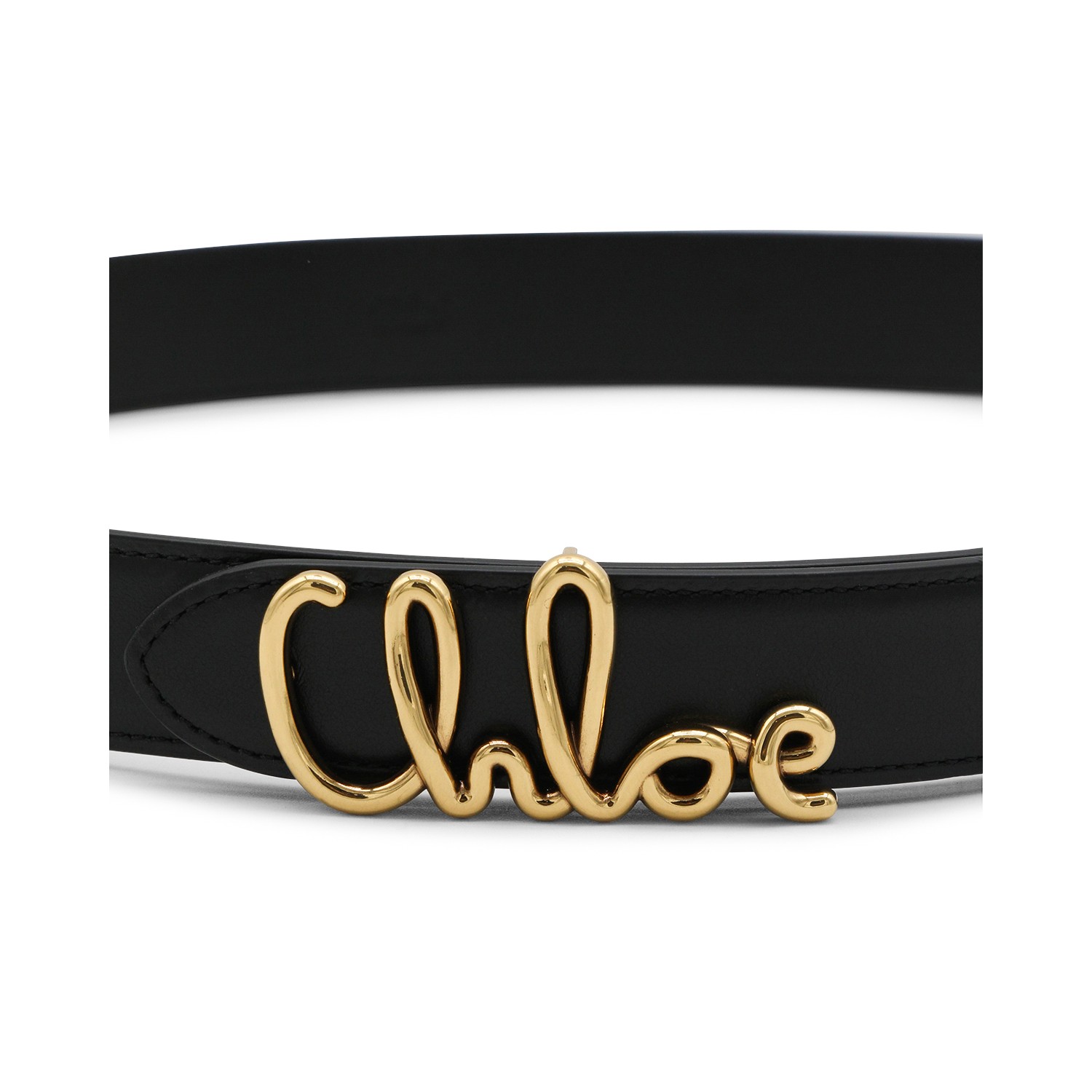 Black leather belt from Chlofeaturing adjustable size, logo closure and gold tone hardware.