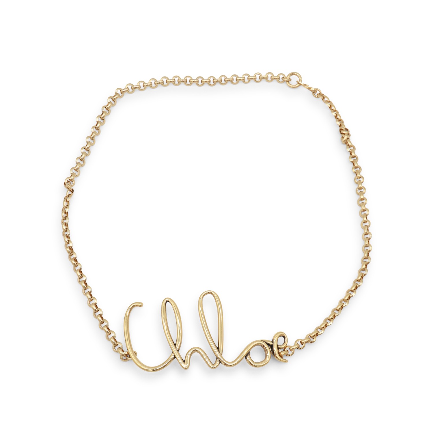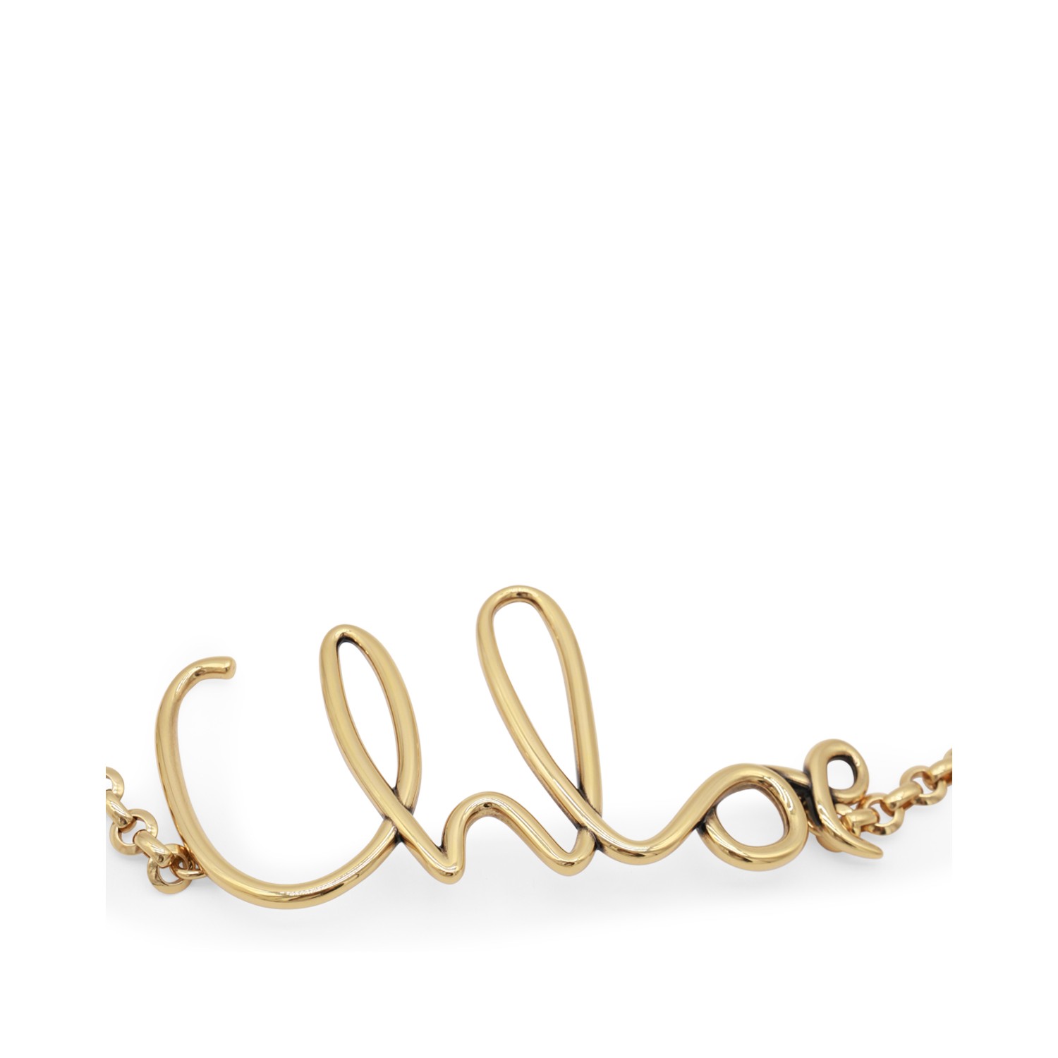 Gold tone belt from Chlofeaturing one size, adjustable, logo and chain fastening.