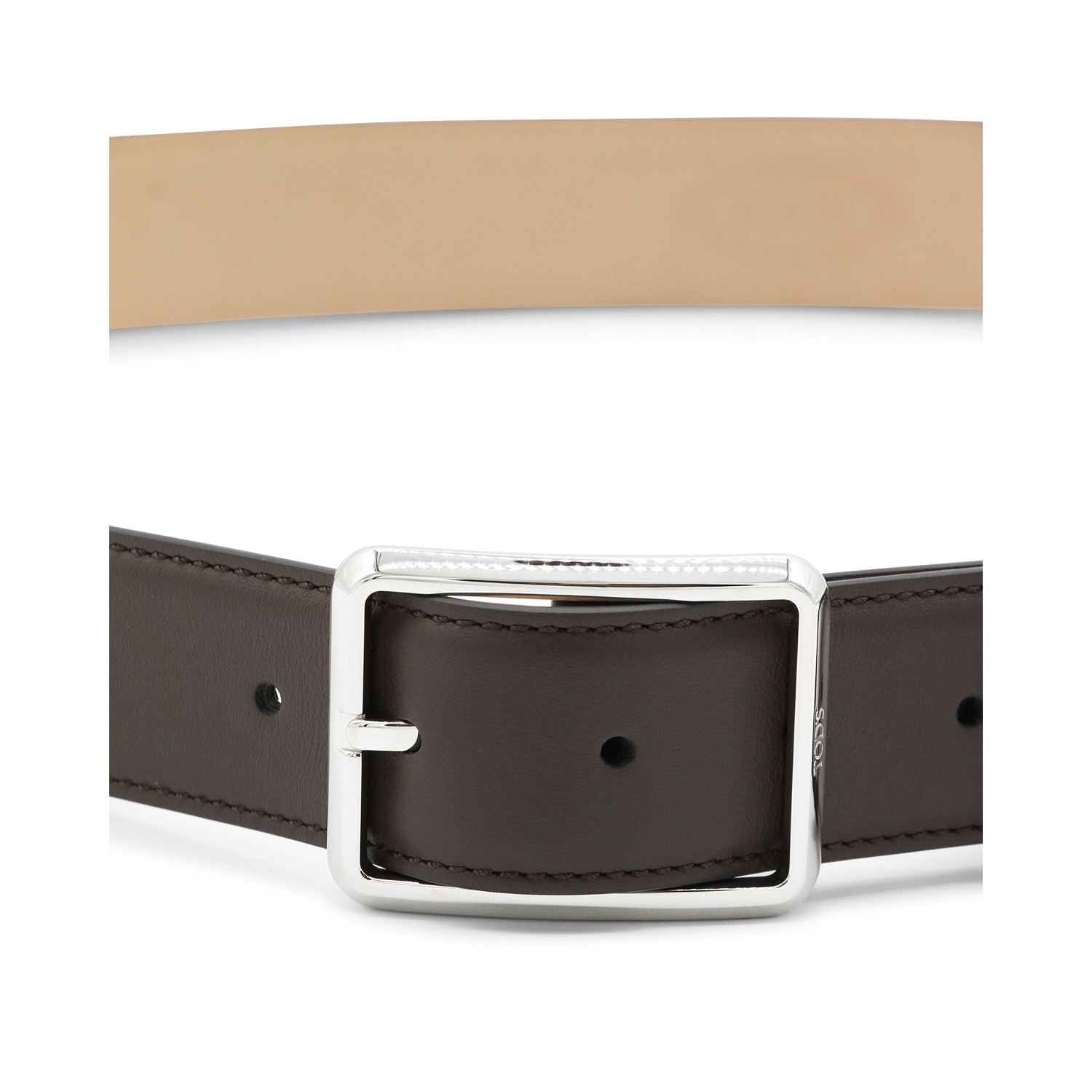 Brown leather belt from Tod's featuring adjustable size and silver tone hardware.