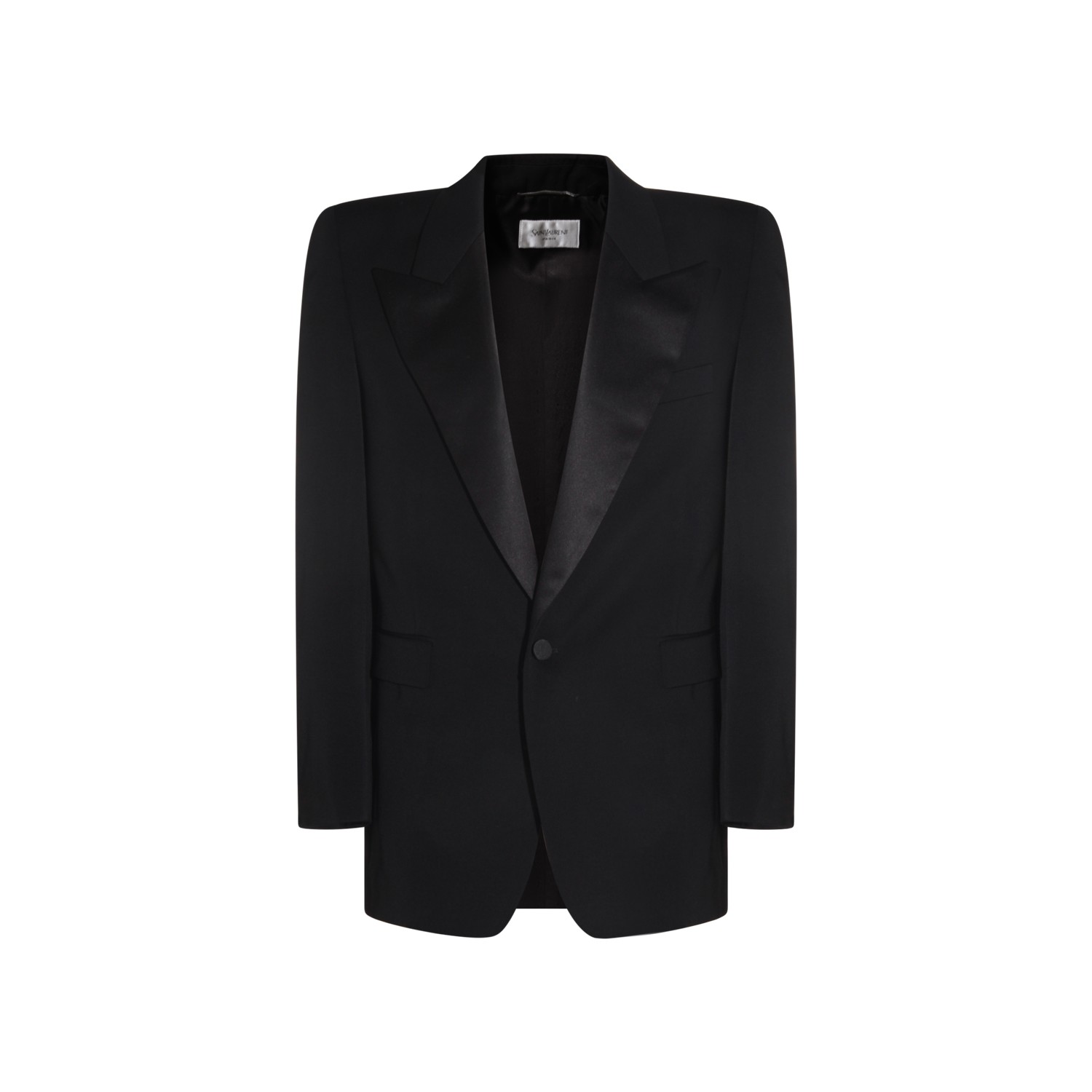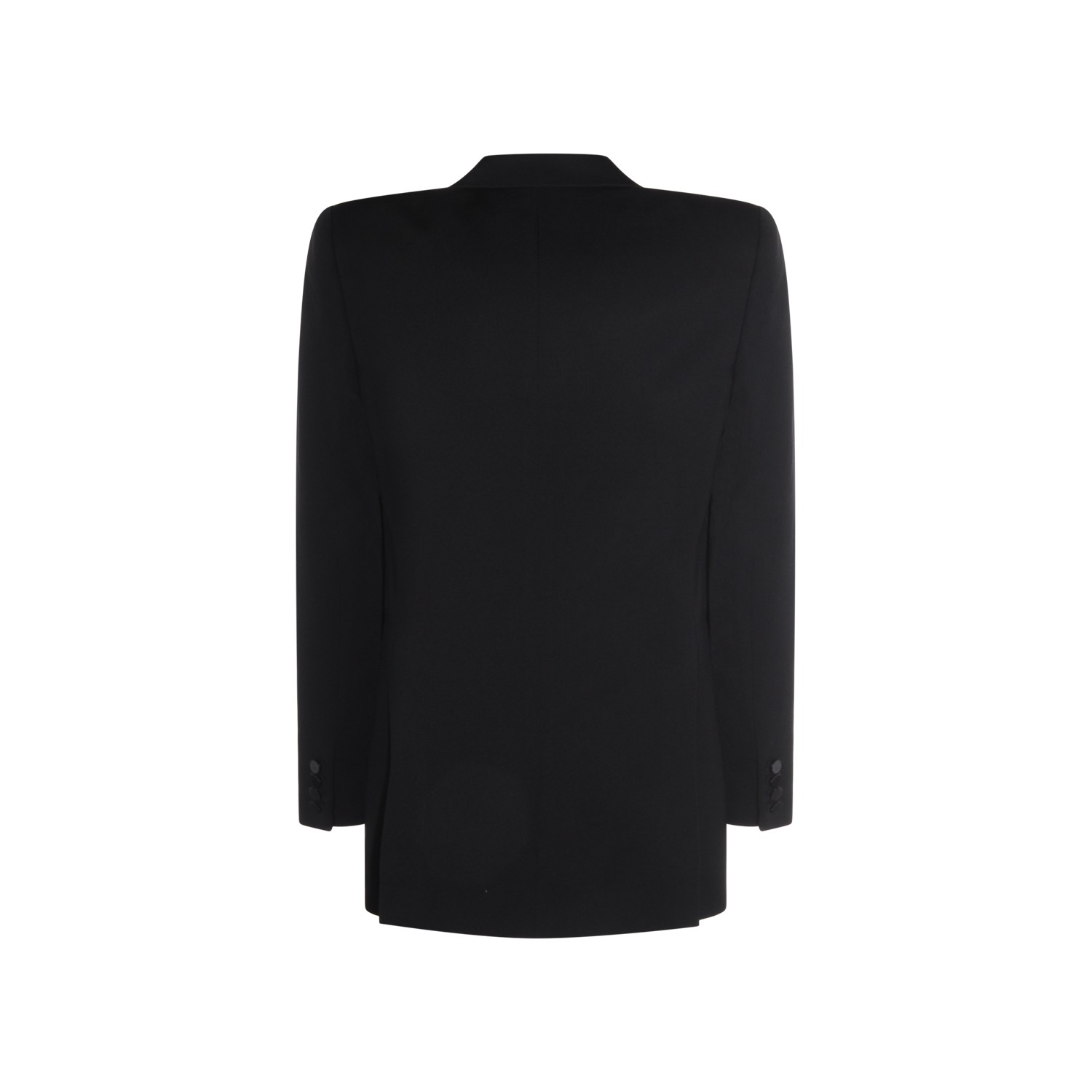 Black wool blazer from Saint Laurent featuring lapel collar, long sleeves, frontalo button fastening, curved hem and regular vestibility.