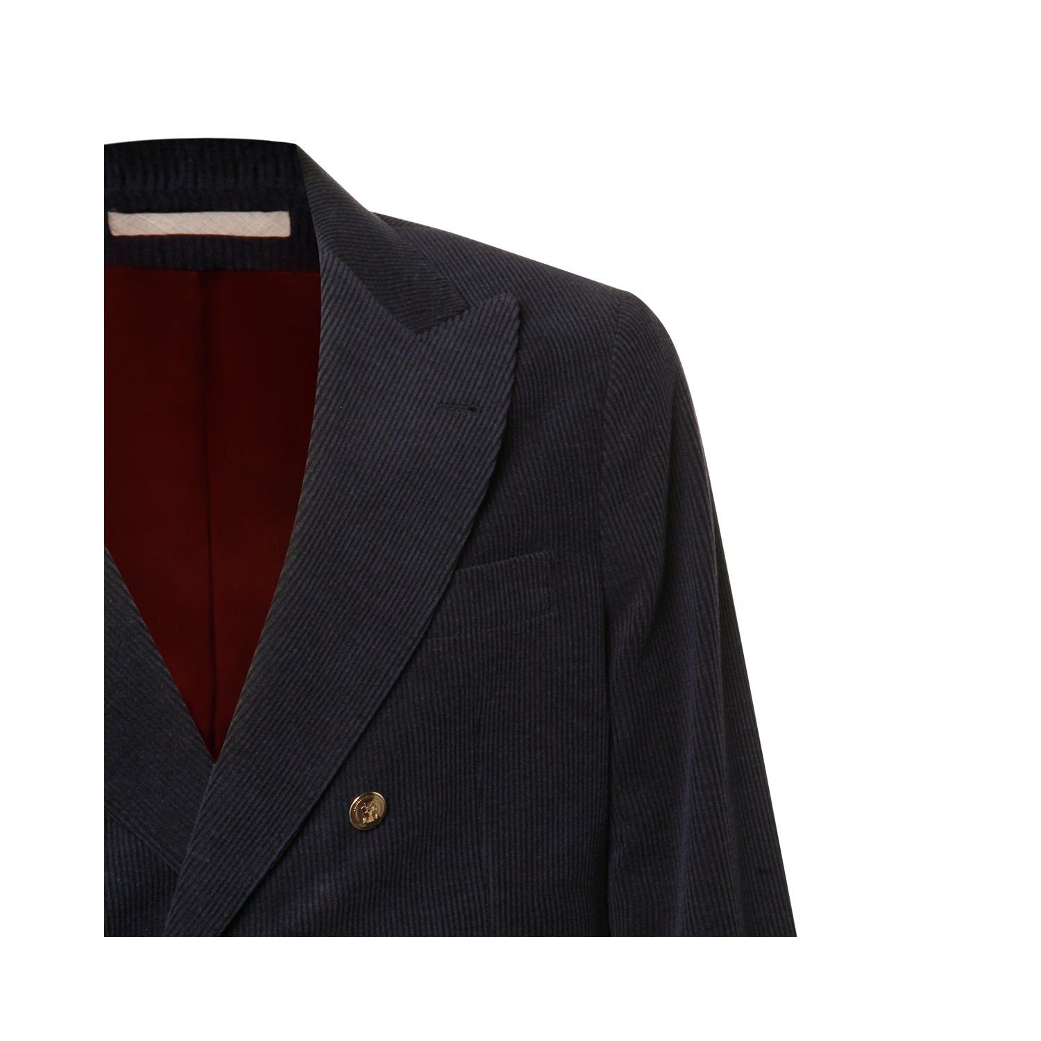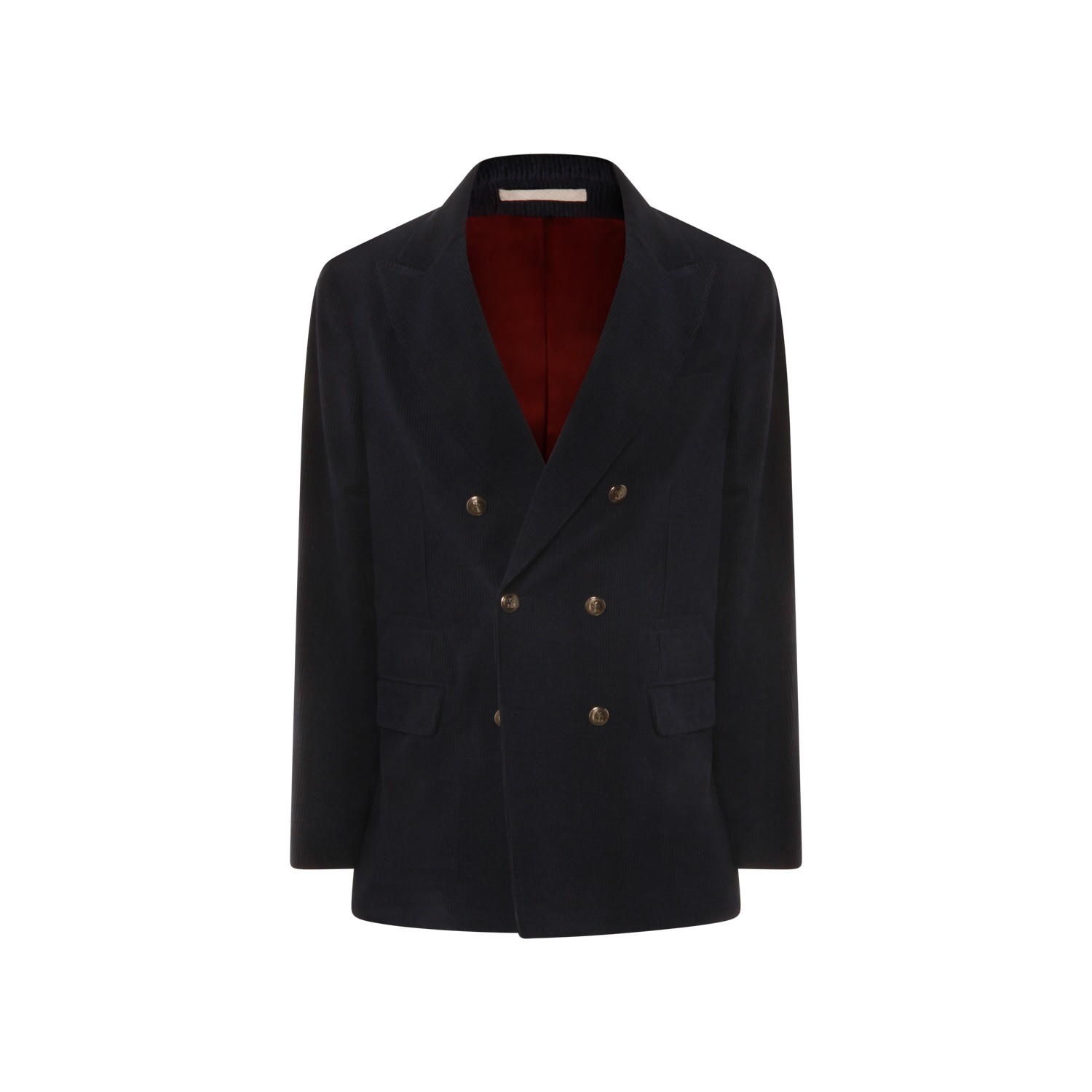 Blue wool blazer from Brunello Cucinelli featuring gold tone buttons fastening, long sleeves and soft vestibility.