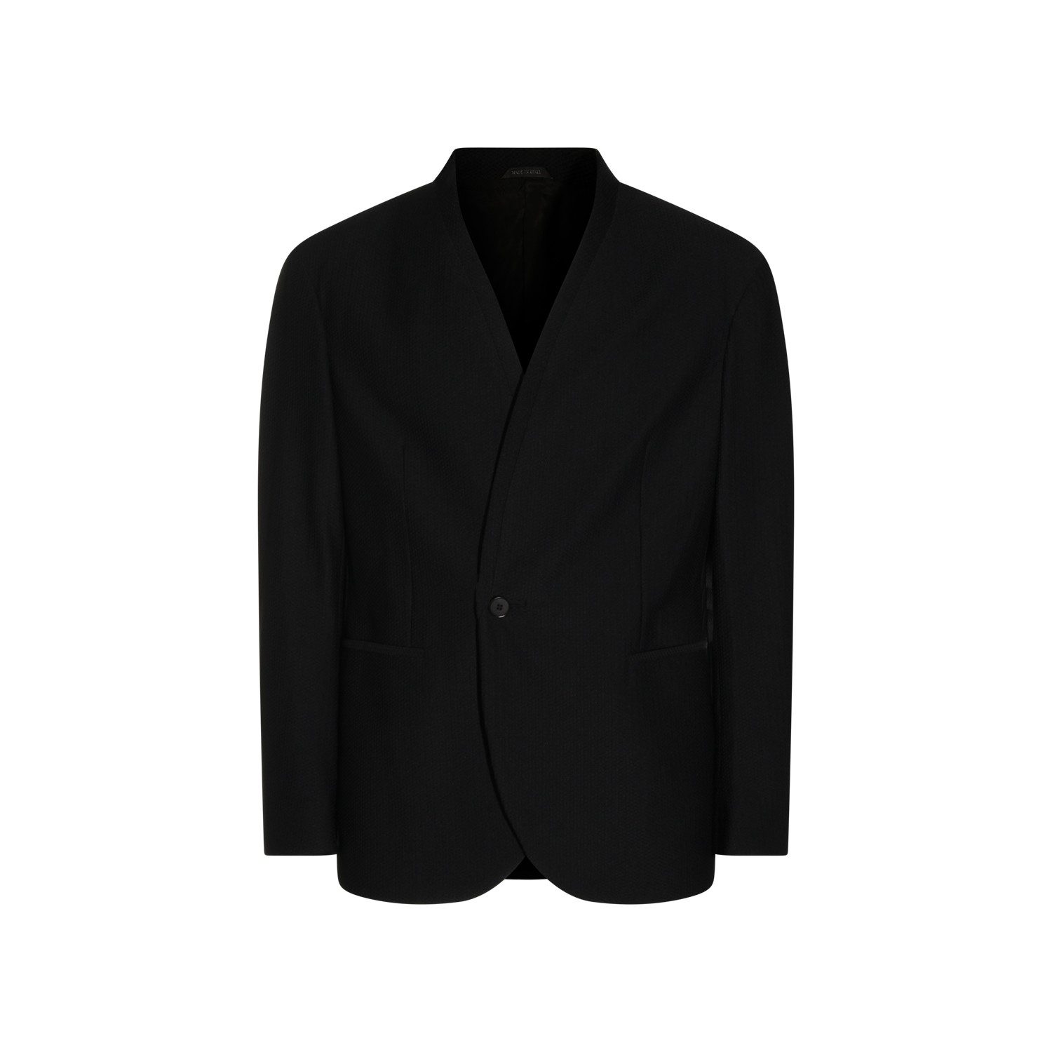 Black blazer from Giorgio Armani featuring long sleeves, frontal button fastening, pockets and regular vestibility.