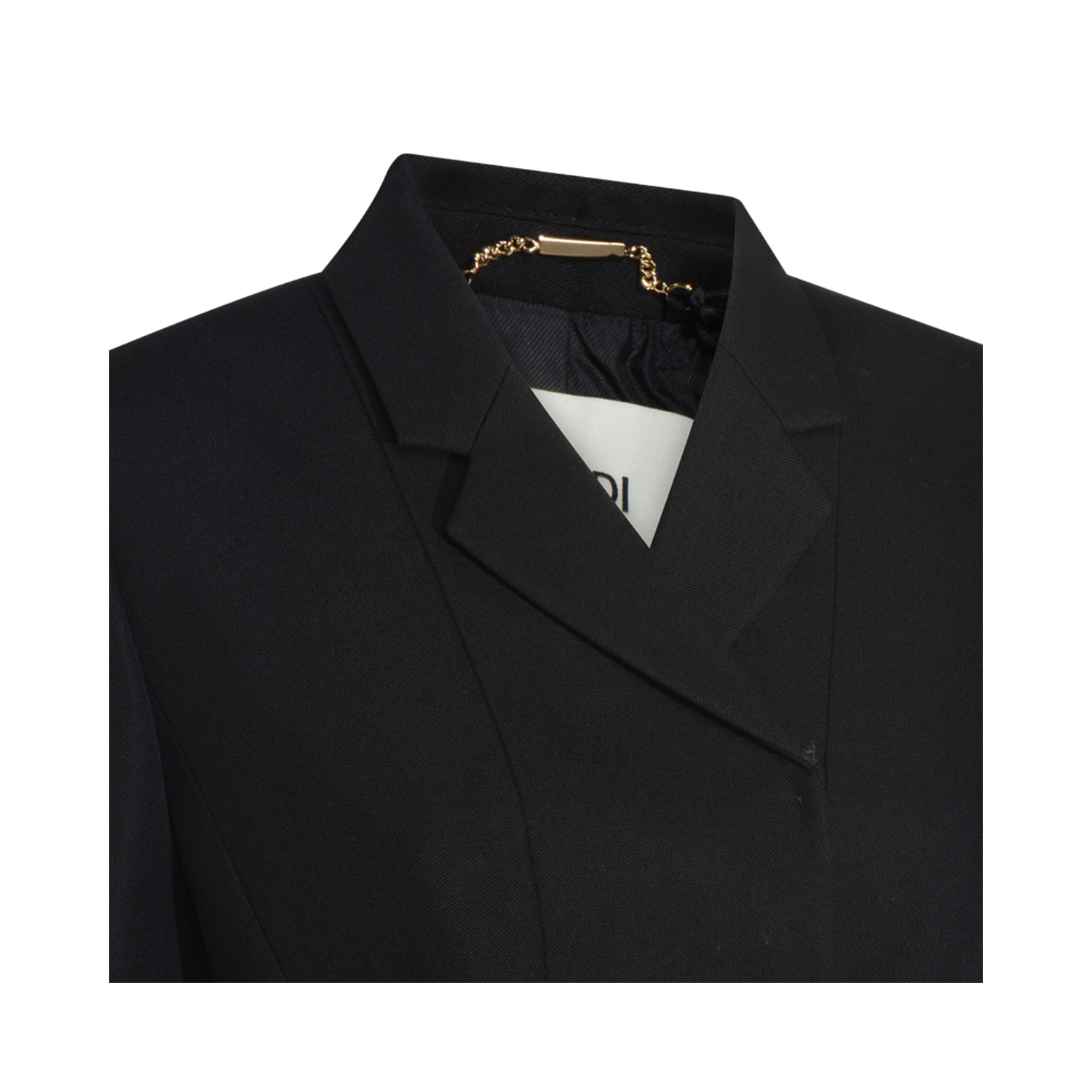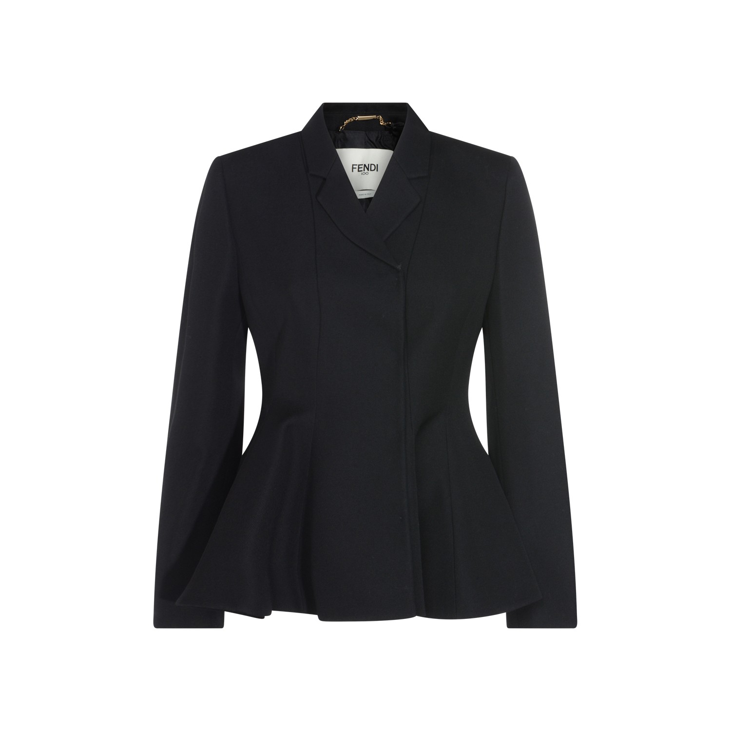 Black wool blazer from Fendi featuring lapel collar, long sleeves, double breasted, hidden closure and regular vestibility.