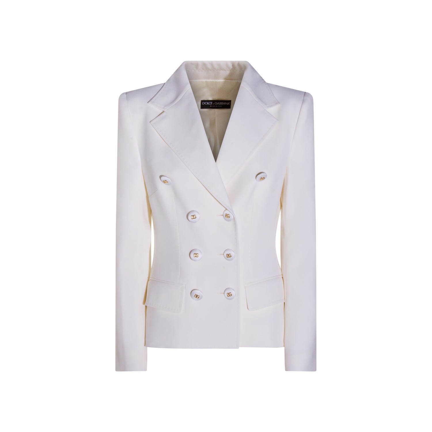 White wool blazer from Dolce & Gabbana featuring lapel collar, long sleeves, double breasted and regular vestibility.