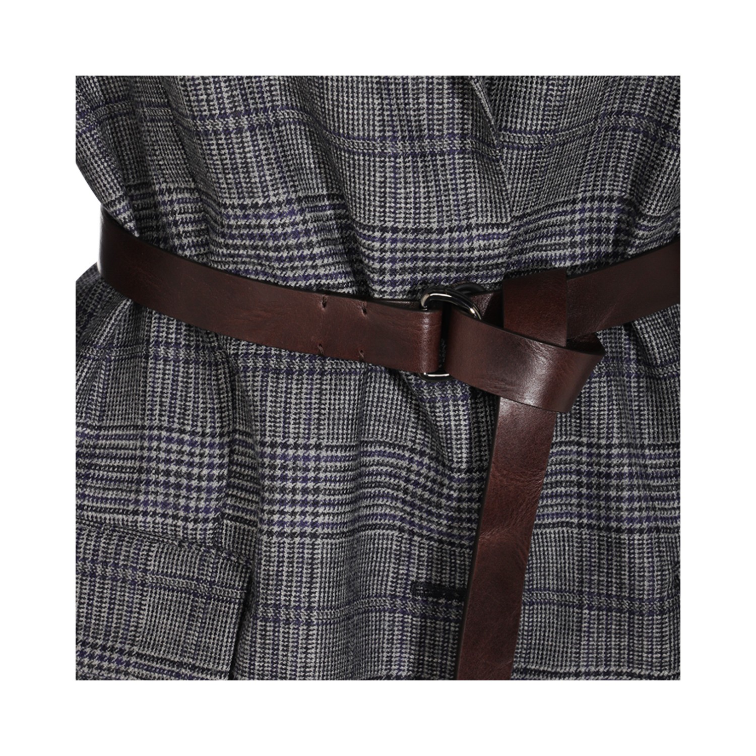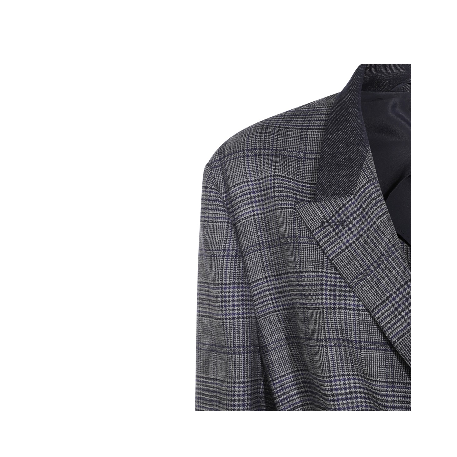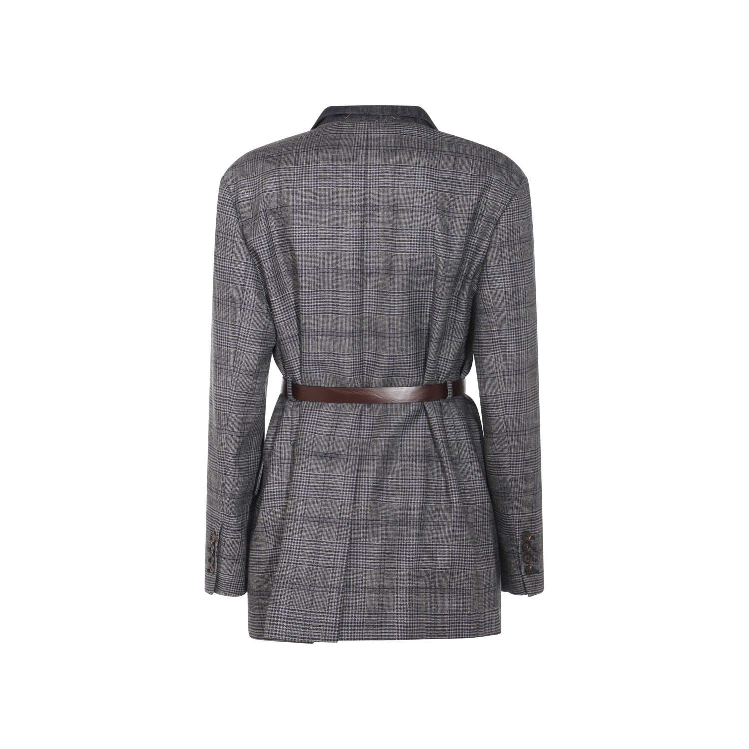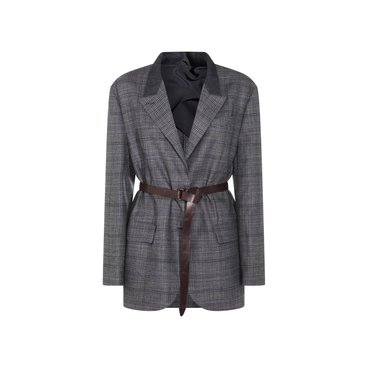Grey wool blazer from Brunello Cucinelli featuring long sleeves, round hem, pockets, belt and regular vestibility.