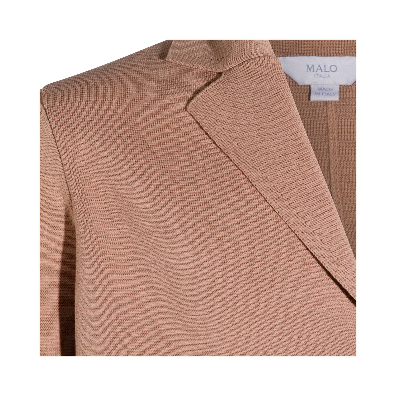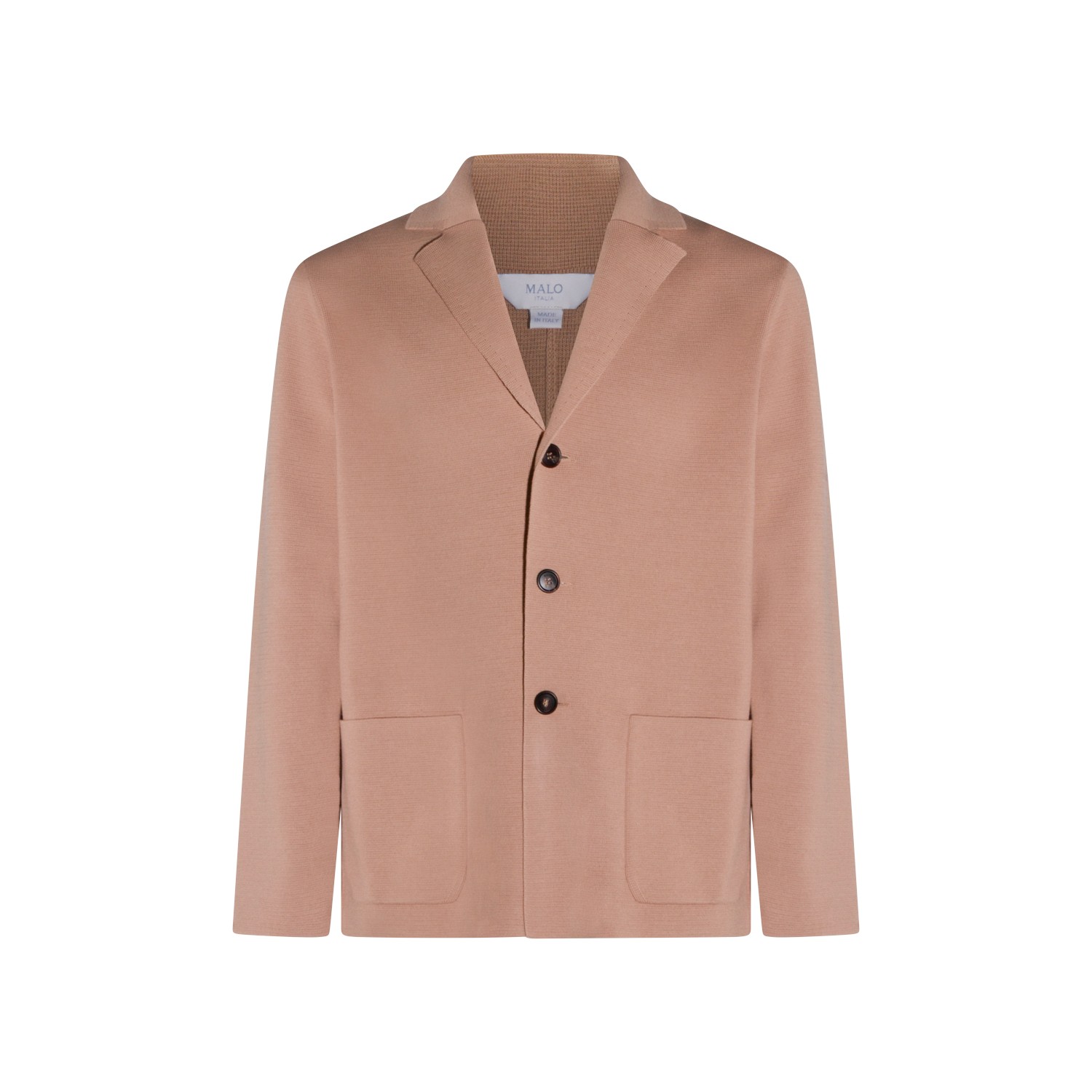 Camel cotton blazer from Malo featuring lapel collar, long sleeves, buttons fastening and pockets.