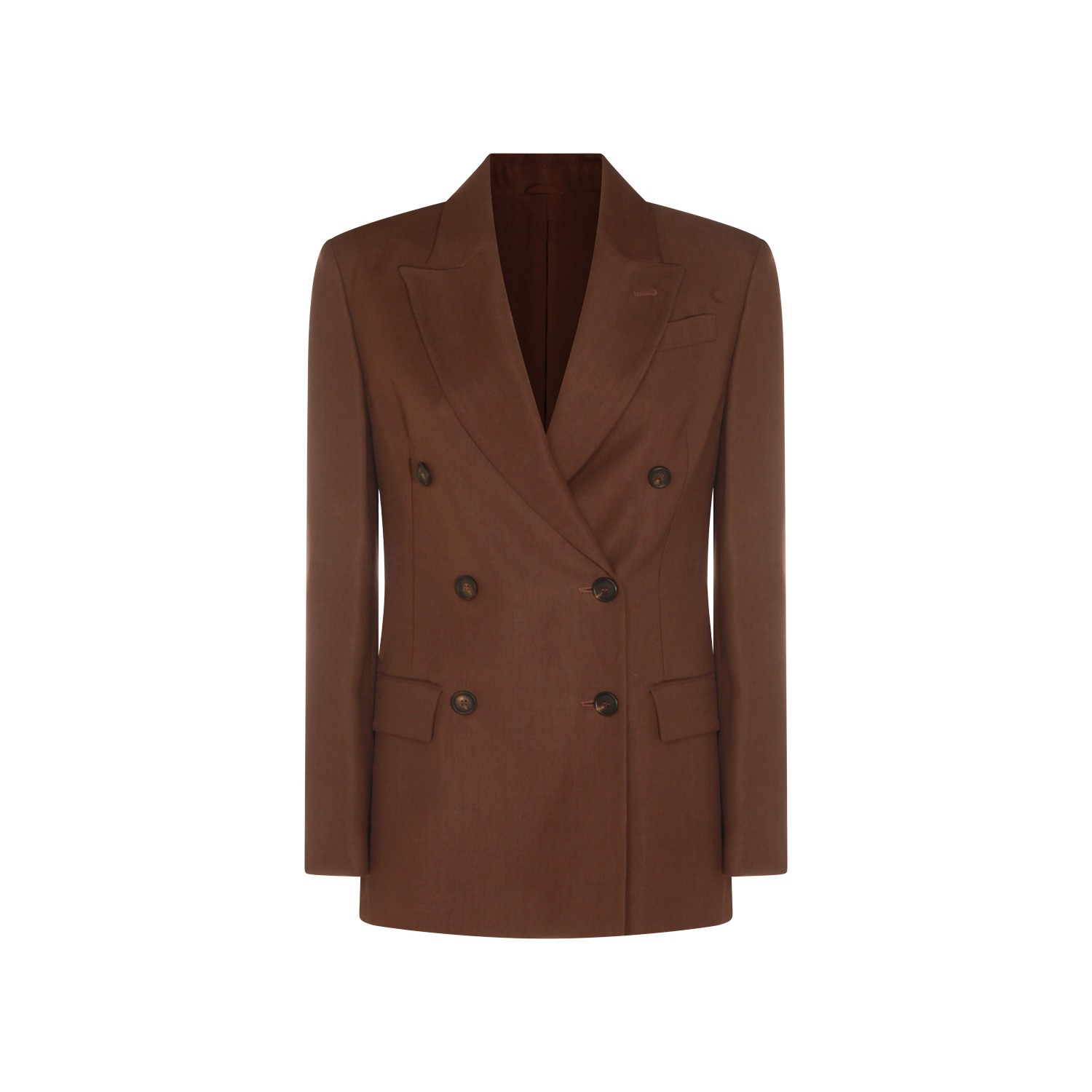 Brown viscose blazer from Brunello Cucinelli featuring lapel collar, long sleeves, double breasted closure, flat hem and regular vestibility.
