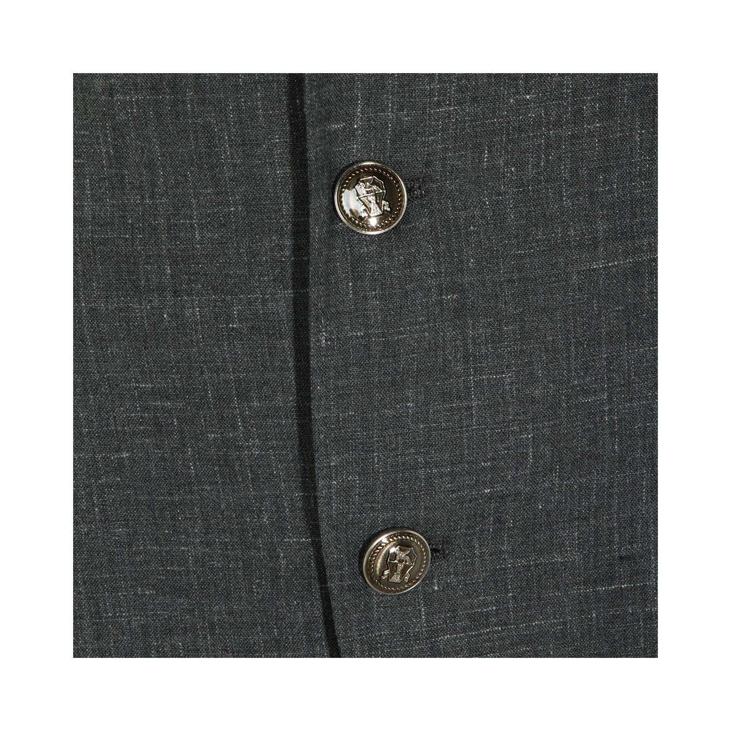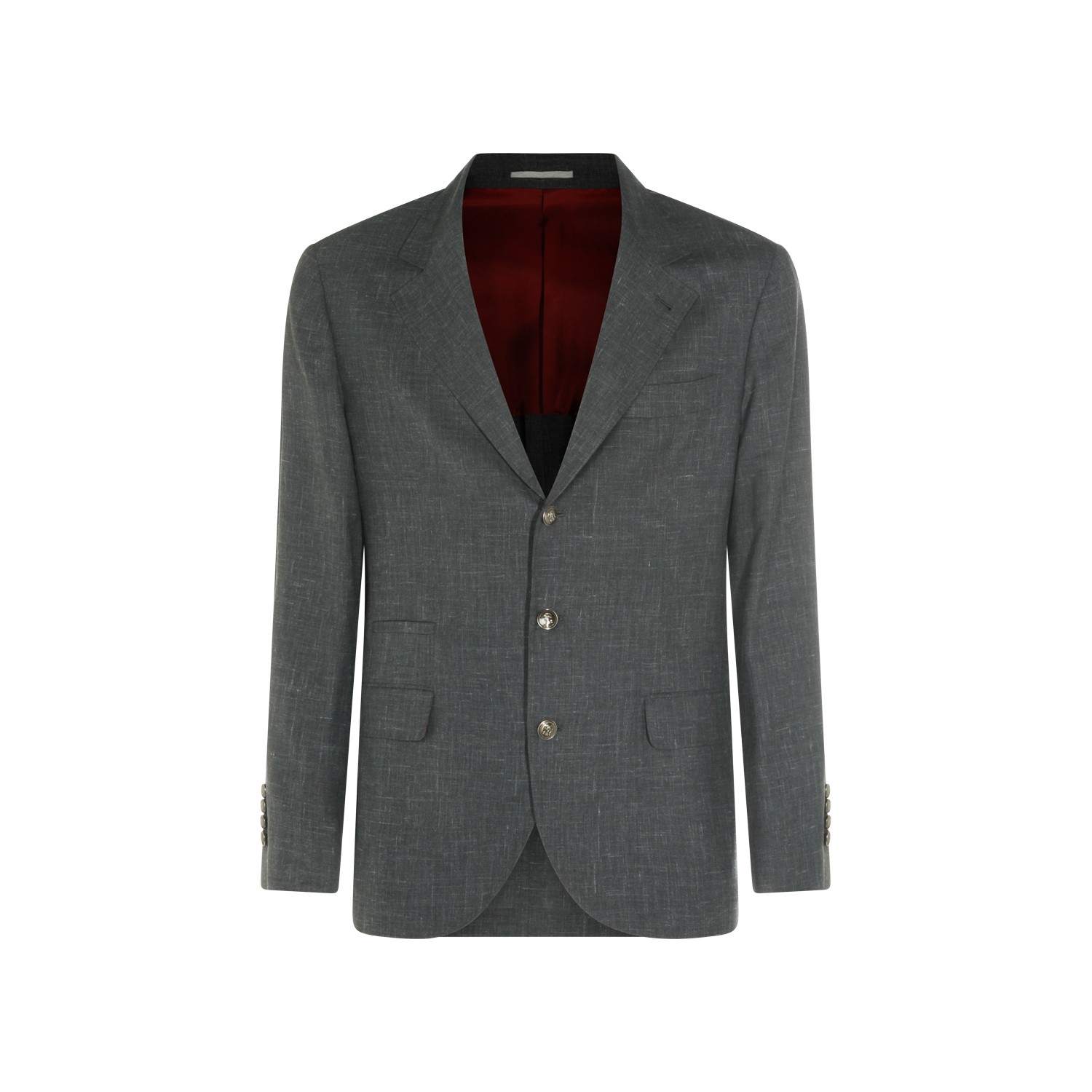 Grey wool blazer from Brunello Cucinelli featuring lapel collar, long sleeves, buttons fastening, curved hem and regular fit.