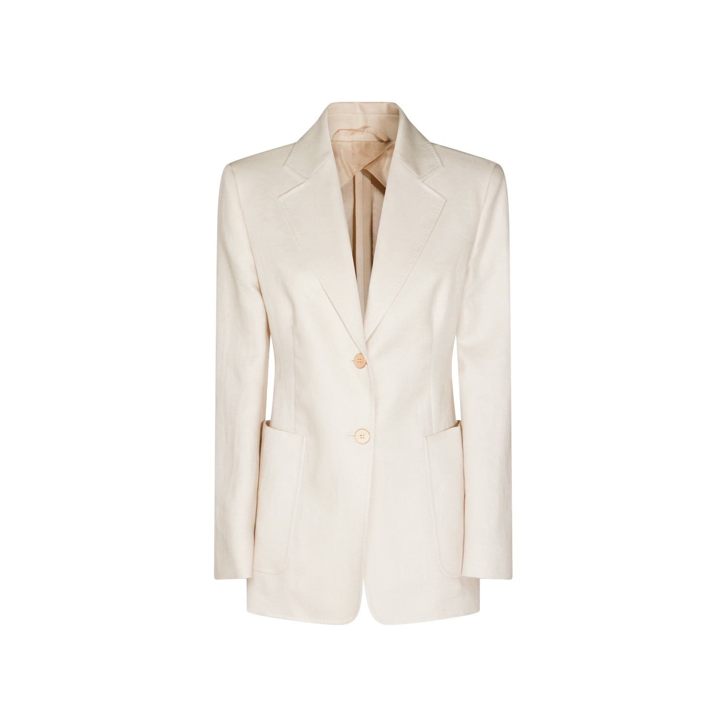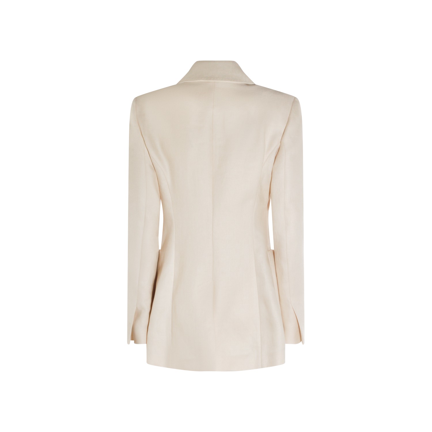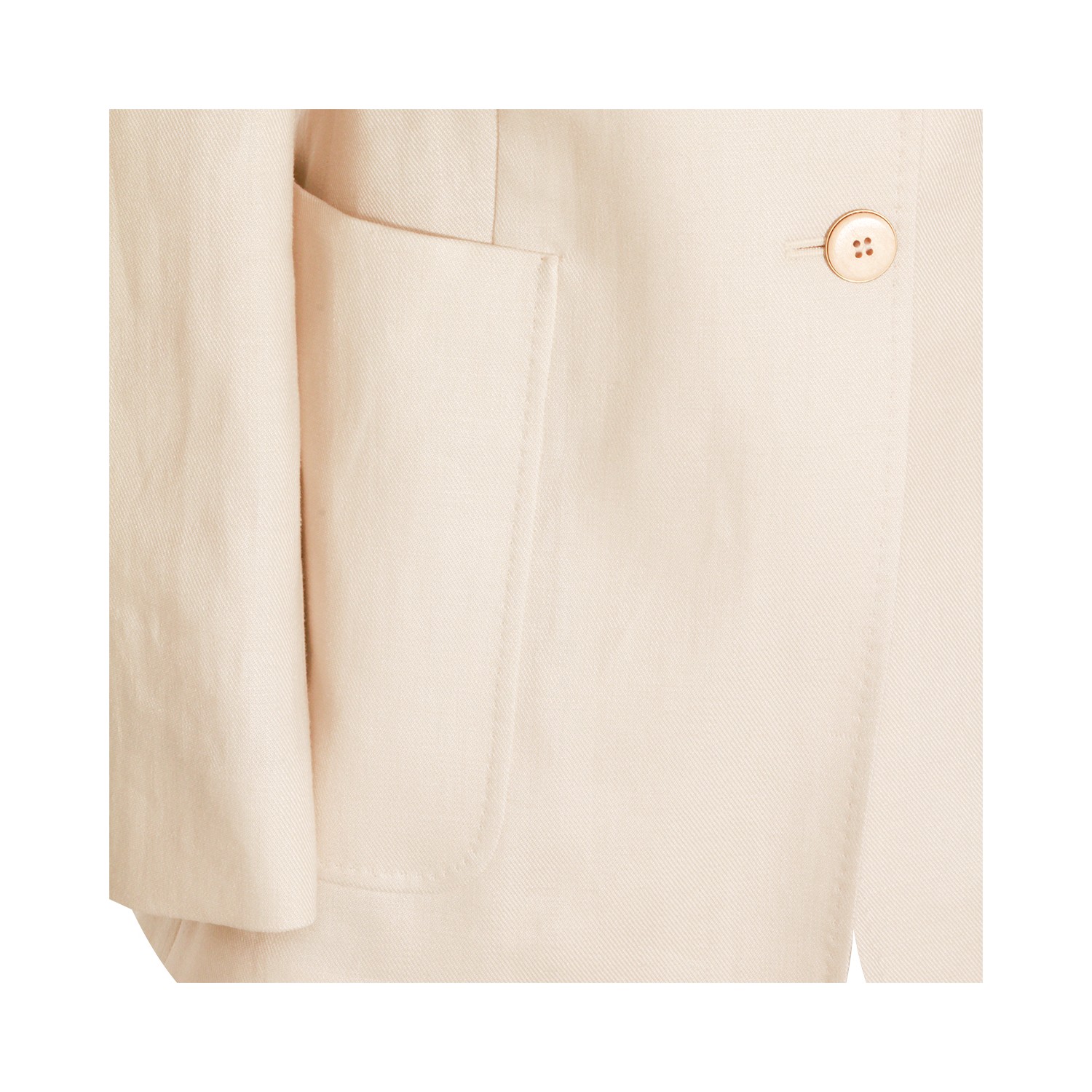 Beige linen Volonta blazer from Max Mara featuring lapel collar, long sleeves, buttons fastening, pockets, curved hem and regular fit.