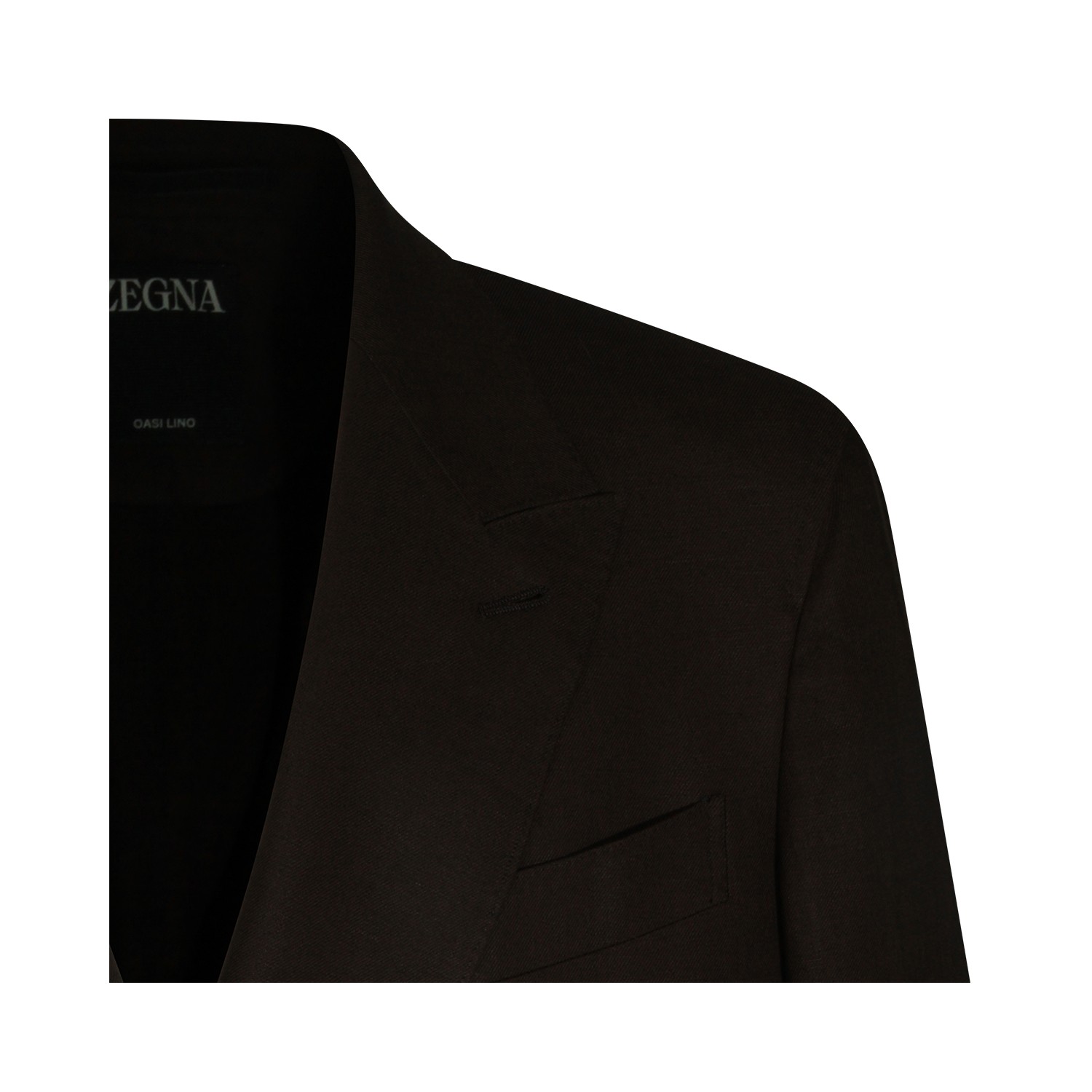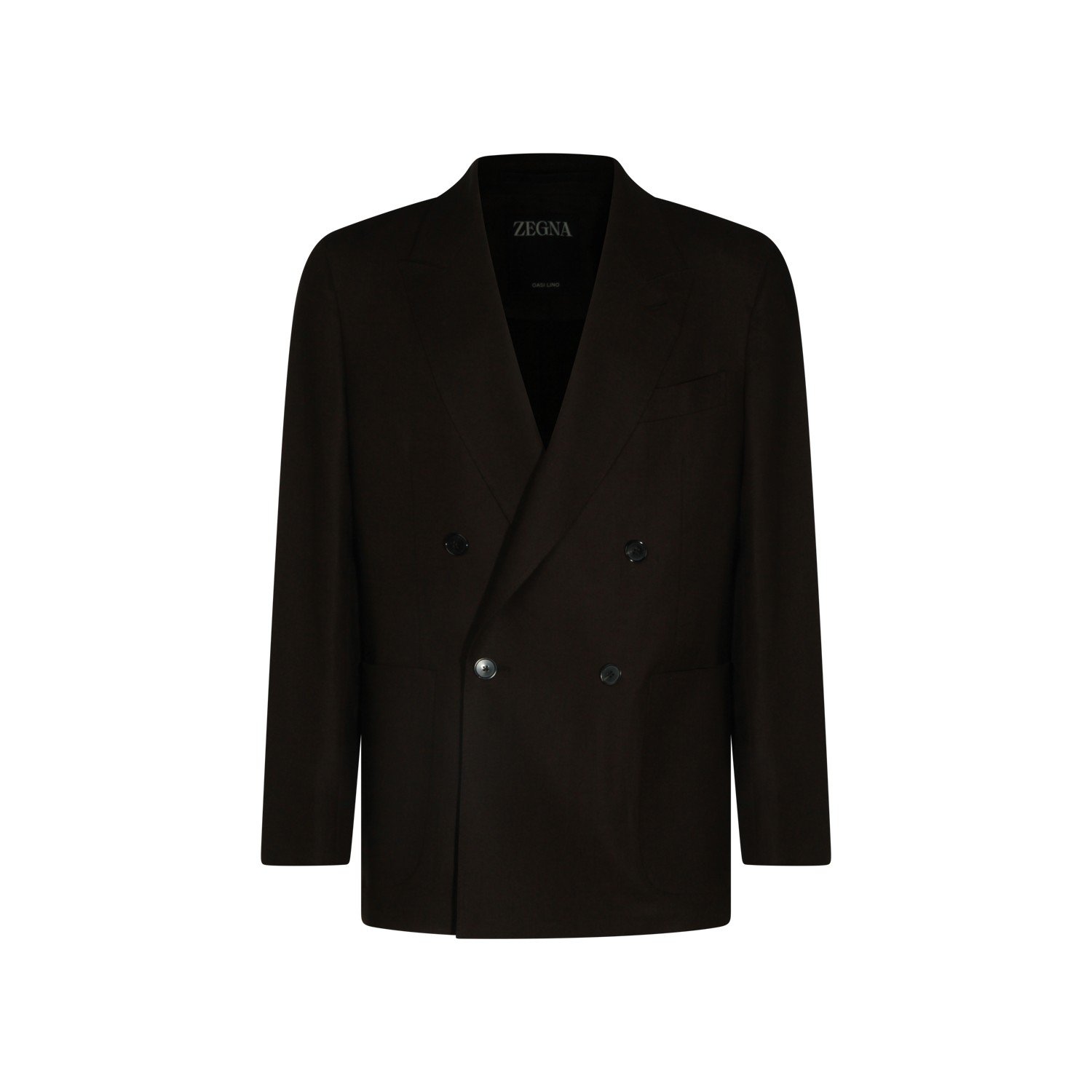 Brown linen blazer from Zegna featuring lapel collar, long sleeves, double breasted closure and regular fit.