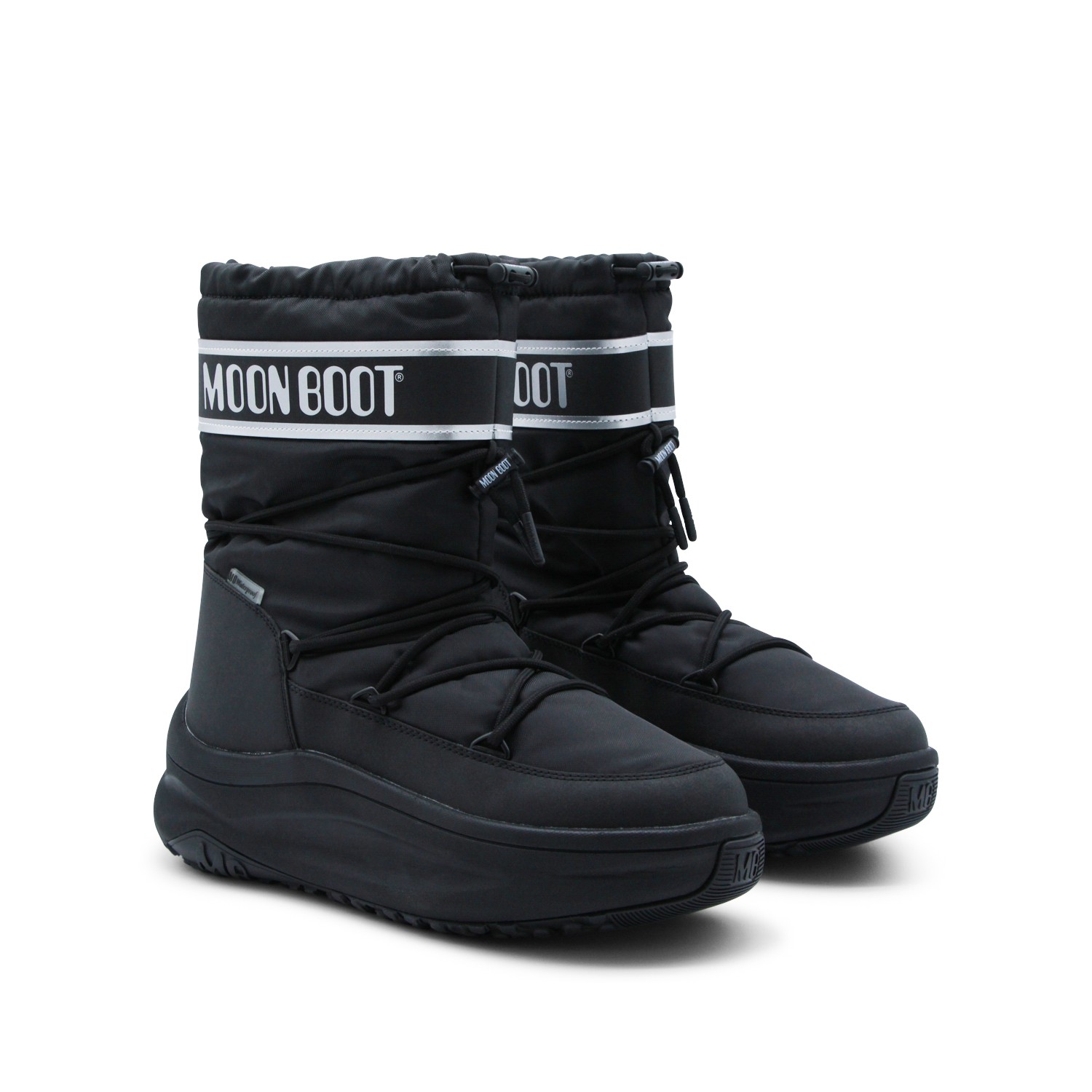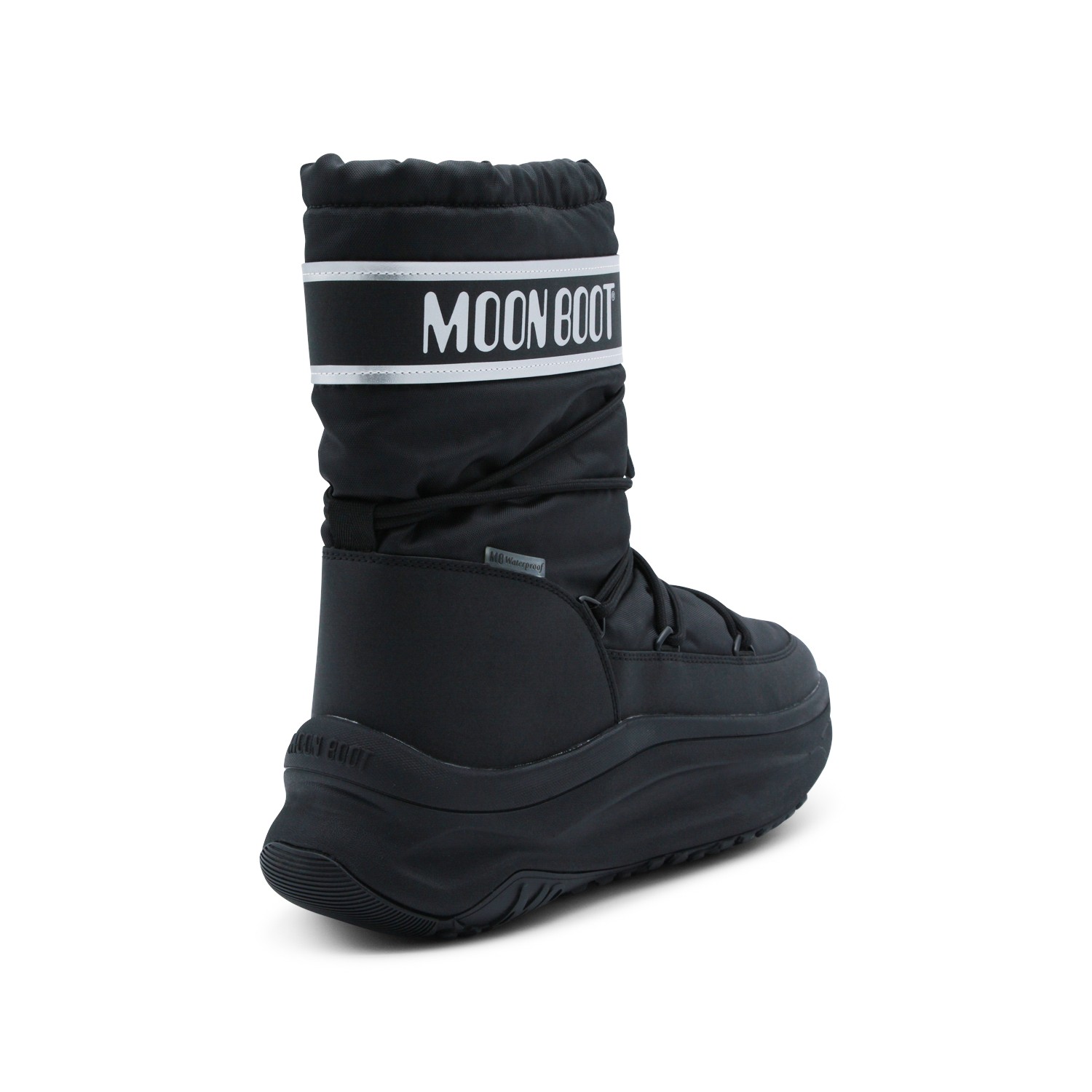Black Moon247 Polar boots from Moon Boot featuring round toe, drawstring, maxi logo band and rubber sole.
