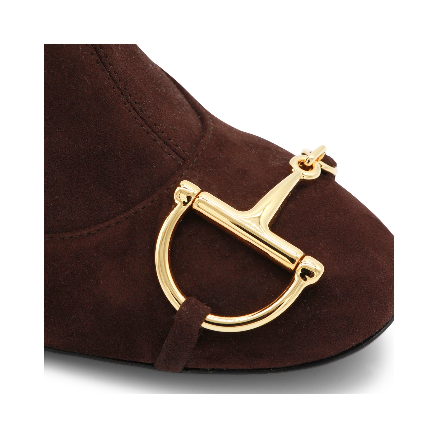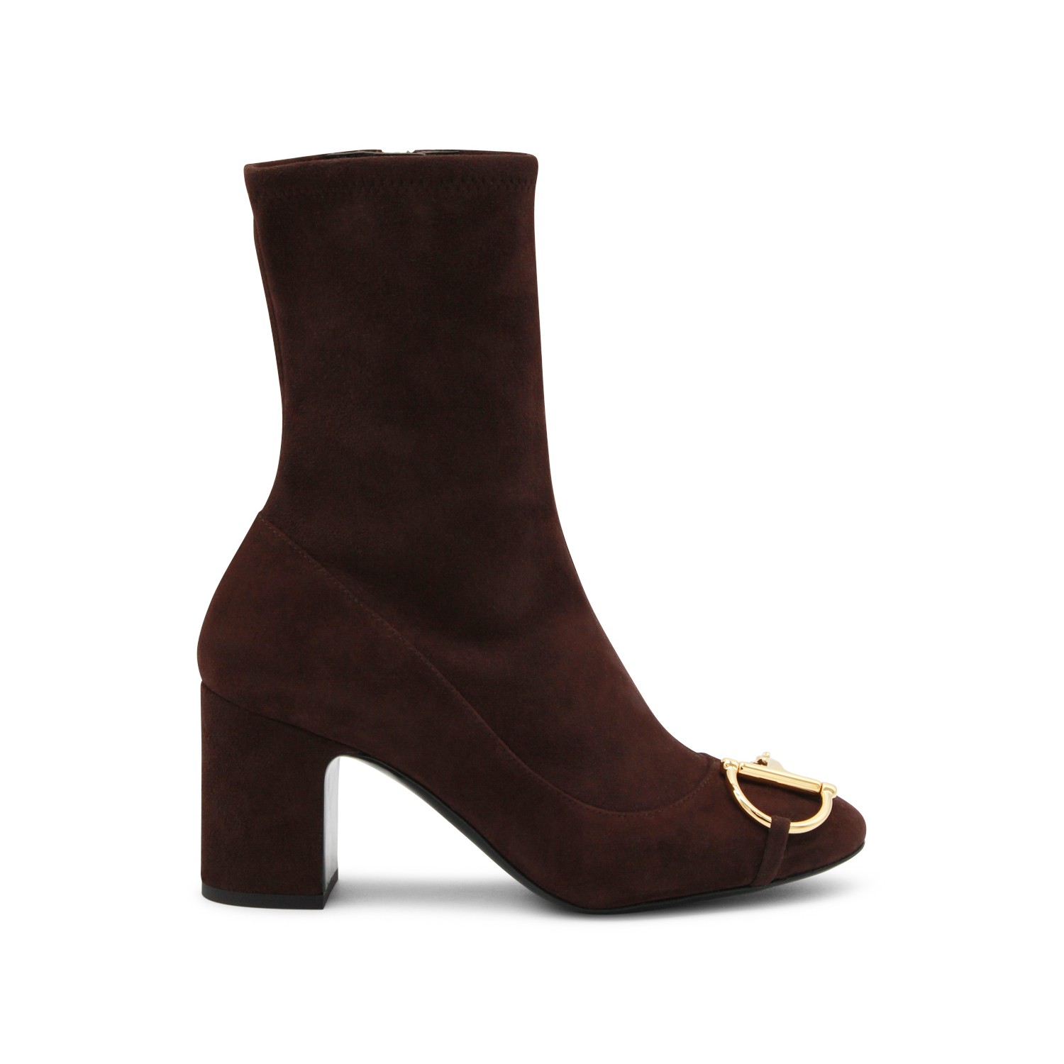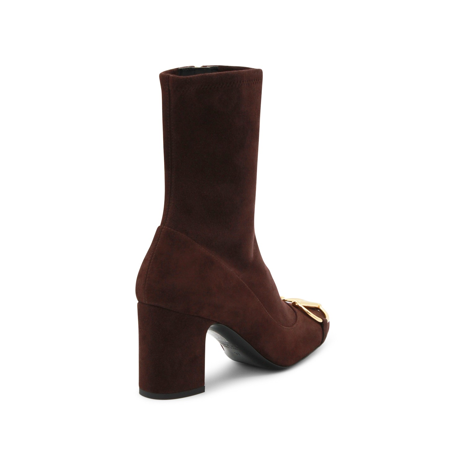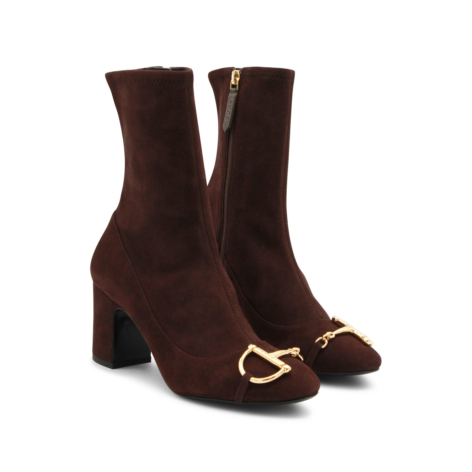Brown leather boots from Gucci featuringround toe, frontal gold tone hardware, square heel and internal fastening.