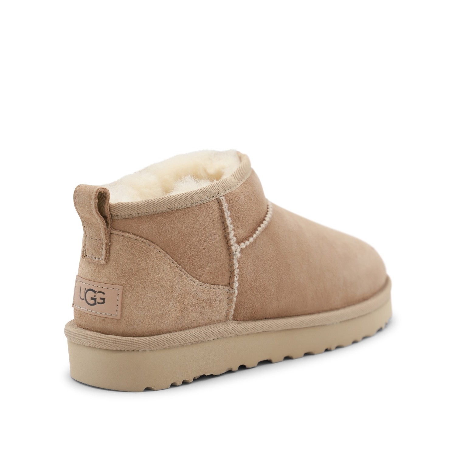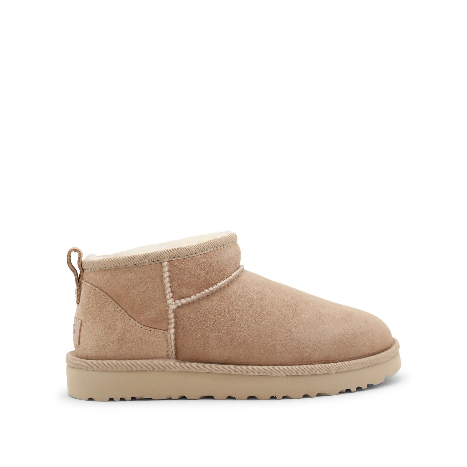 Sand Ultra Mini boots from Ugg featuring round toe, ankle height, leather sole and logo patch.