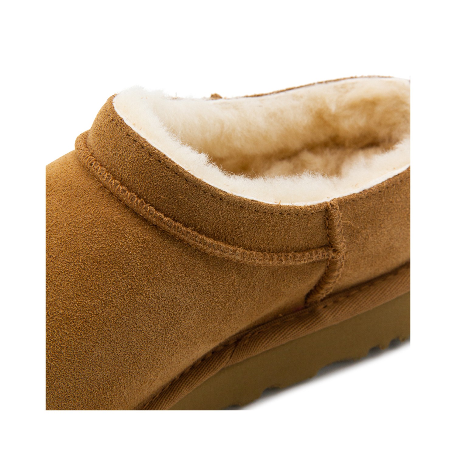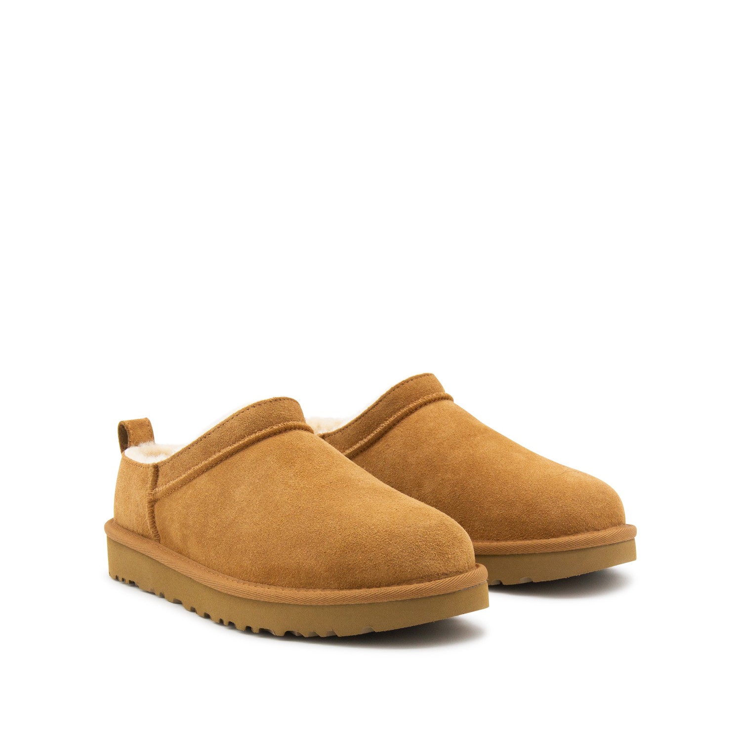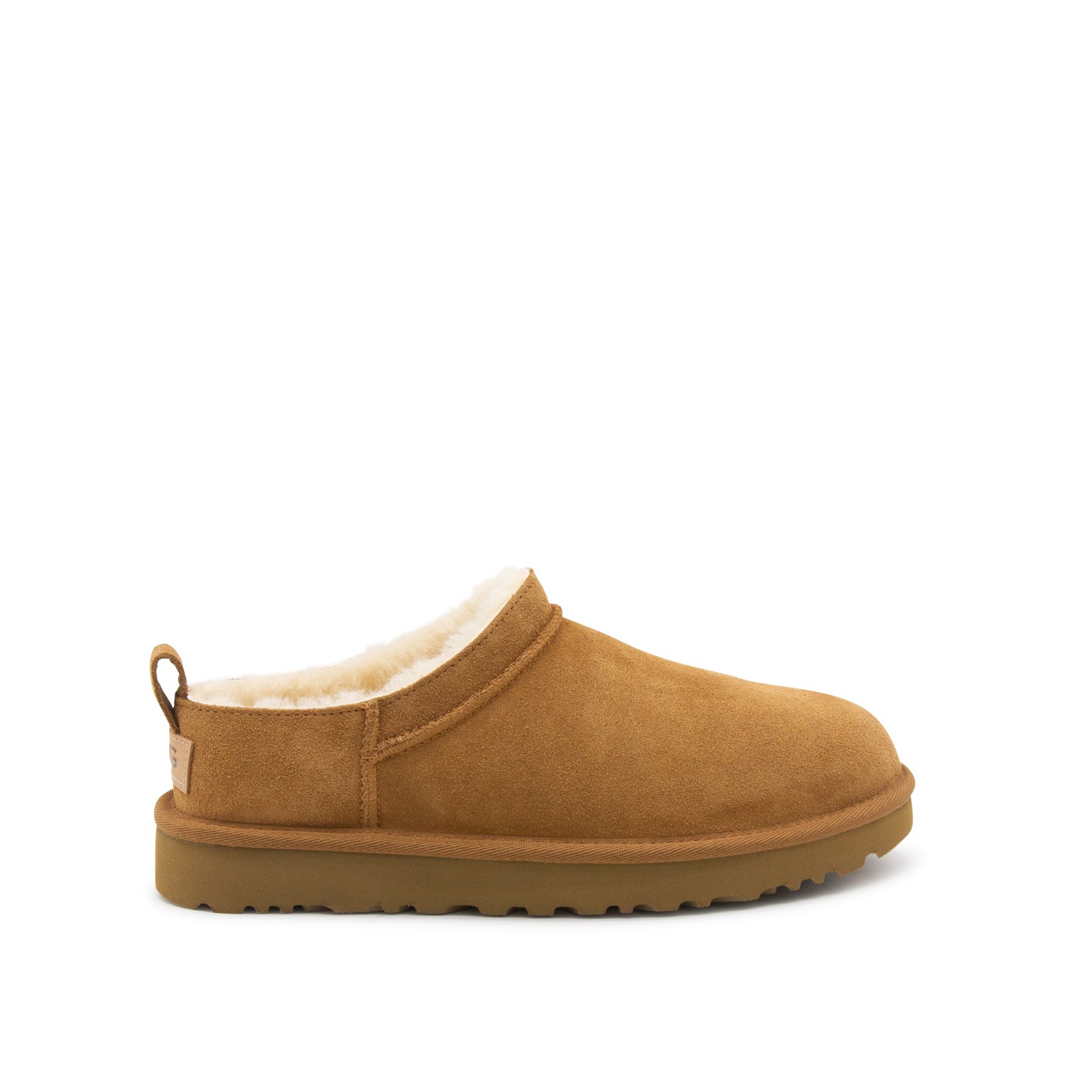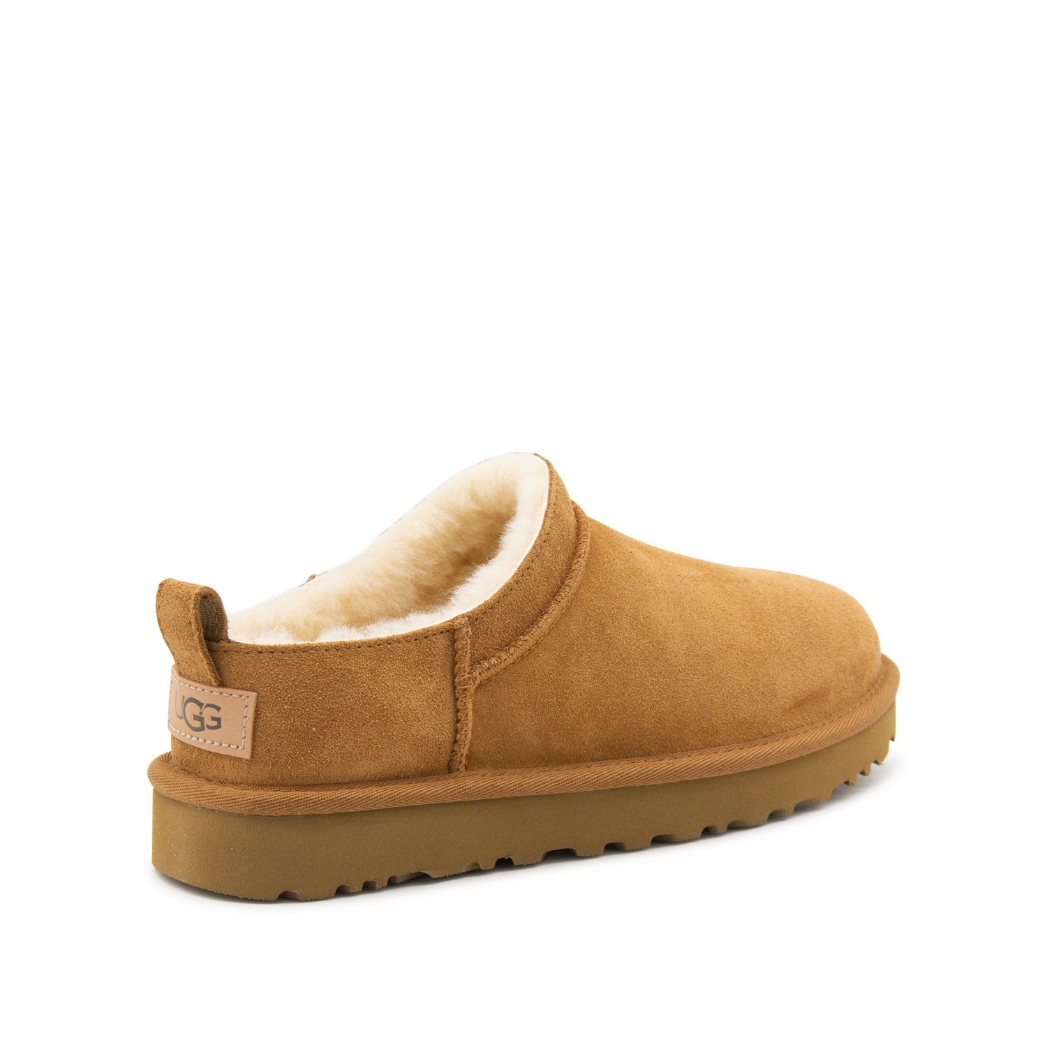 Camel leather flats from Ugg featuring round toe, leather sole and logo patch.