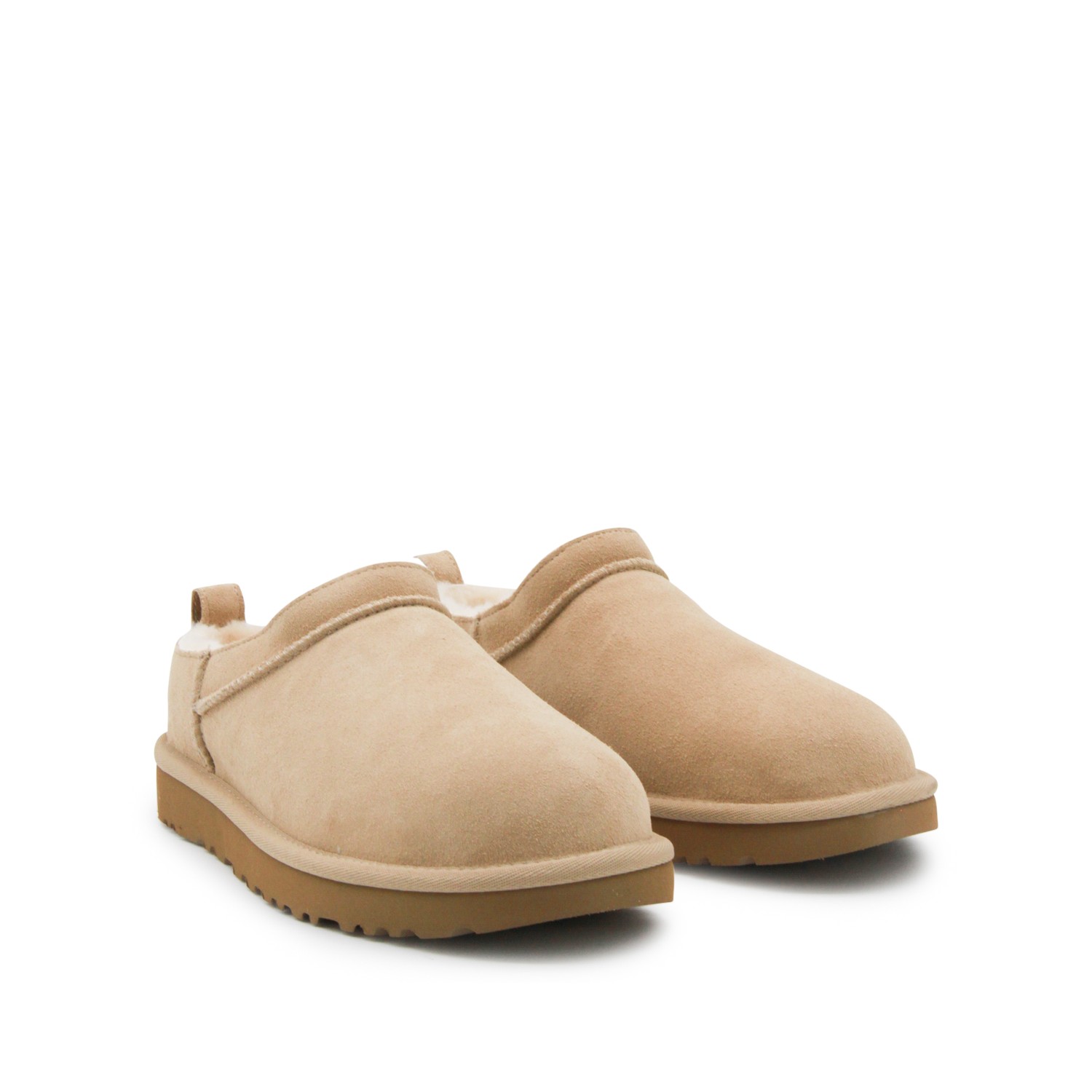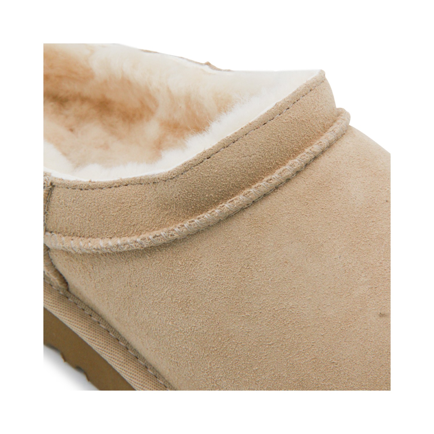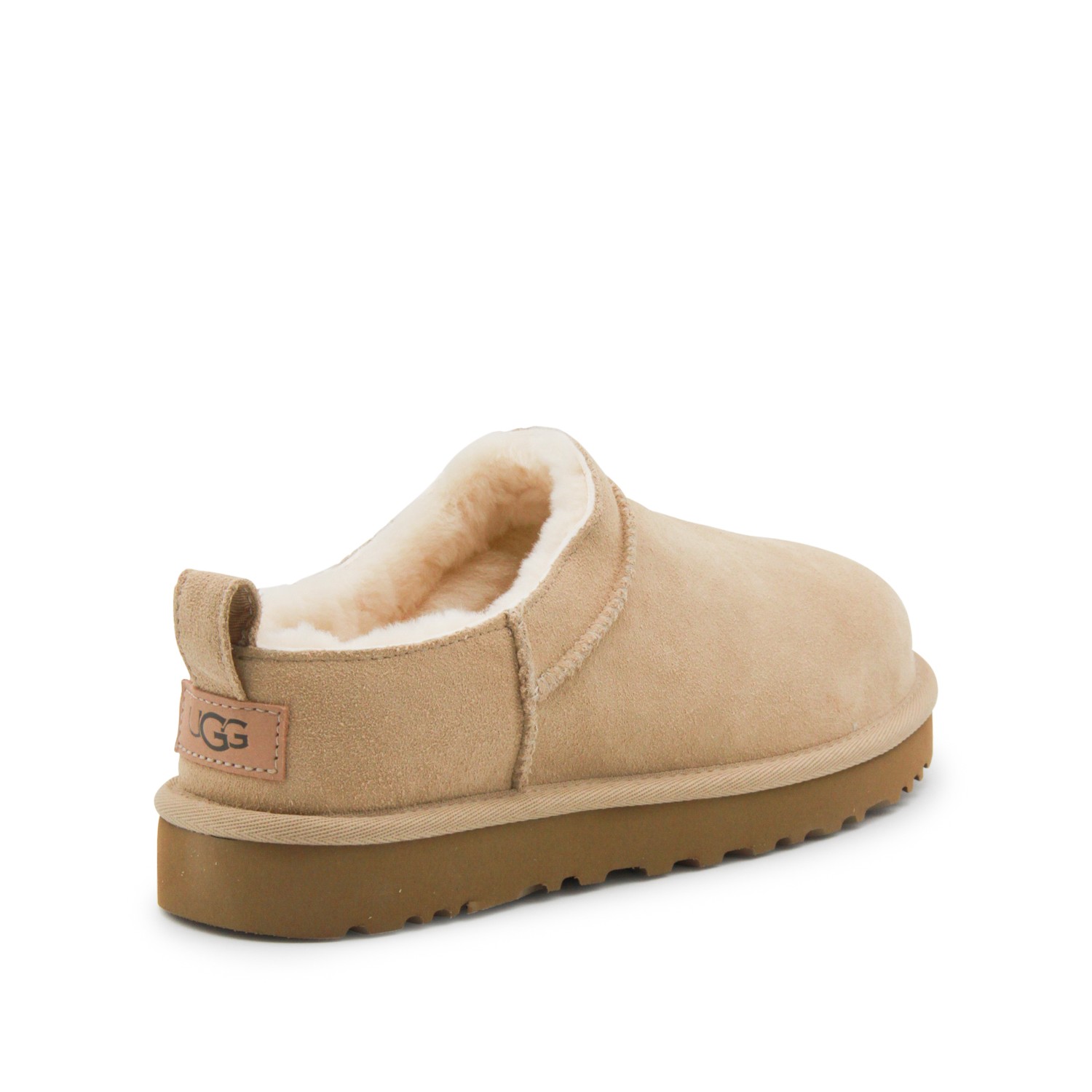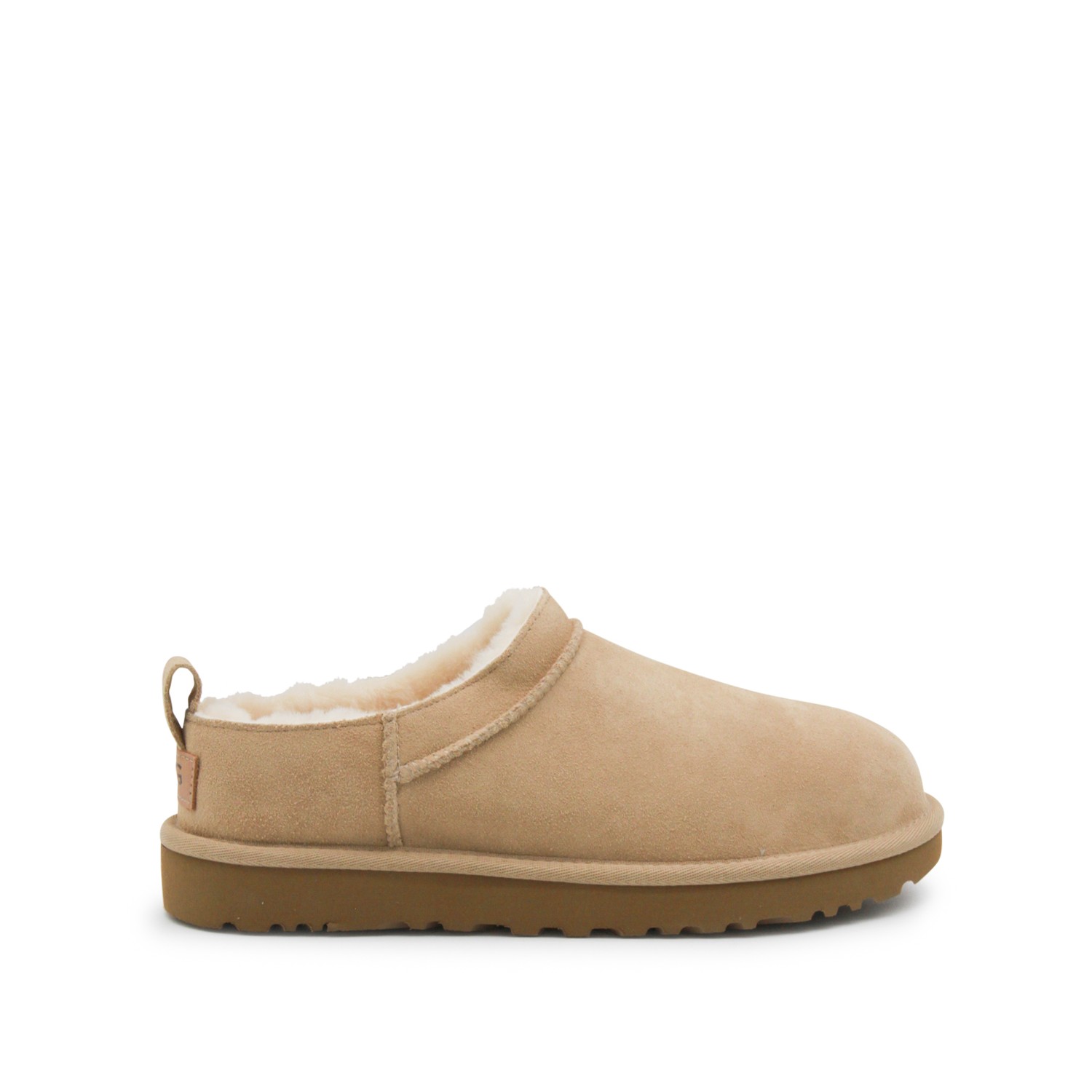 Sand leather flats from Ugg featuring round toe, leather sole and logo patch.