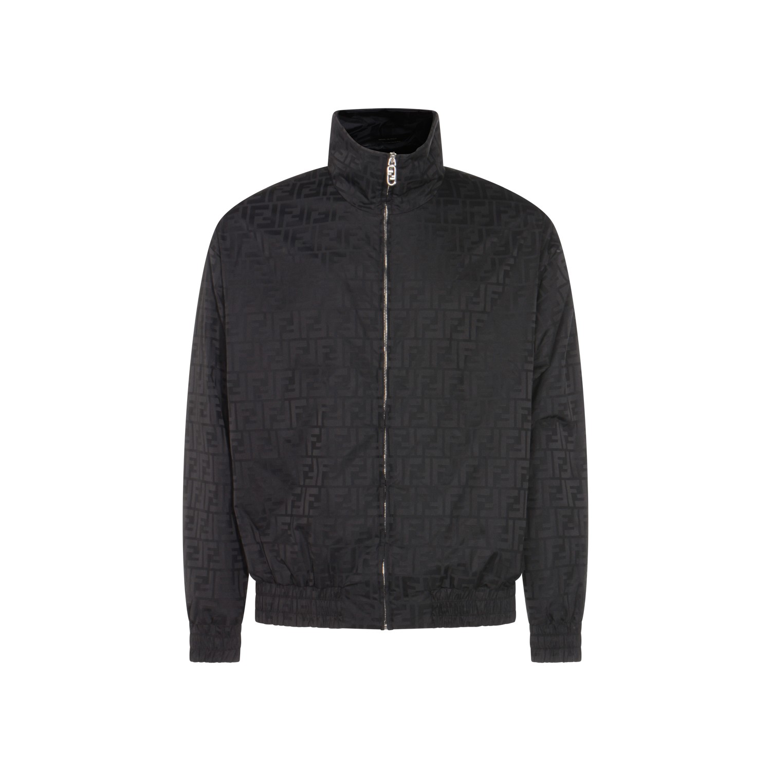 Black casual jacket from Fendi featuring high collar, long sleeves, zip fastening, all-over FF texture and regular vestibility.