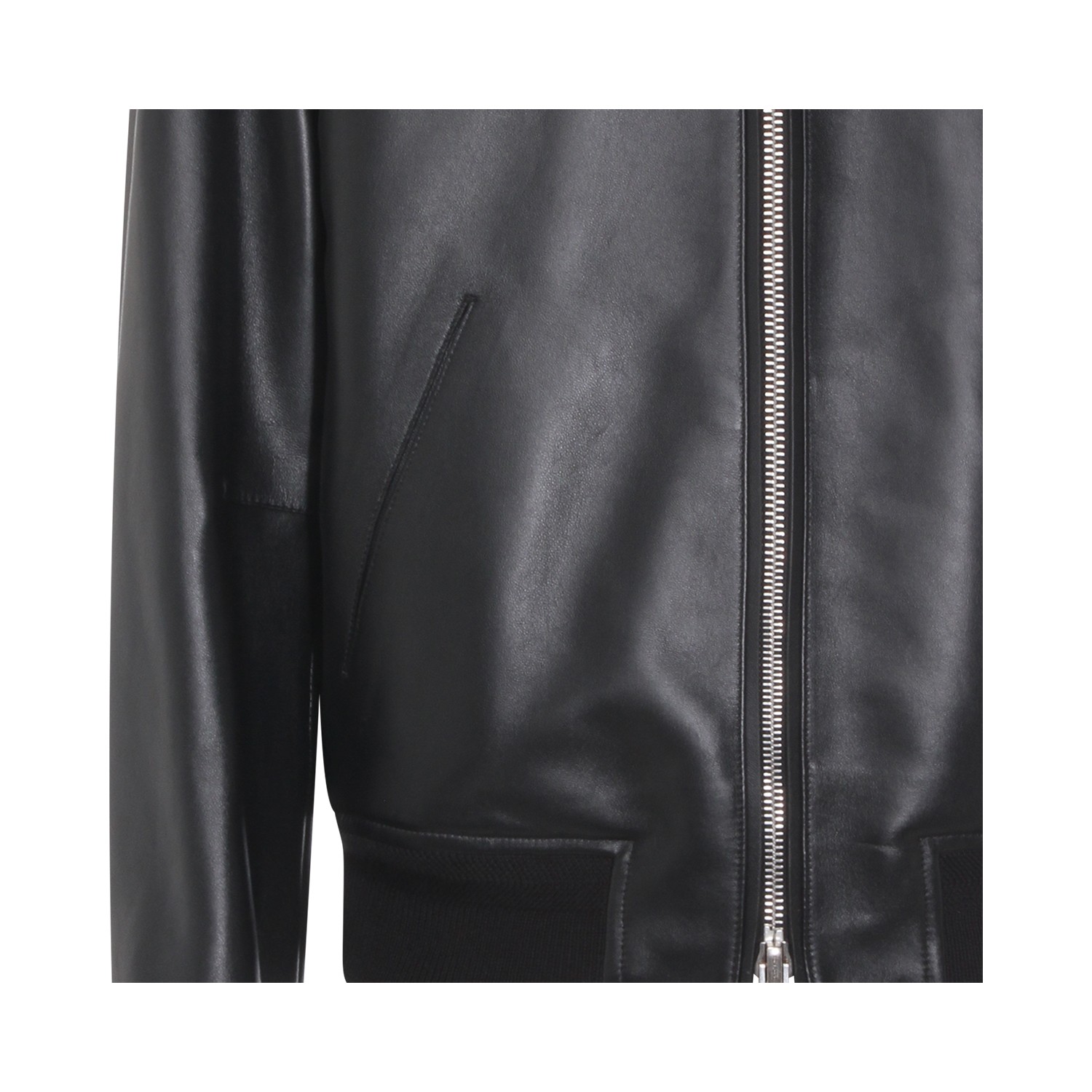 Black leather jacket from Tom Ford featuring long sleeves, ribbed cuffs and hem, zip fastening and regular vestibility.