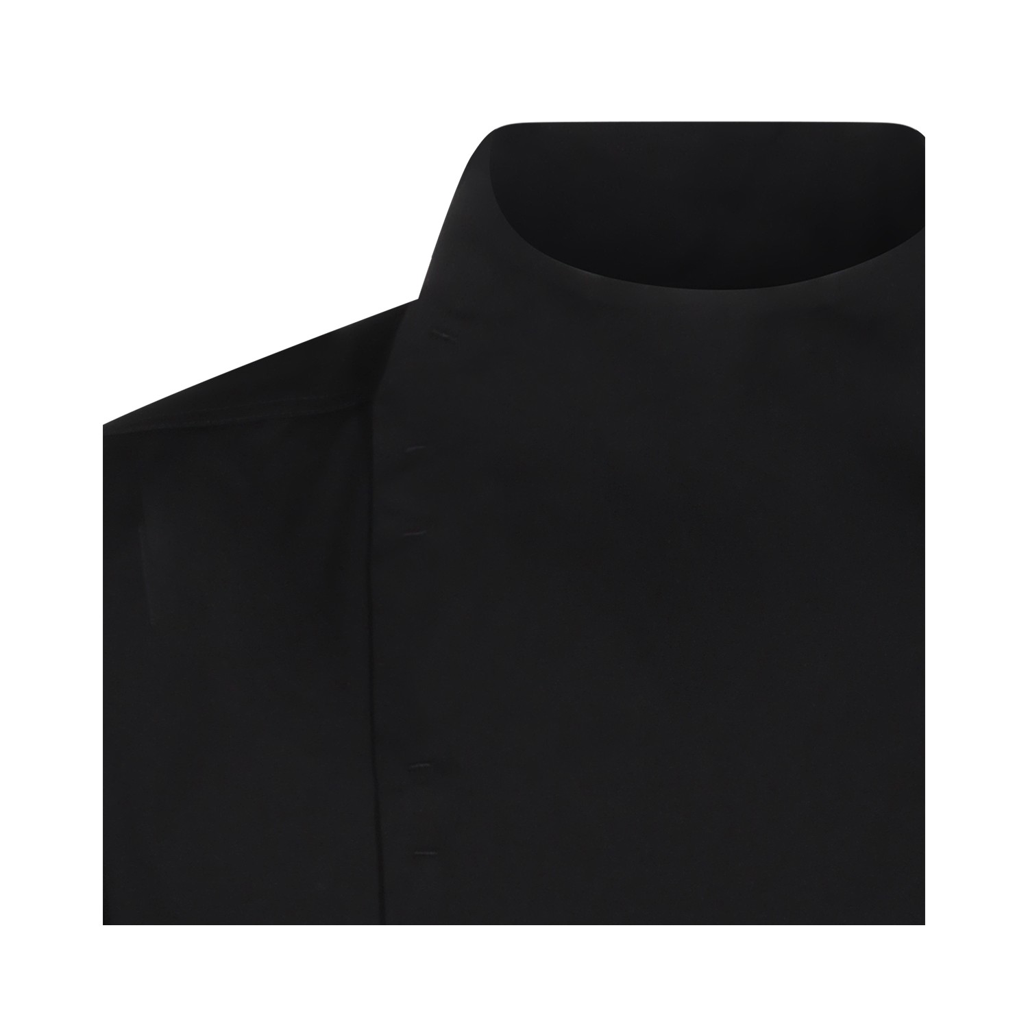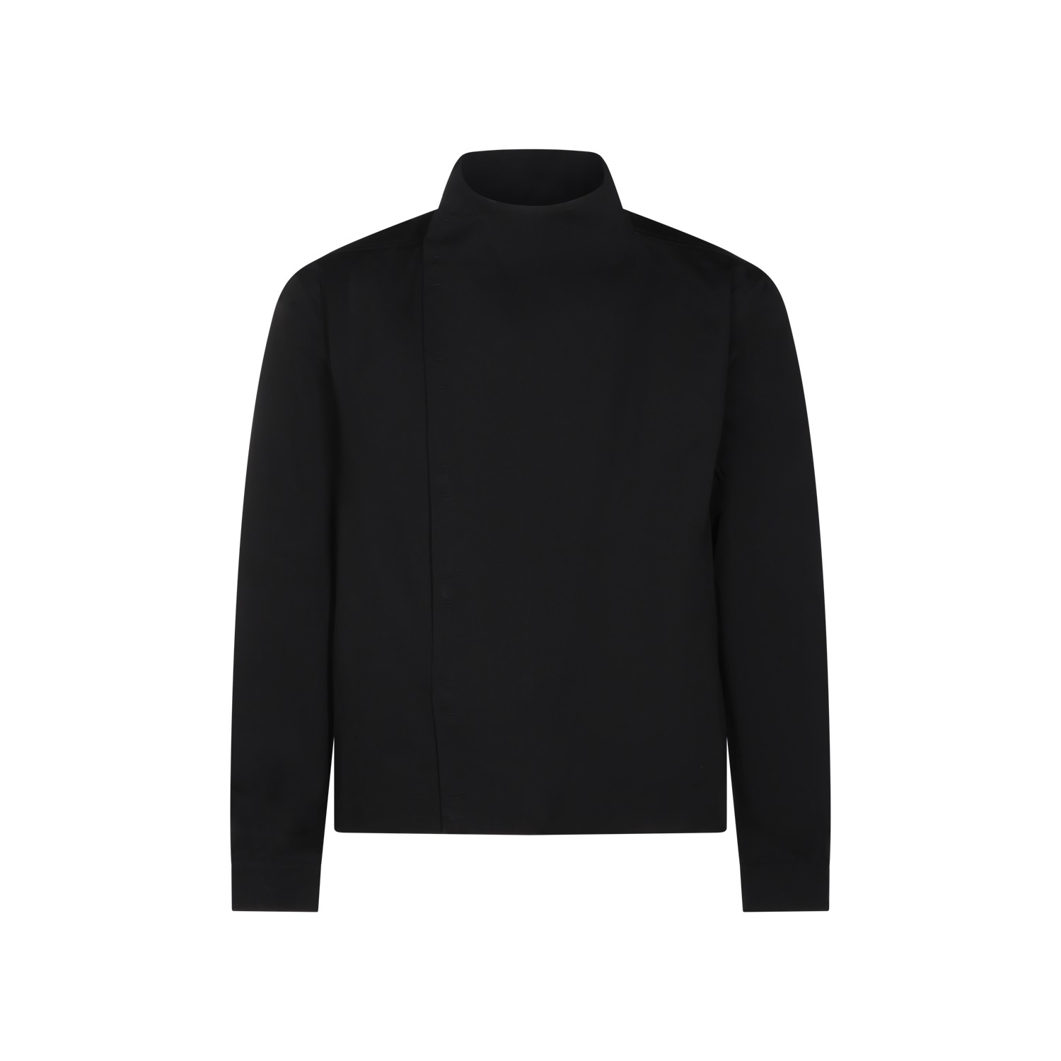 Black cotton LPM casual jacket from Rick Owens featuring high collar, long sleeves and regular vestibility.