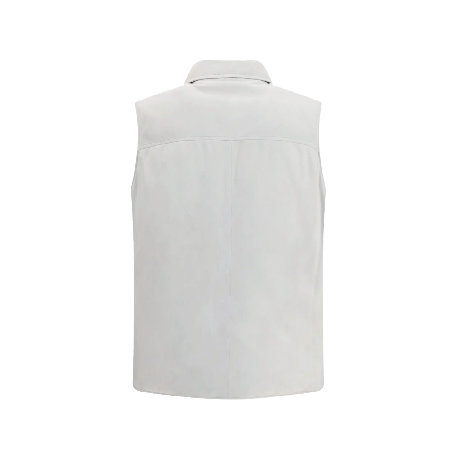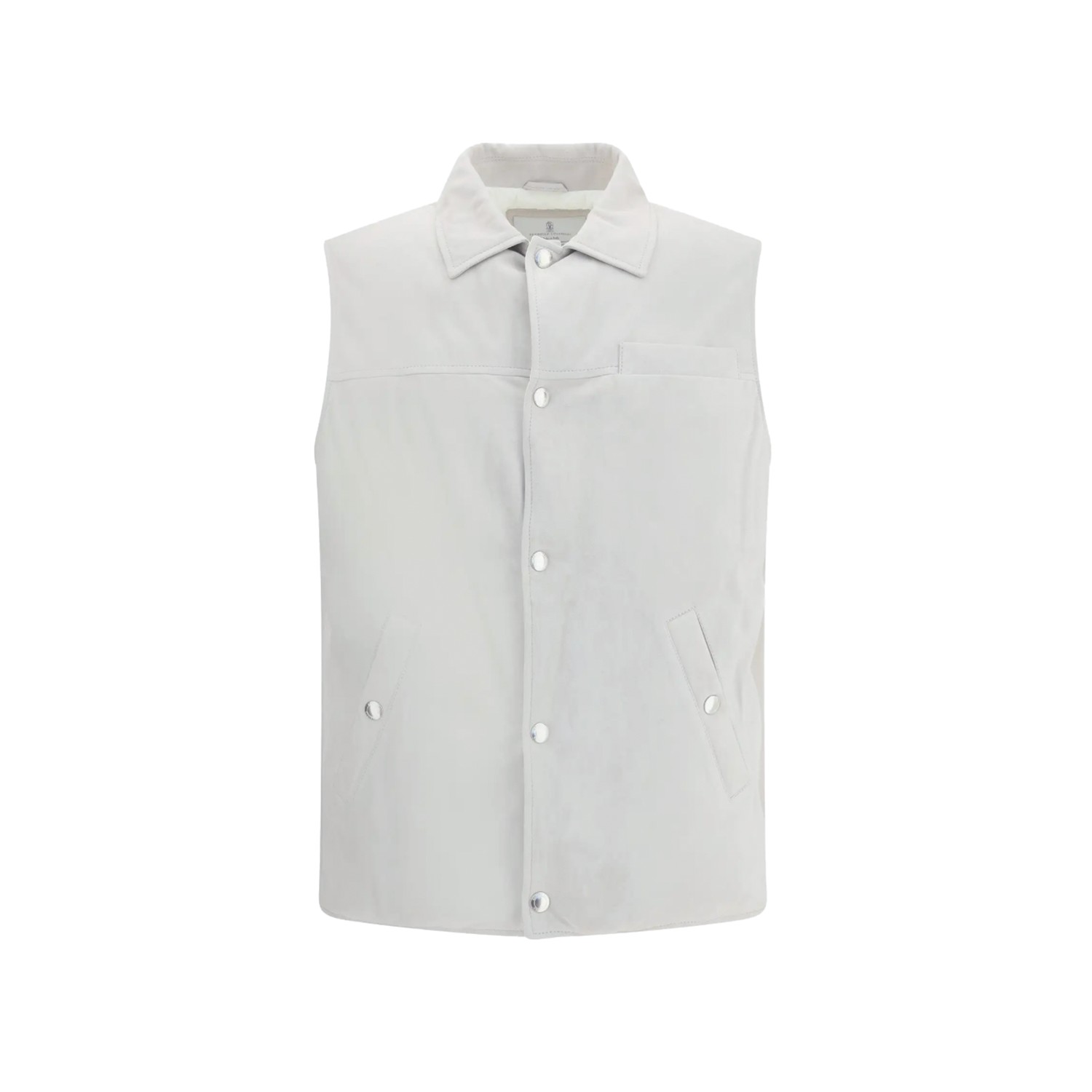 White leather jacket from Brunello Cucinelli featuring shirt collar, buttons fastening, sleeveless, side button pockets and regular vestibility.