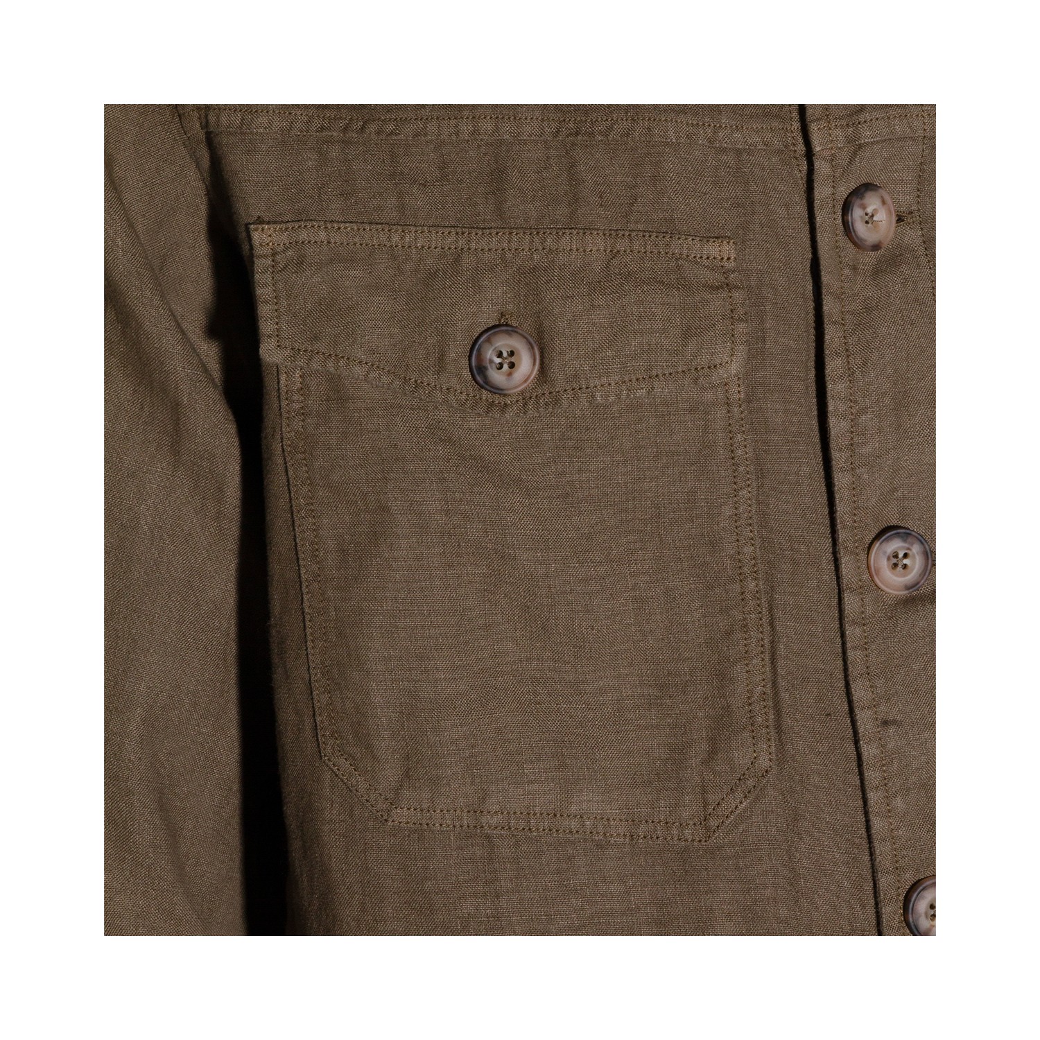 Green linen casual jacket from Altea featuring classic collar, long sleeves, buttons fastening and regular fit.