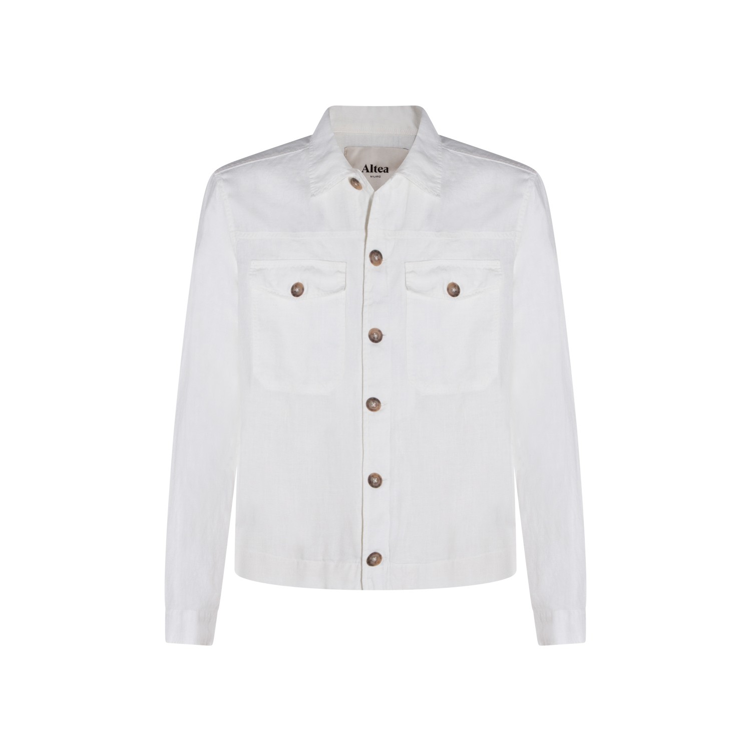 White linen casual jacket from Altea featuring classic collar, long sleeves, buttons fastening and regular fit.