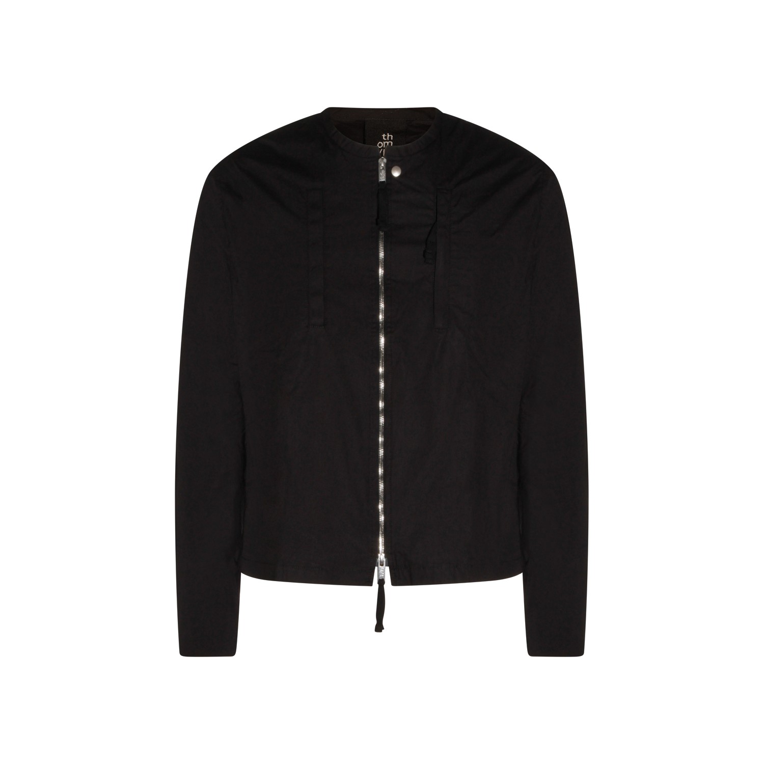 Black cotton casual jacket from Thom Krom featuring zip closure, long sleeves, round collar and regular fit.