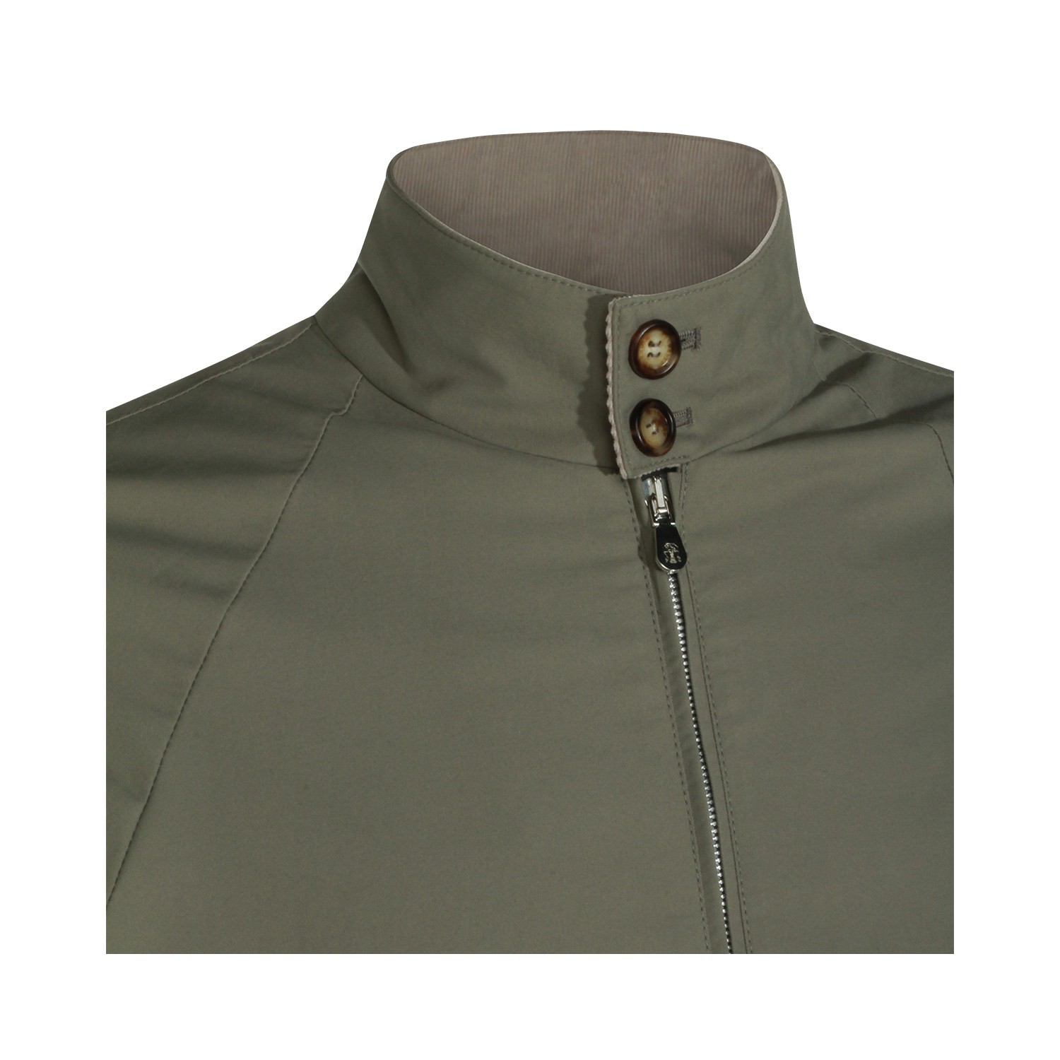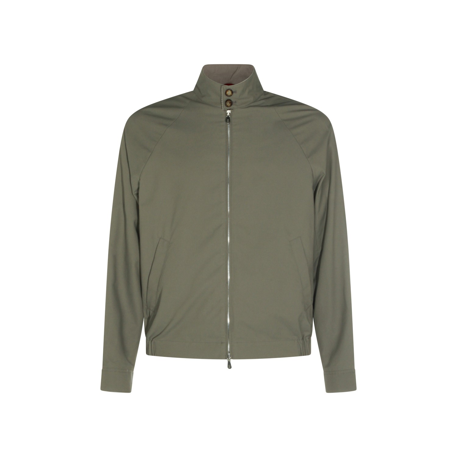 Green cotton casual jacket from Brunello Cucinelli featuring buttoned collar, long sleeves, zip fastening and regular fit.