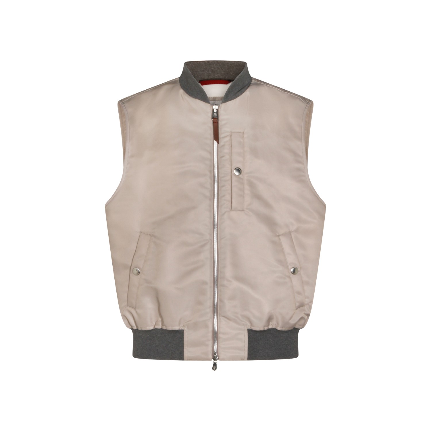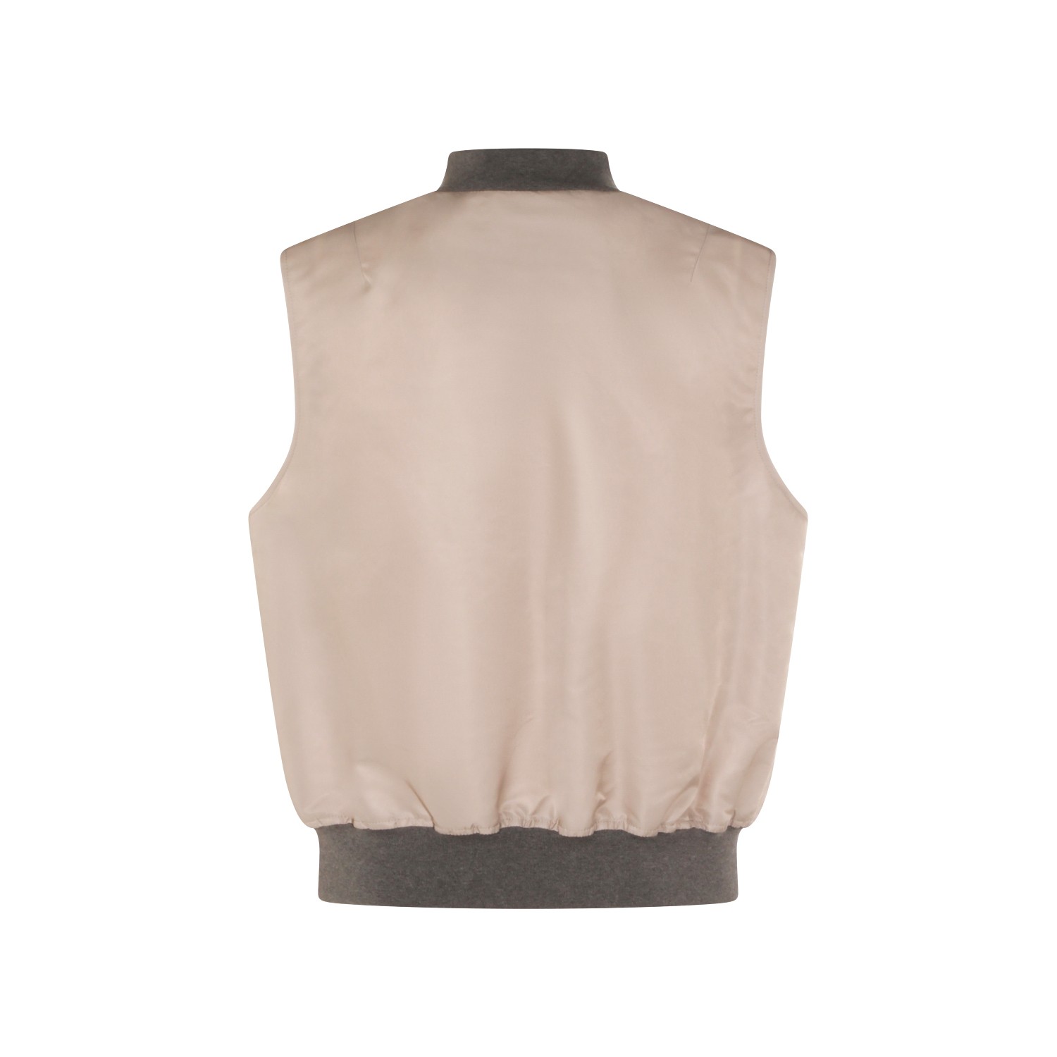 Beige vest down jacket from Brunello Cucinelli featuring vest line, elasticized inserts, zip closure, side welted pockes and regular fit.