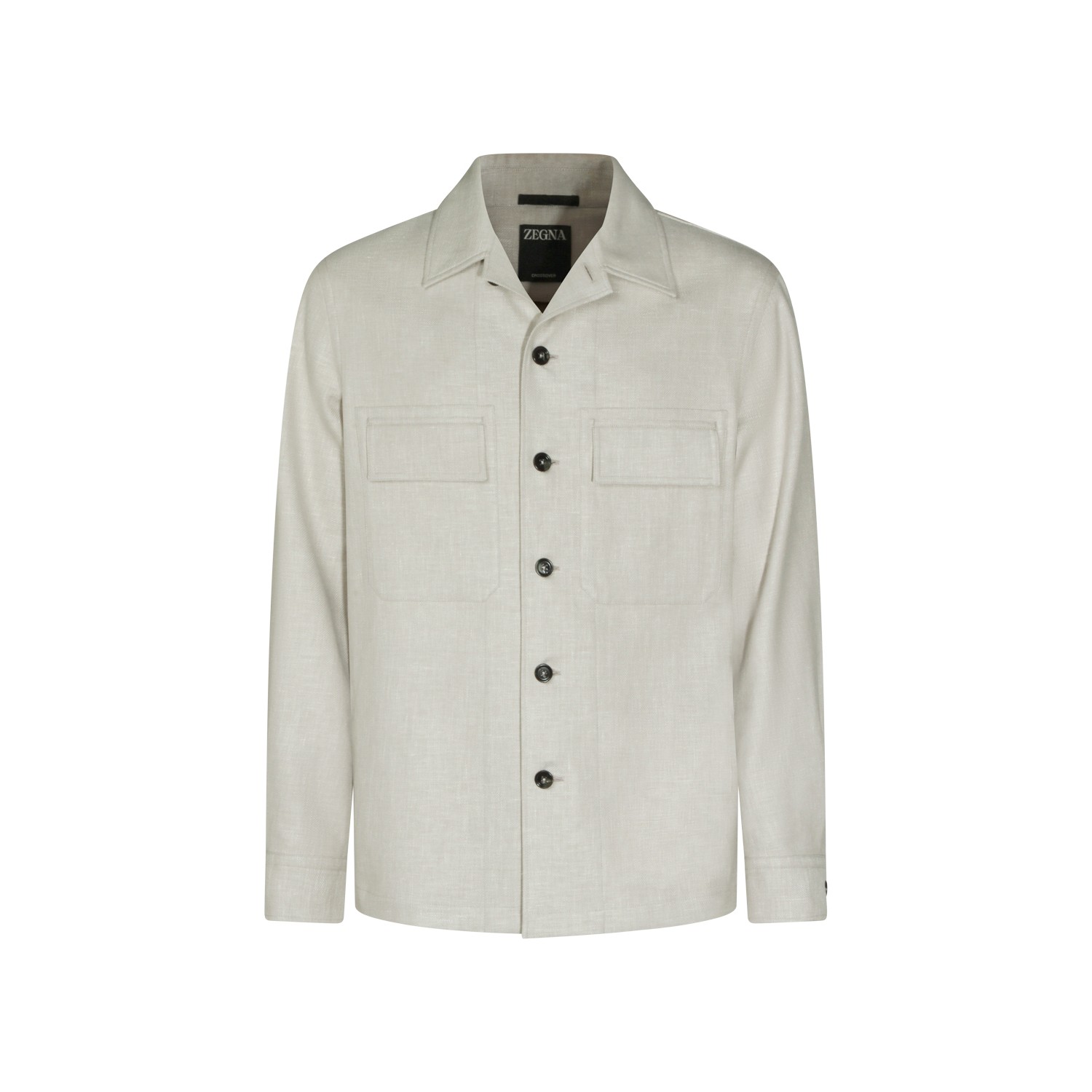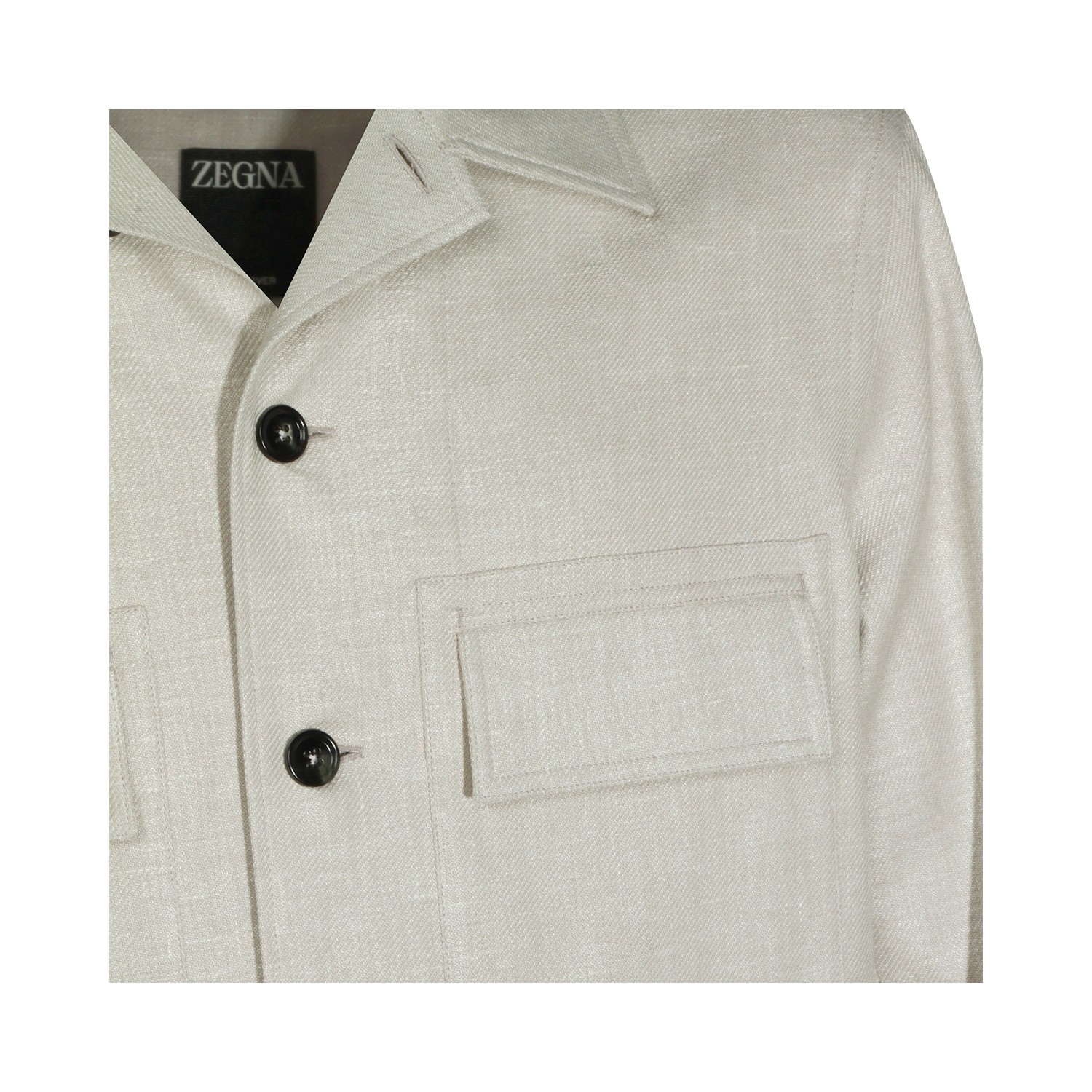 Sand linen casual jacket from Zegna featuring shirt collar, long sleeves, buttons fastening, chest pockets and regular vestibility.