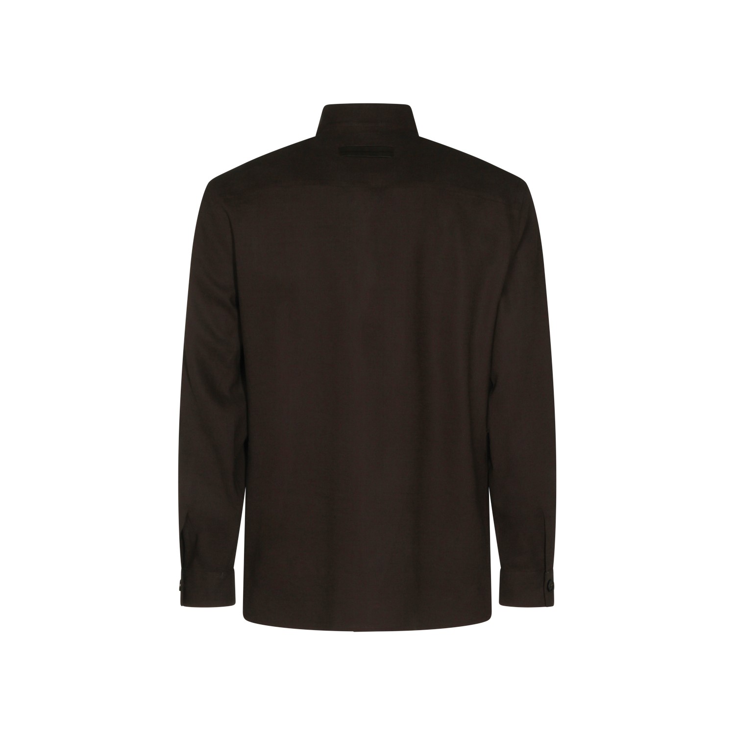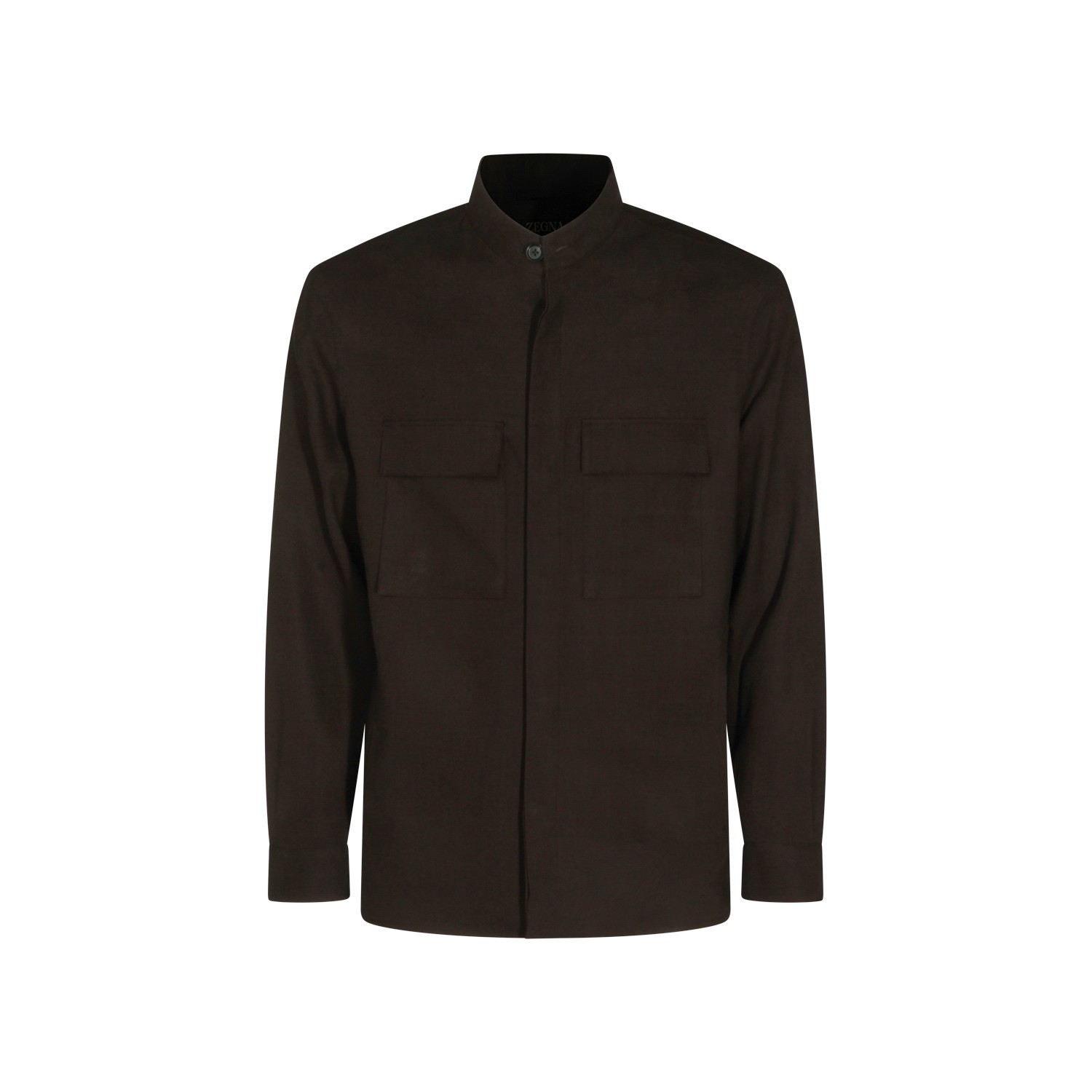 Dark brown linen casual jacket from Zegna featuring shirt collar, long sleeves, buttons fastening and regular vestibility.