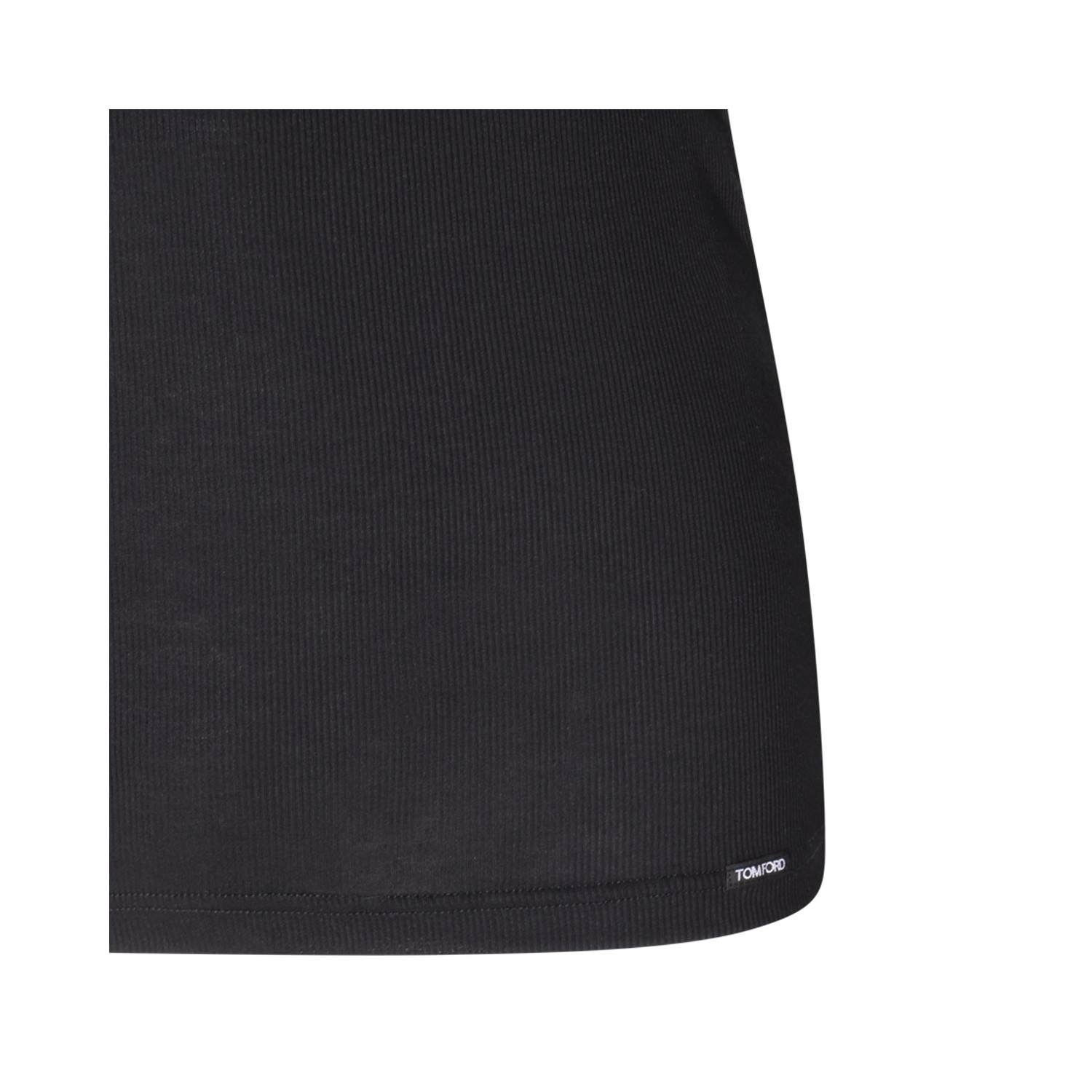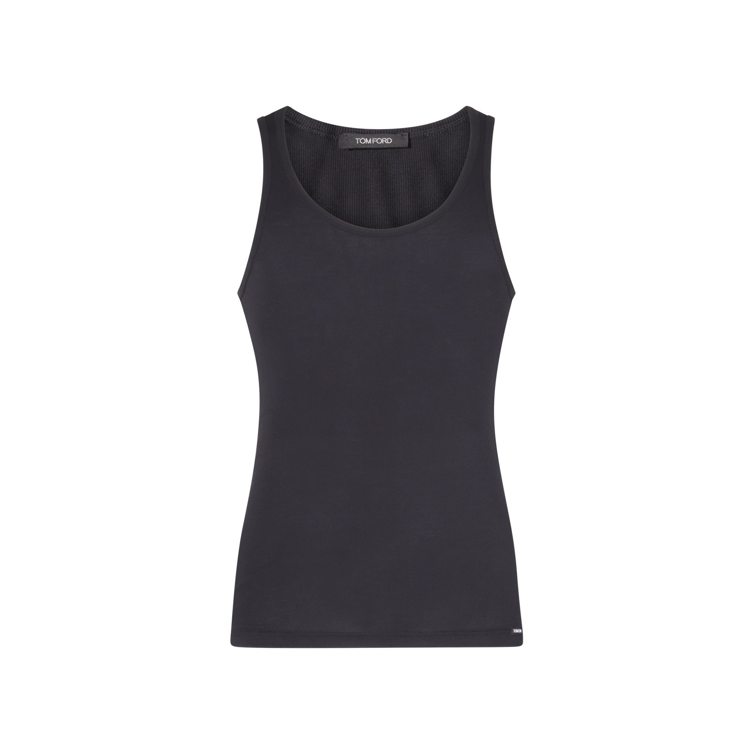 Black cotton blend tank top from Tom Ford featuring stretch-design, sleeveless, scoop neck and straight hem.