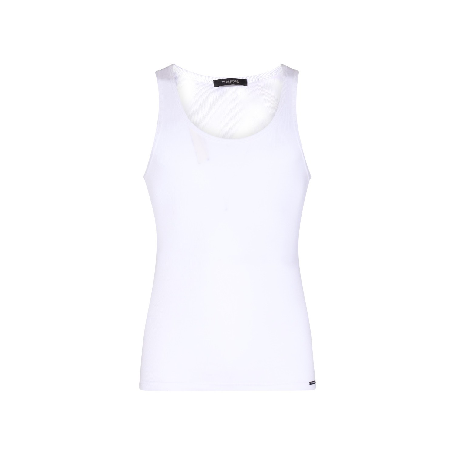 White cotton blend tank top from Tom Ford featuring stretch-design, sleeveless, scoop neck and straight hem.