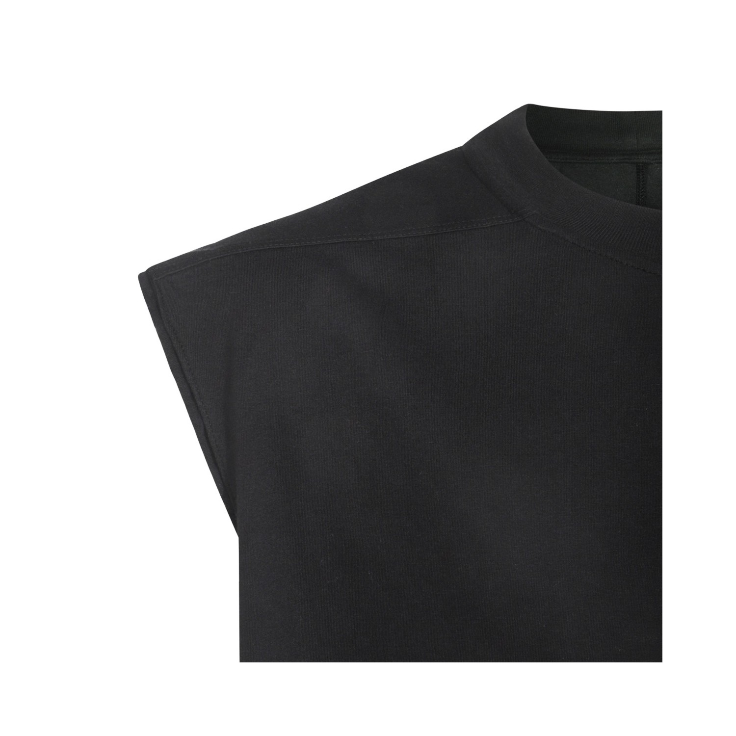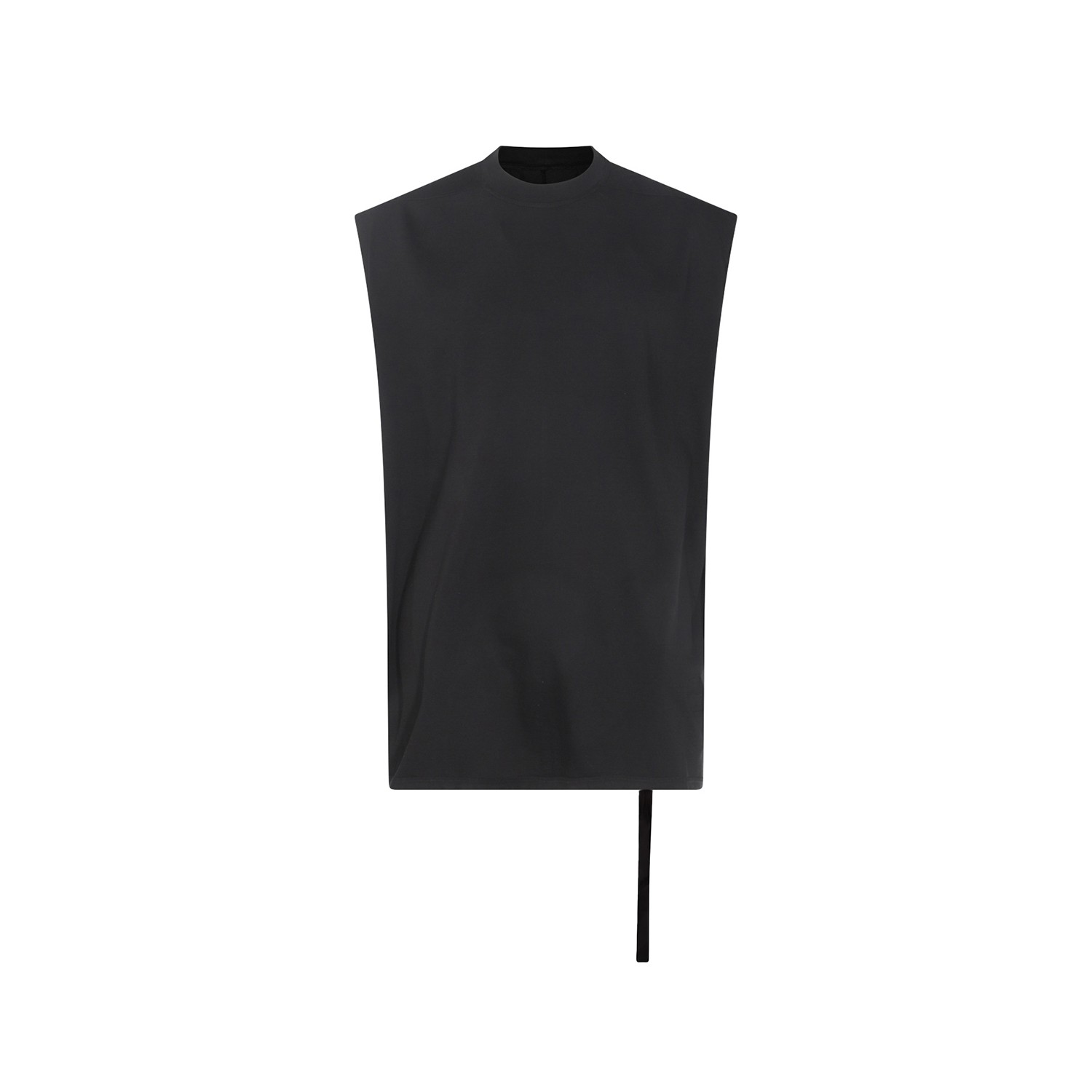 Black cotton Tart T top from Rick Owens DRKSHDW featuring sleeveless line, round neck, straight hem and side lace.