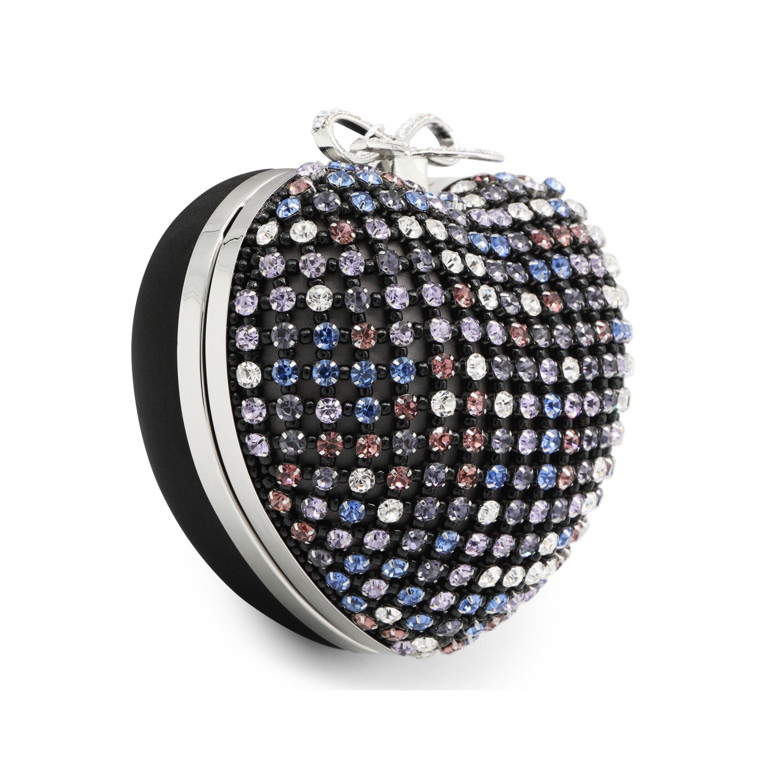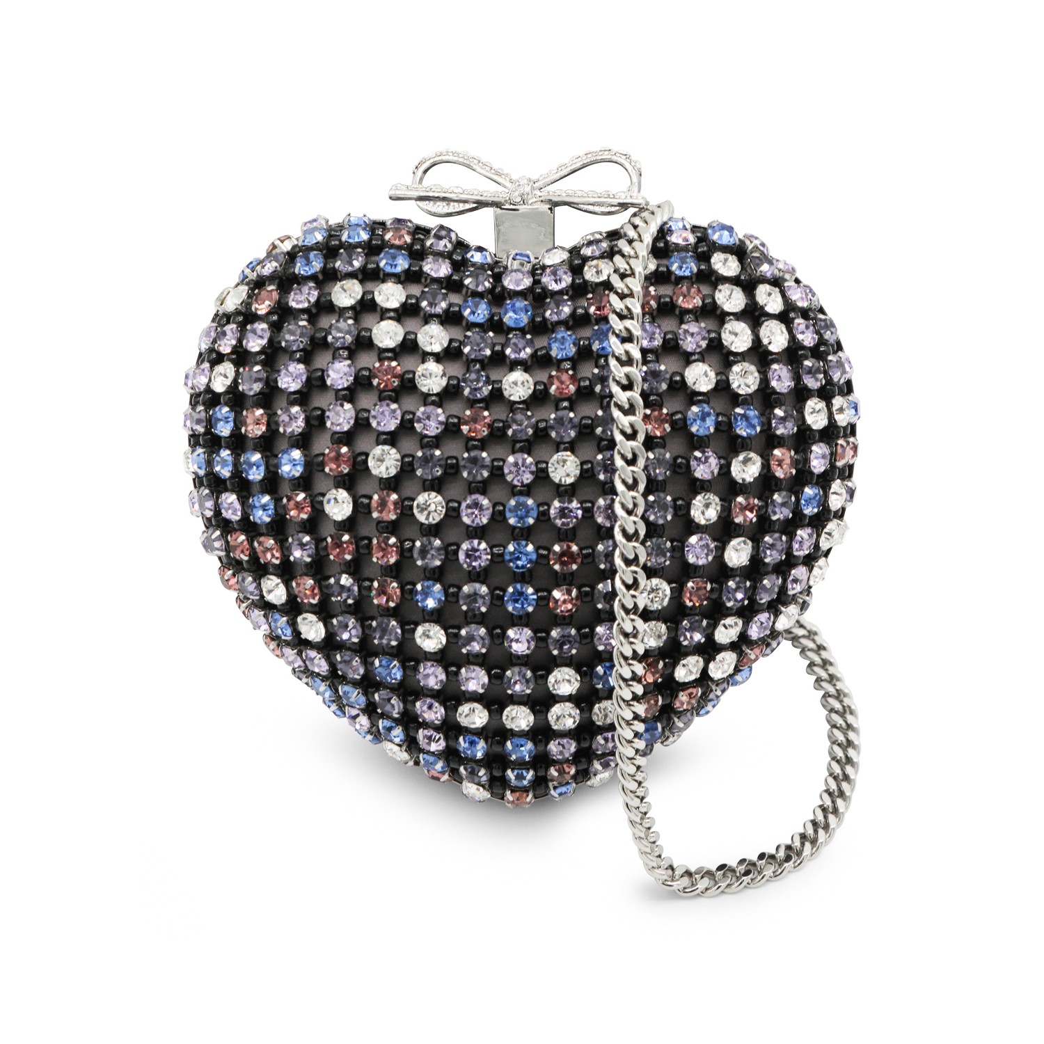 Multicolor clutch from Self-Portrait featuring upper fastening, inside pocket, all over details and removable strap.