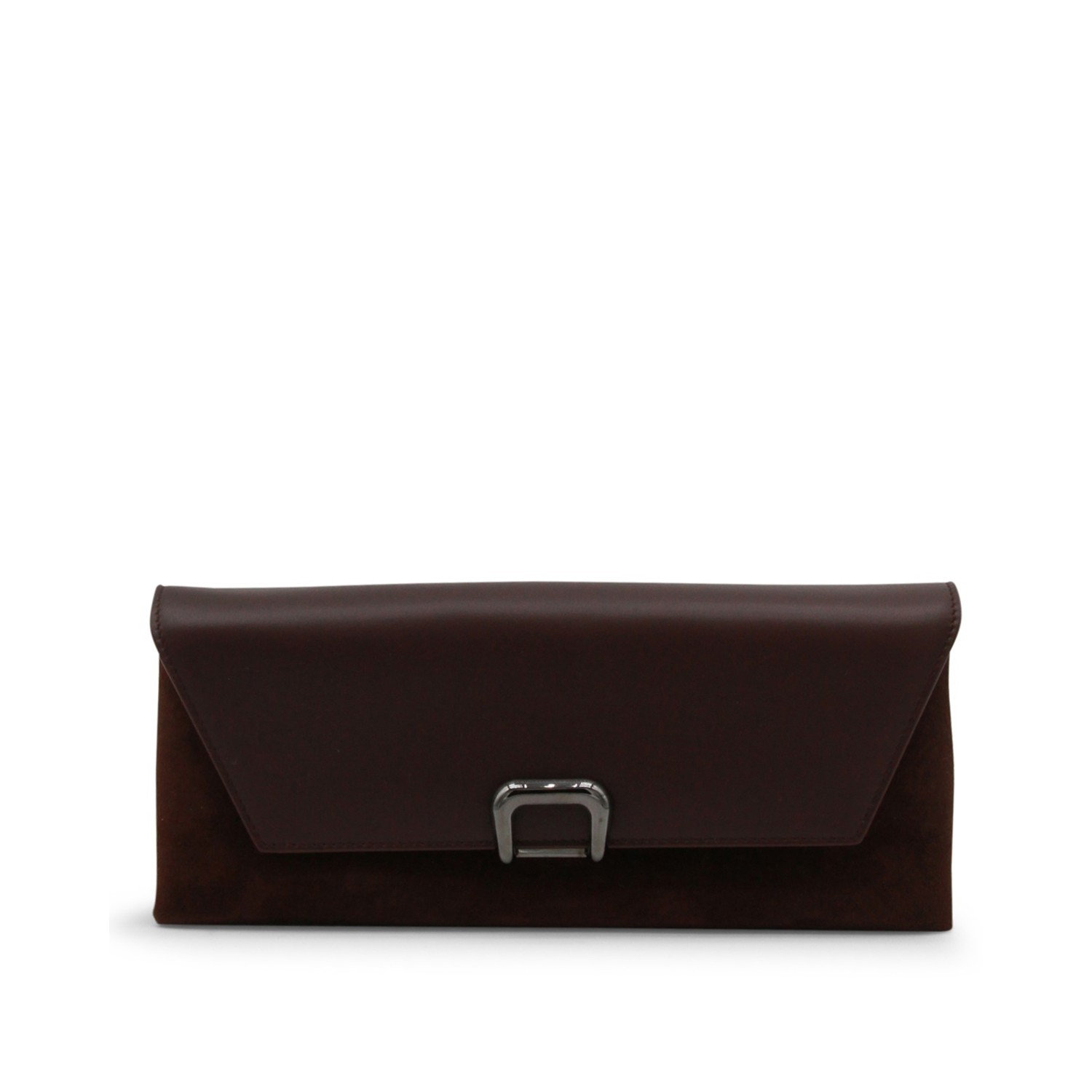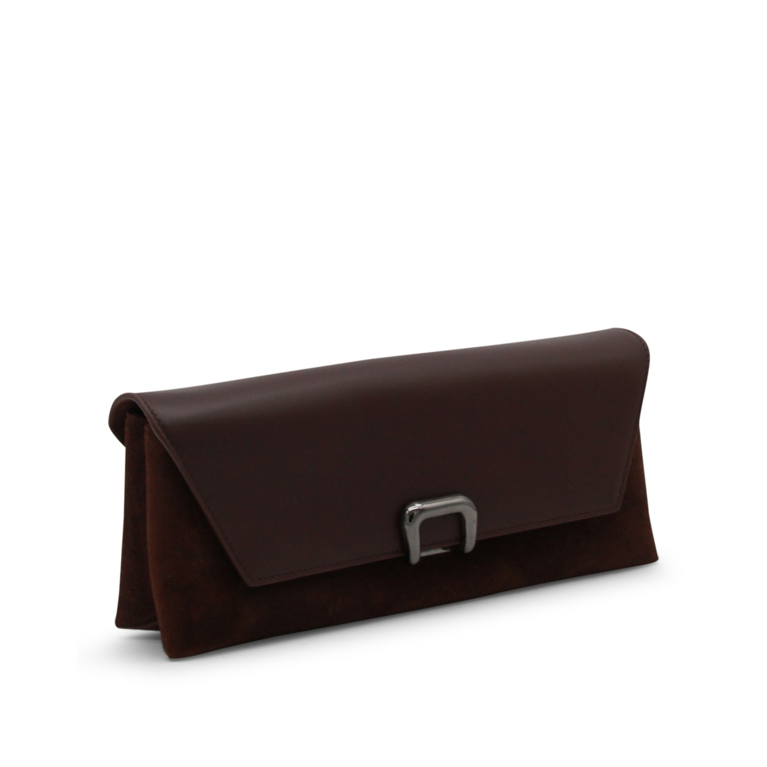 Burgundy leather pouche from Brunello Cucinelli featuring flap magnetic closure, metal buckle and main comparment.