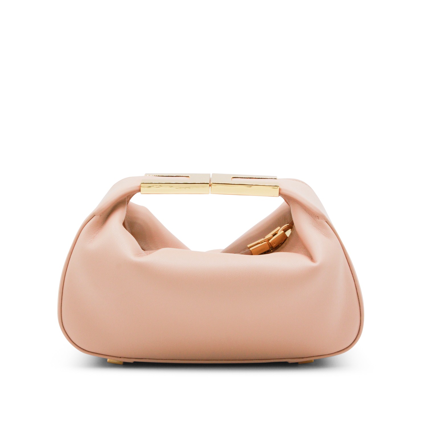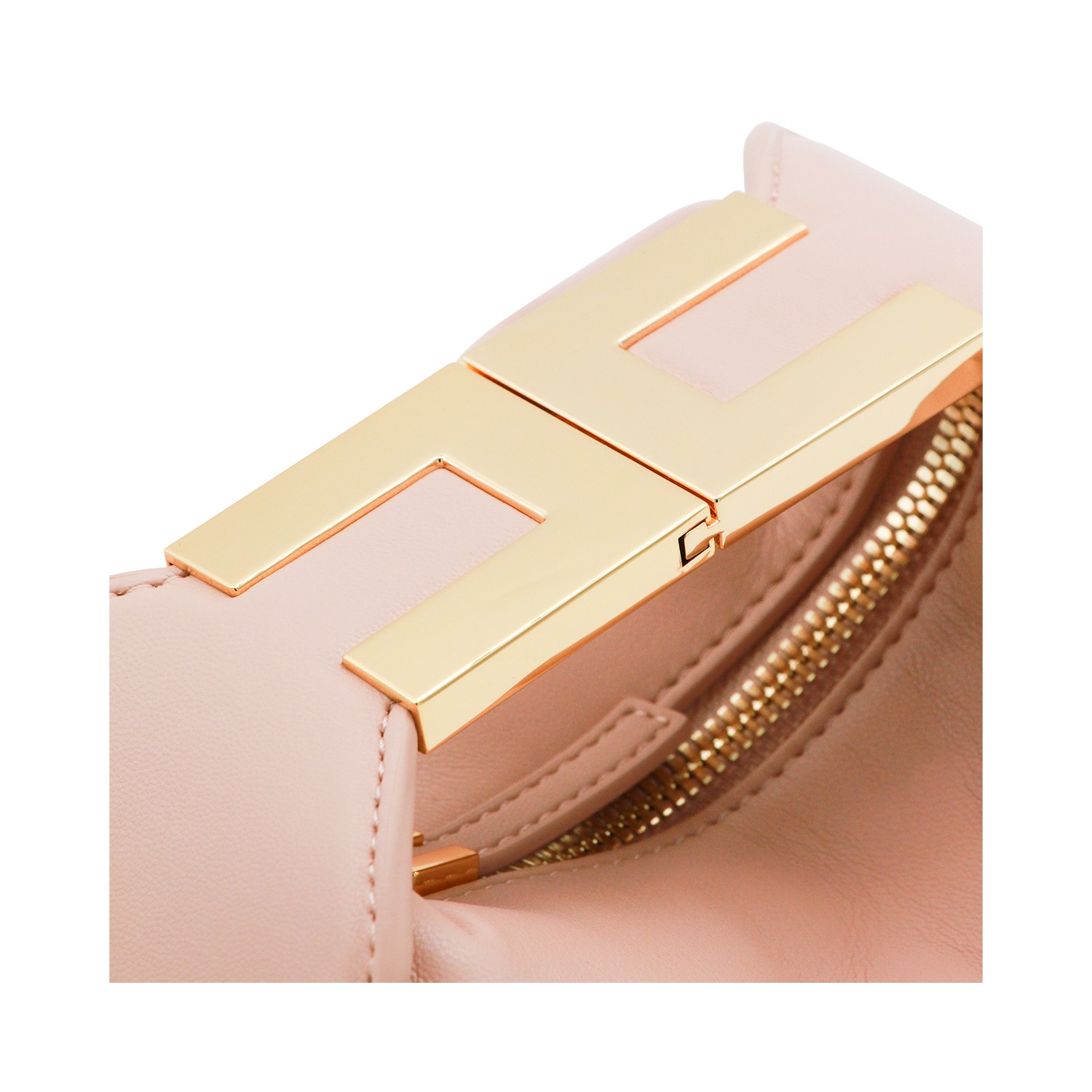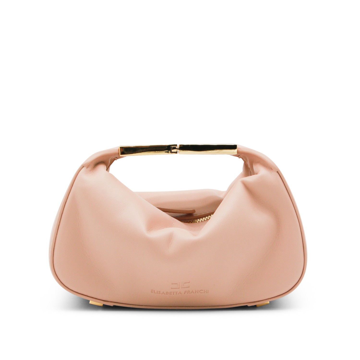 Nude Hobo clutch from Elisabetta Franchi featuring logo plaque on the handle, zip fastening, gold tone hardware and main compartment.